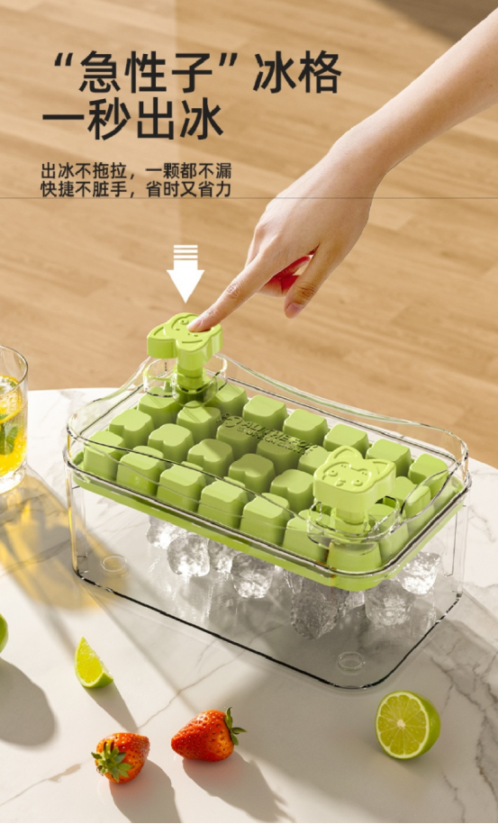 炎炎夏日,如何让家中的饮品更加冰爽? 阿狸秒脱式三层冰格 不仅为你带来冰凉的享受 更让每一次按压都充满乐趣 按压式脱模!1秒脱模!超解压! 手残党也能轻松操作 ,带盖设计