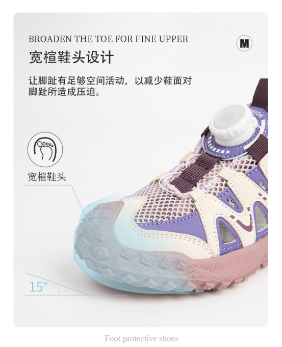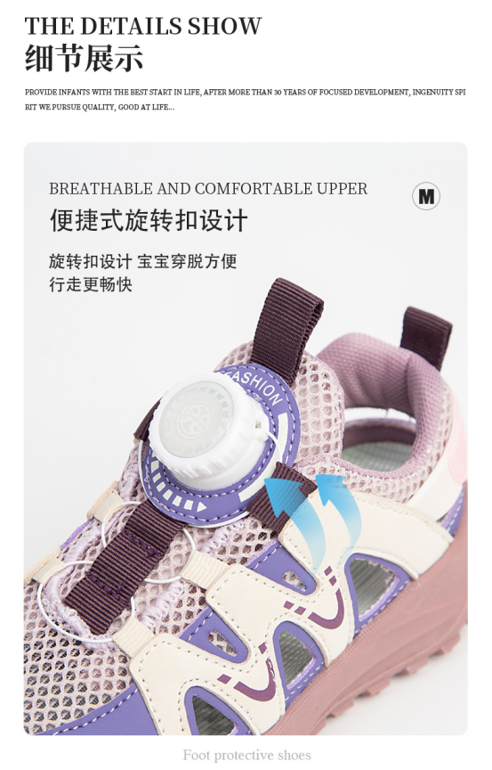 旋转扣的设计节省了宝宝绑鞋带的困扰,穿脱更方便 黄金折弯点让宝子们走路不累脚 防滑大底增加了与地面的摩擦力加上高弹鞋垫穿着更加舒适