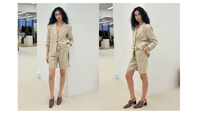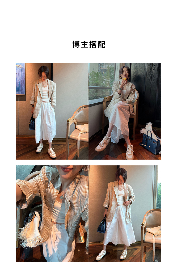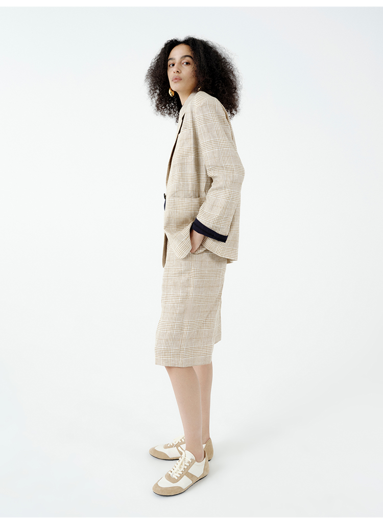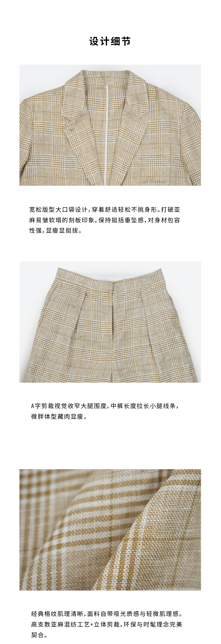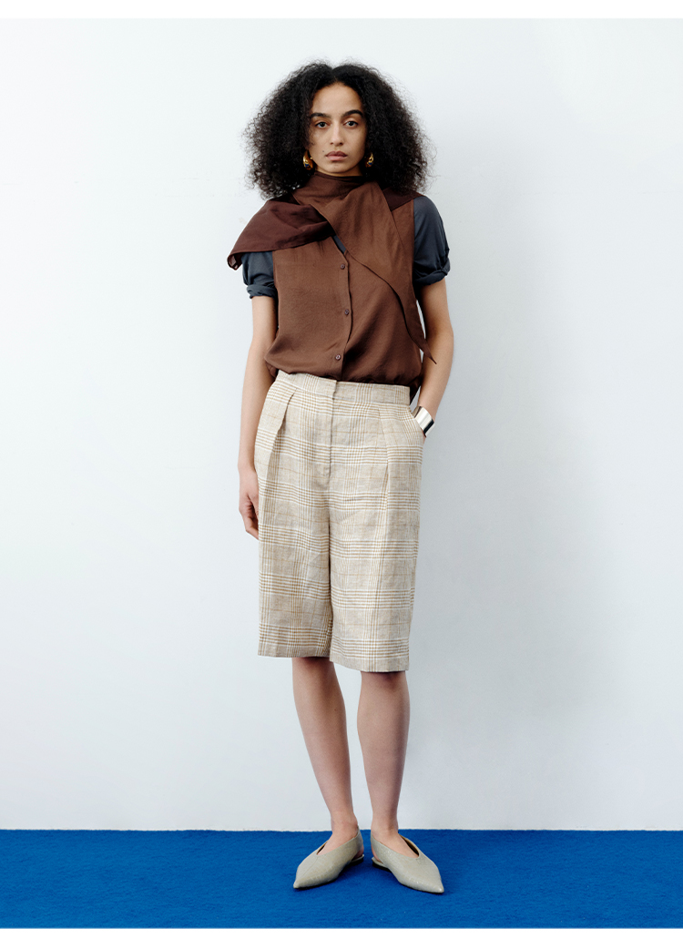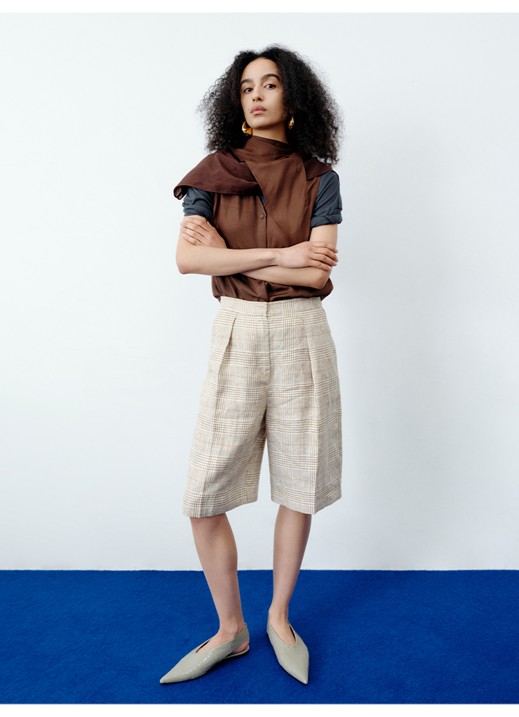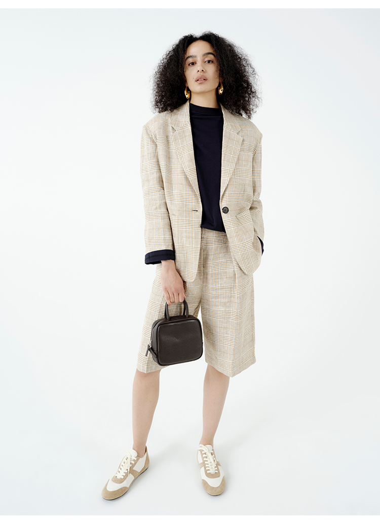 HIDEMI 甄选天然百分水洗做旧感色织亚麻极简宽松口袋男朋友西装中短裤套装