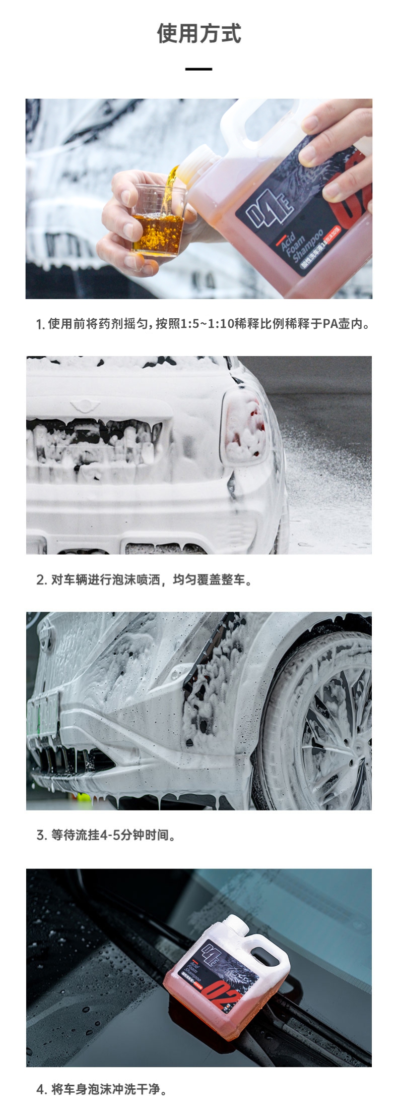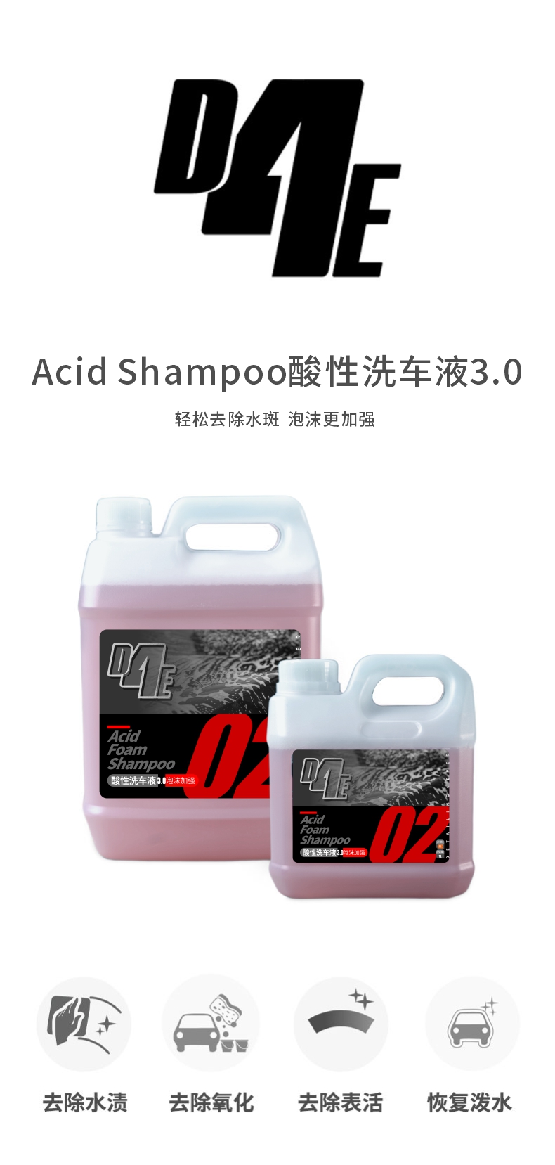 D4E 酸性洗车液 去除水渍去除氧化 恢复泼水 家用洗车液