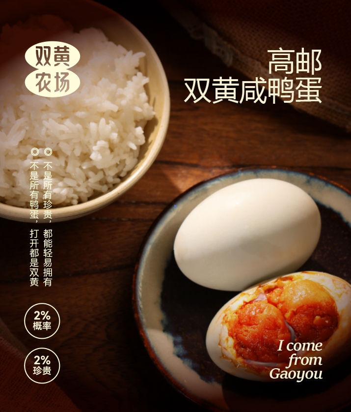 高邮麻鸭双黄咸鸭蛋 仅有2%鸭蛋是双黄 来自中国咸鸭蛋之都