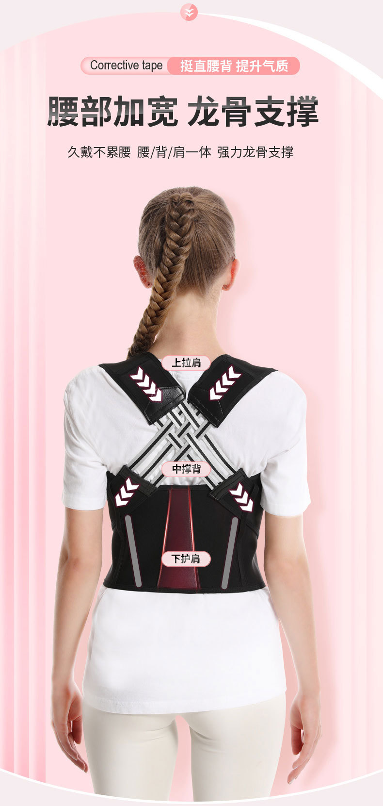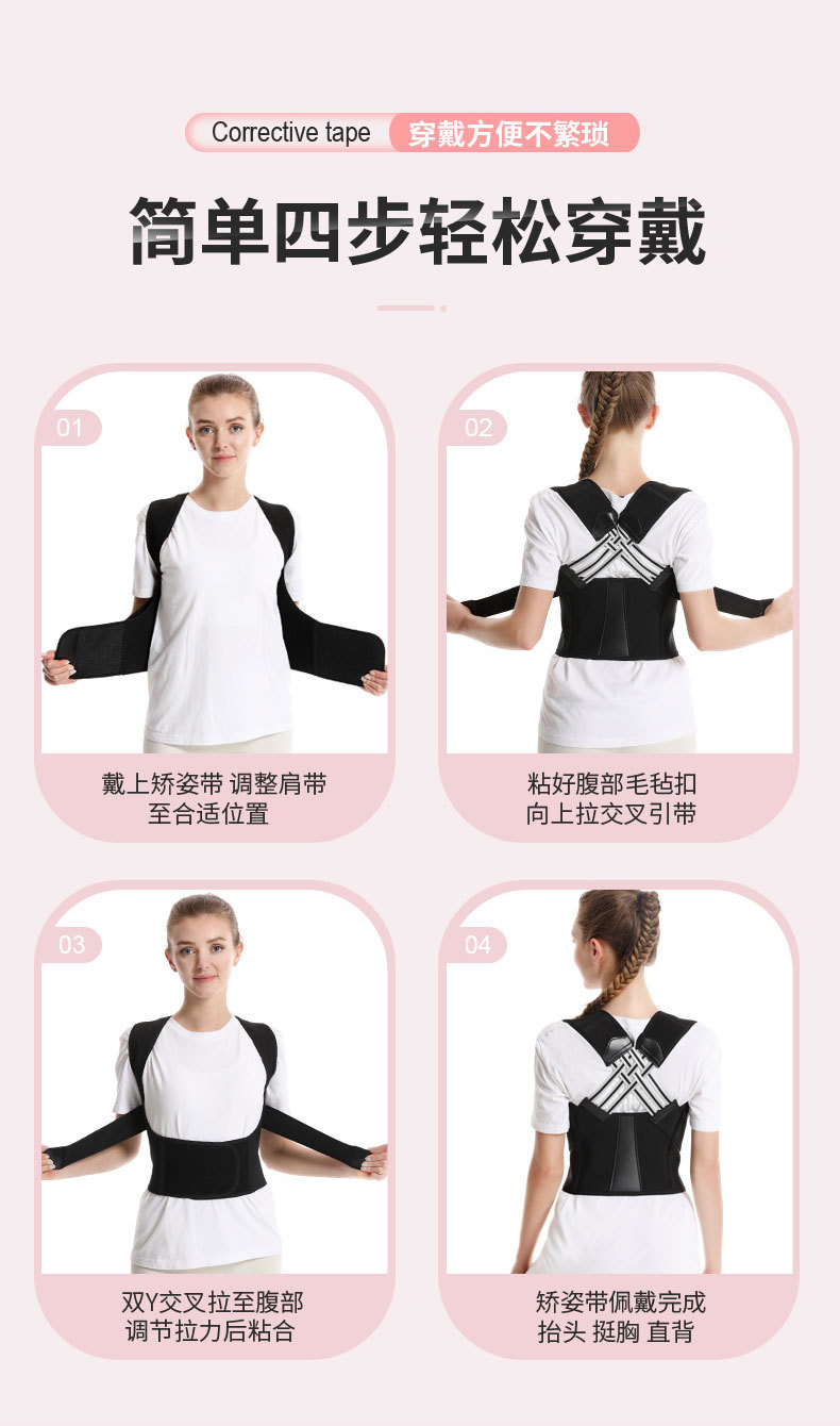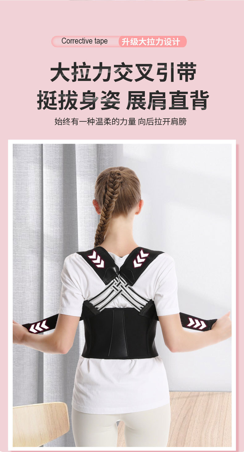 【人体工学设计舒适穿戴、强力龙骨支撑不累腰】驼背矫正器背部矫姿带儿童学生成年男女士隐形背部纠正开肩神器.TA