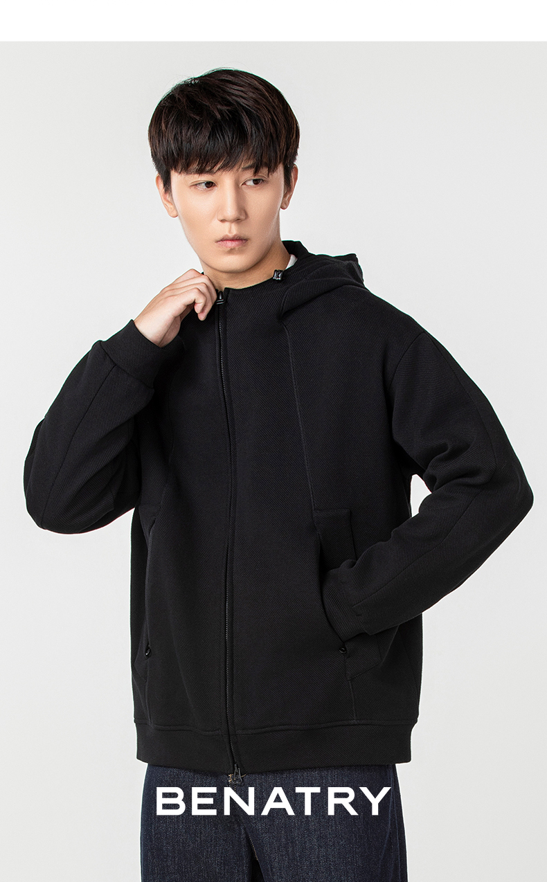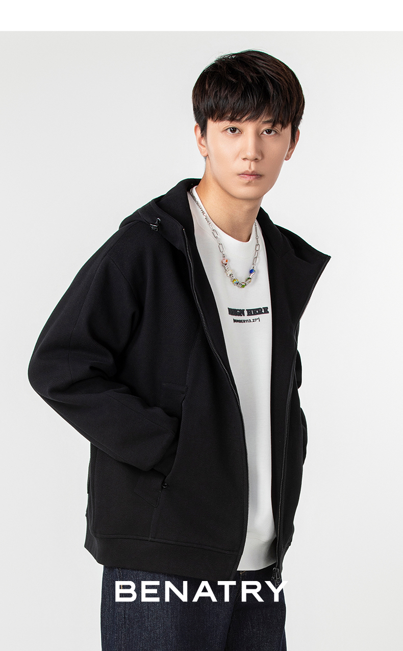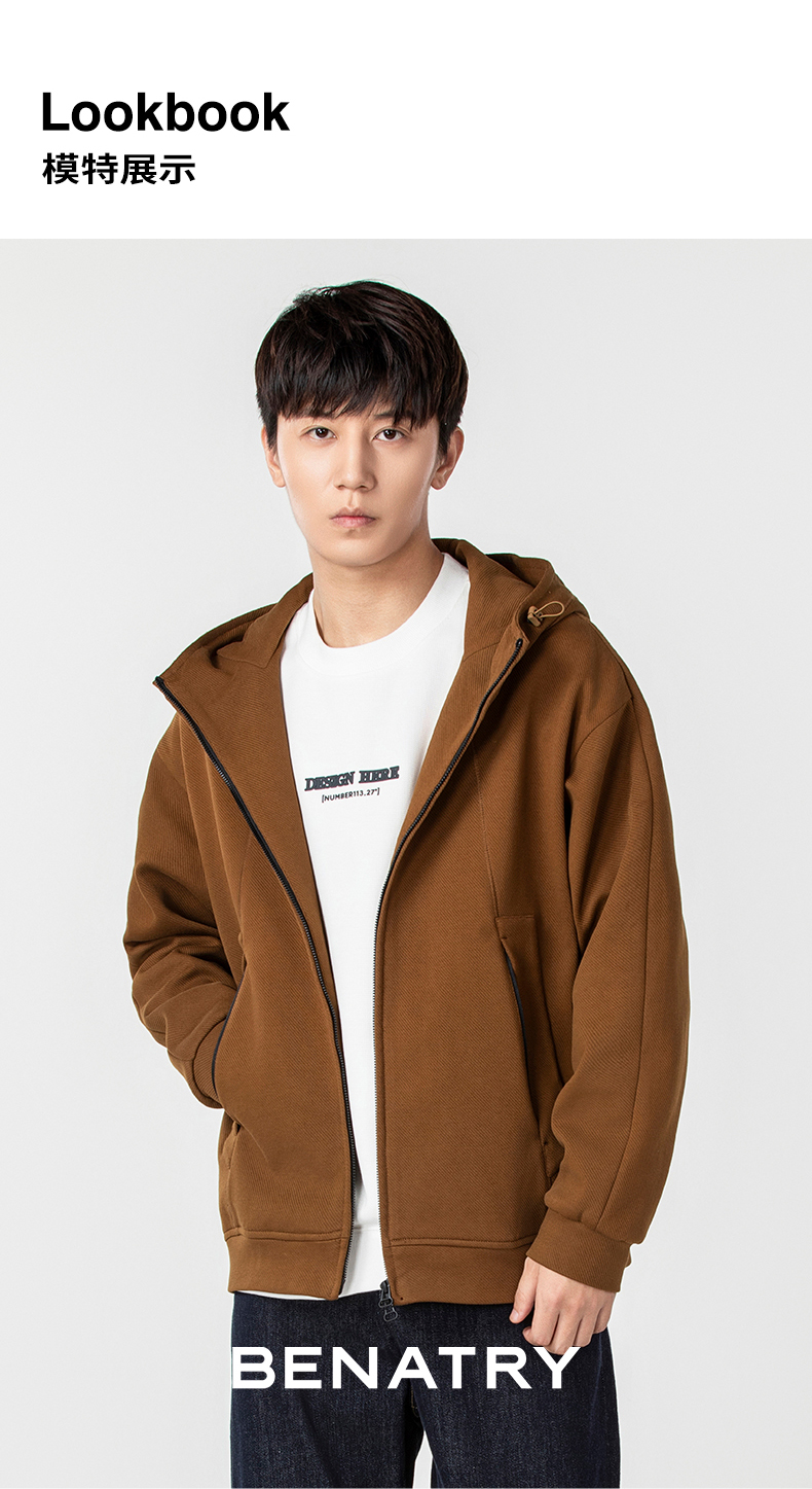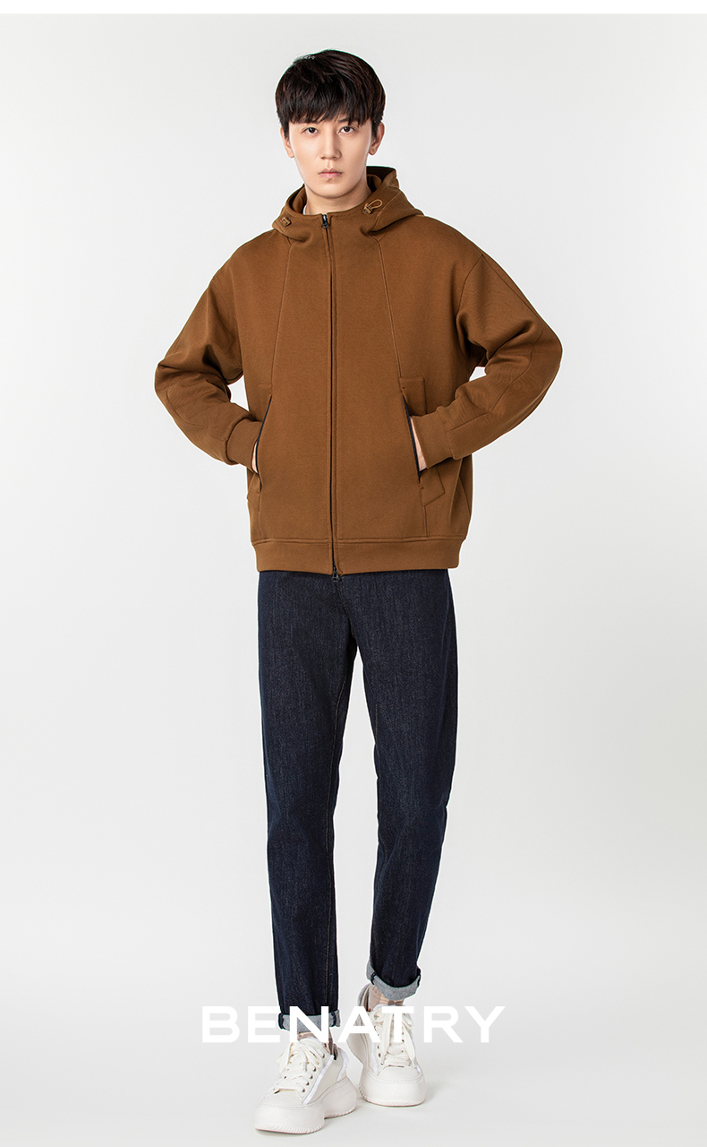 贝纳川时尚拉链男士休闲连帽外套ECP300007
