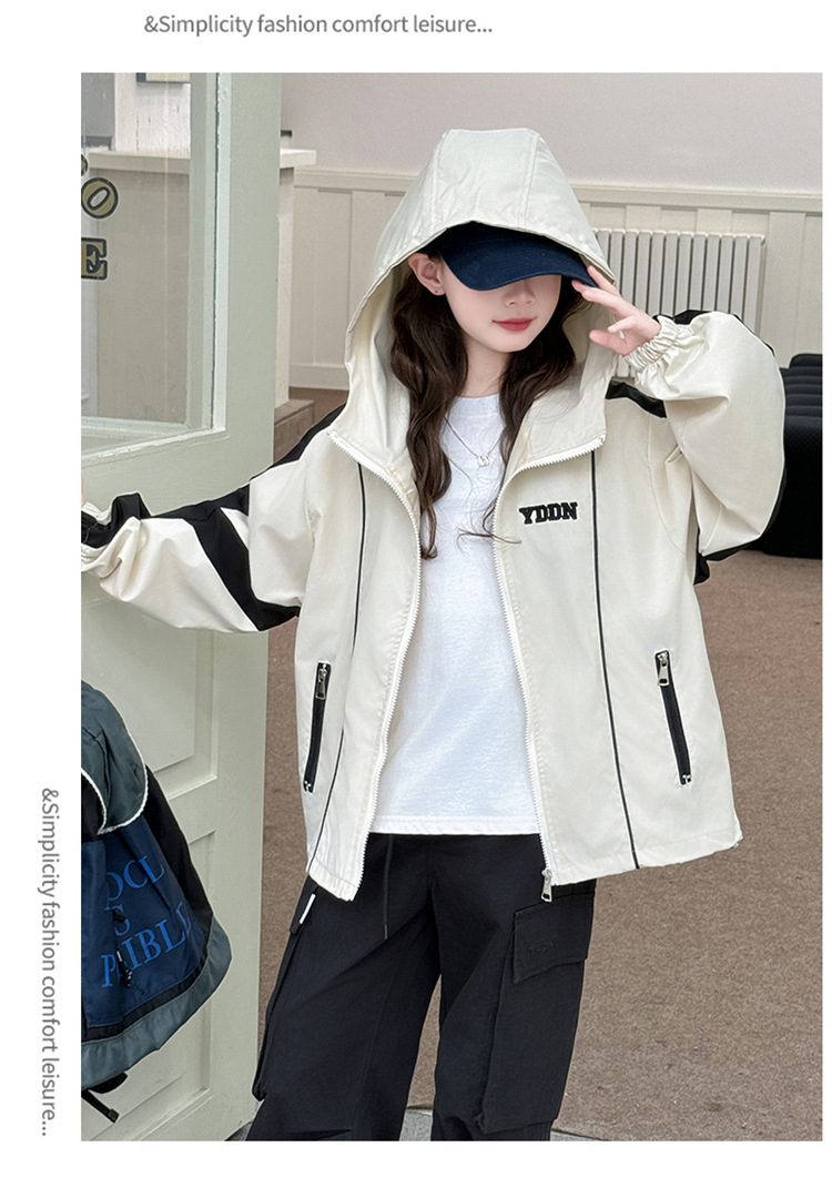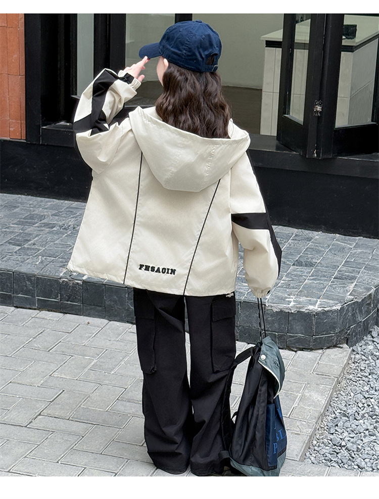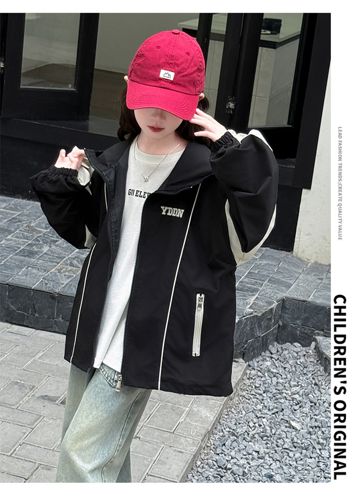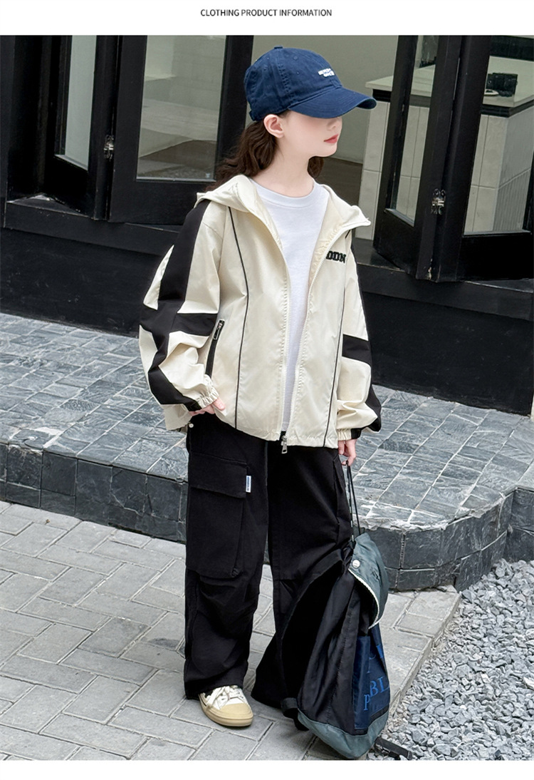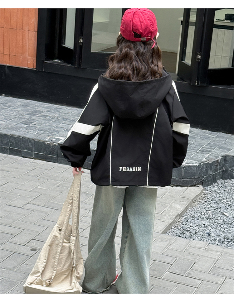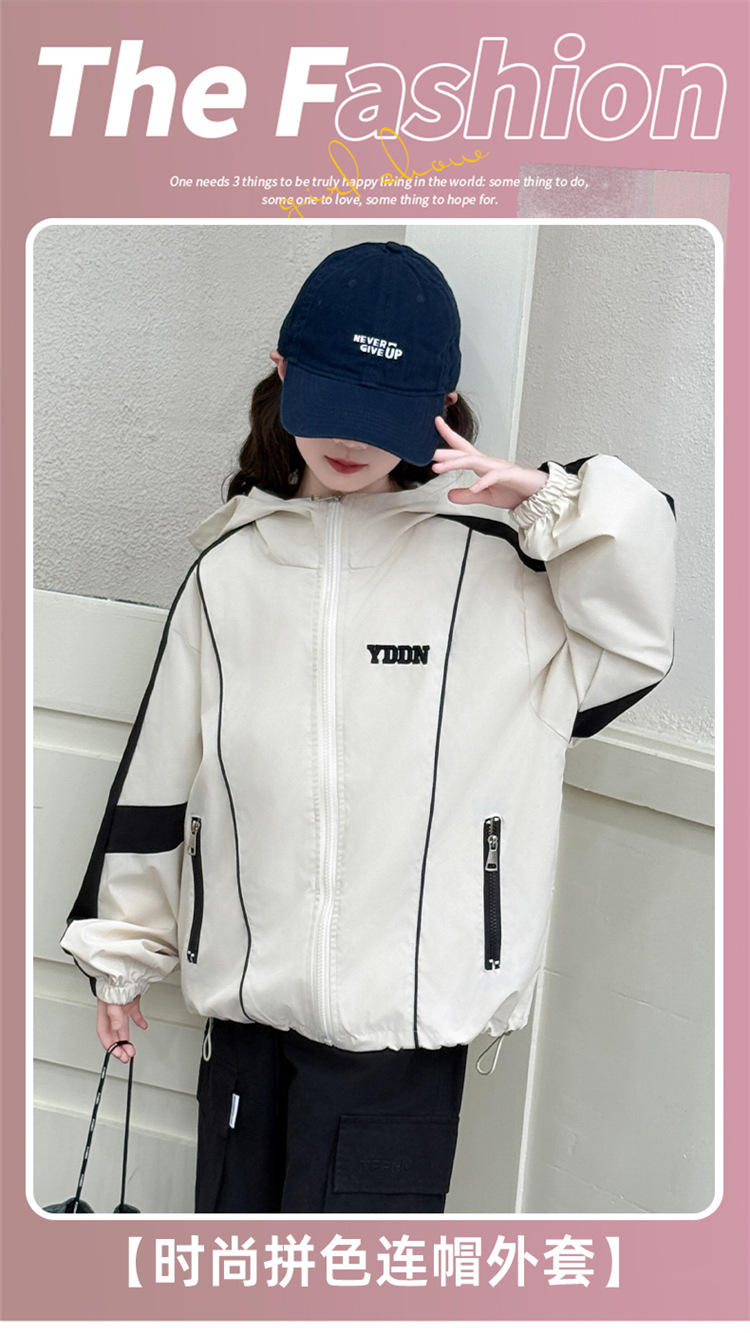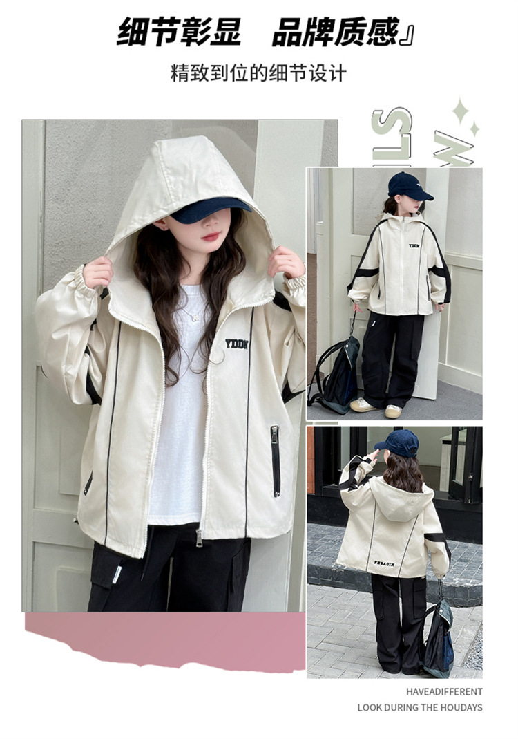【中长款新春外套!酷飒百搭】女童春季外套 2025新款 儿童春装 女孩早春拼色 洋气女大童冲锋衣春秋-QQ