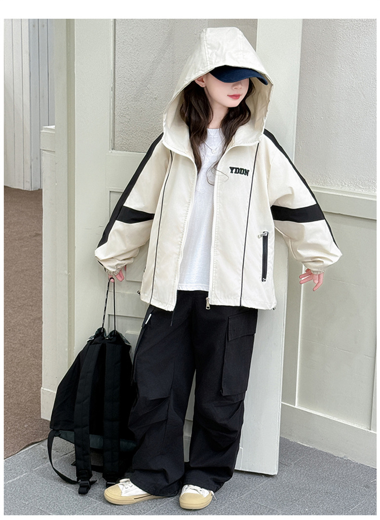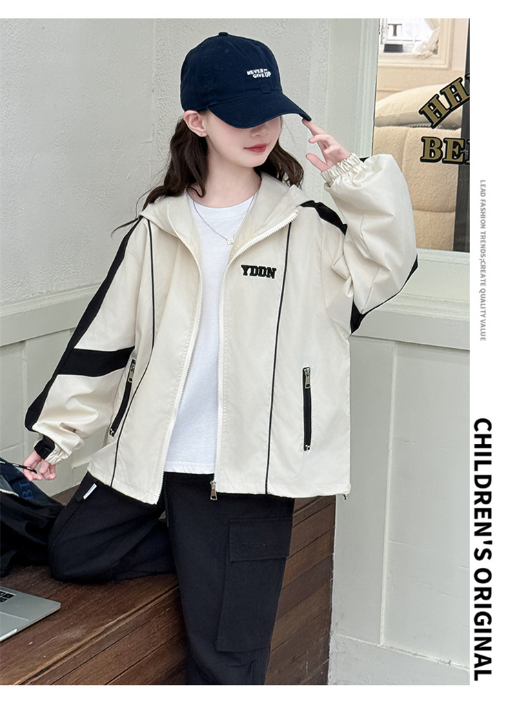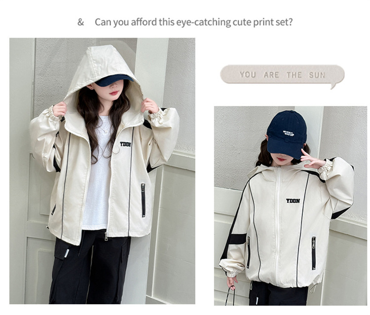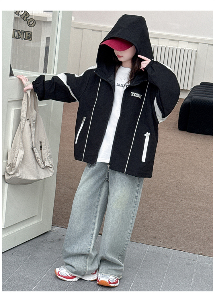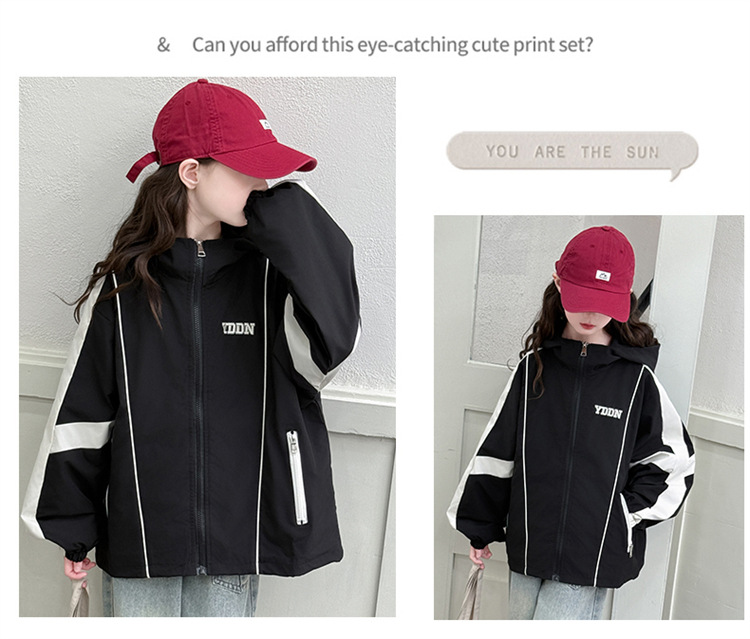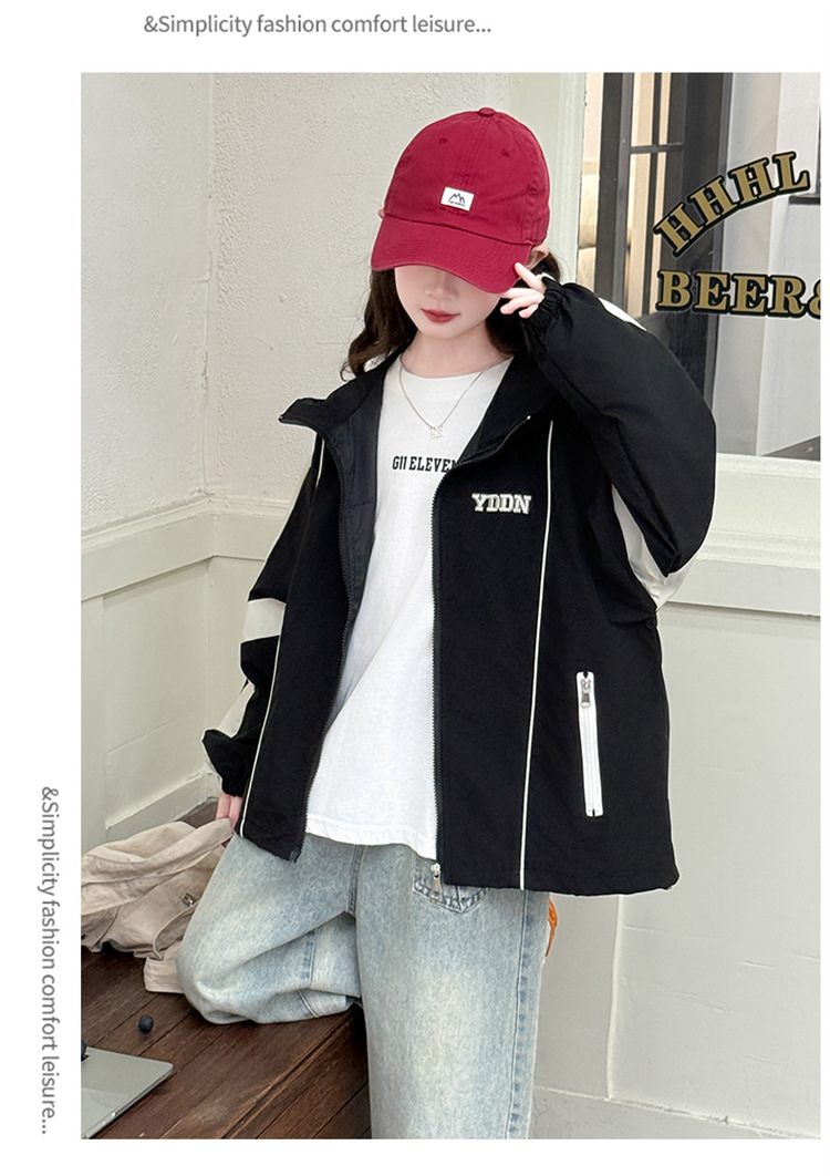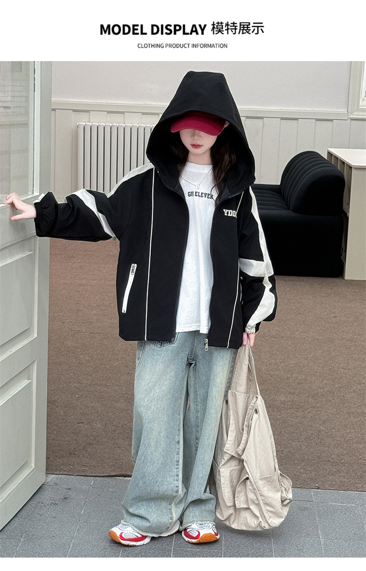 【中长款新春外套!酷飒百搭】女童春季外套 2025新款 儿童春装 女孩早春拼色 洋气女大童冲锋衣春秋-QQ