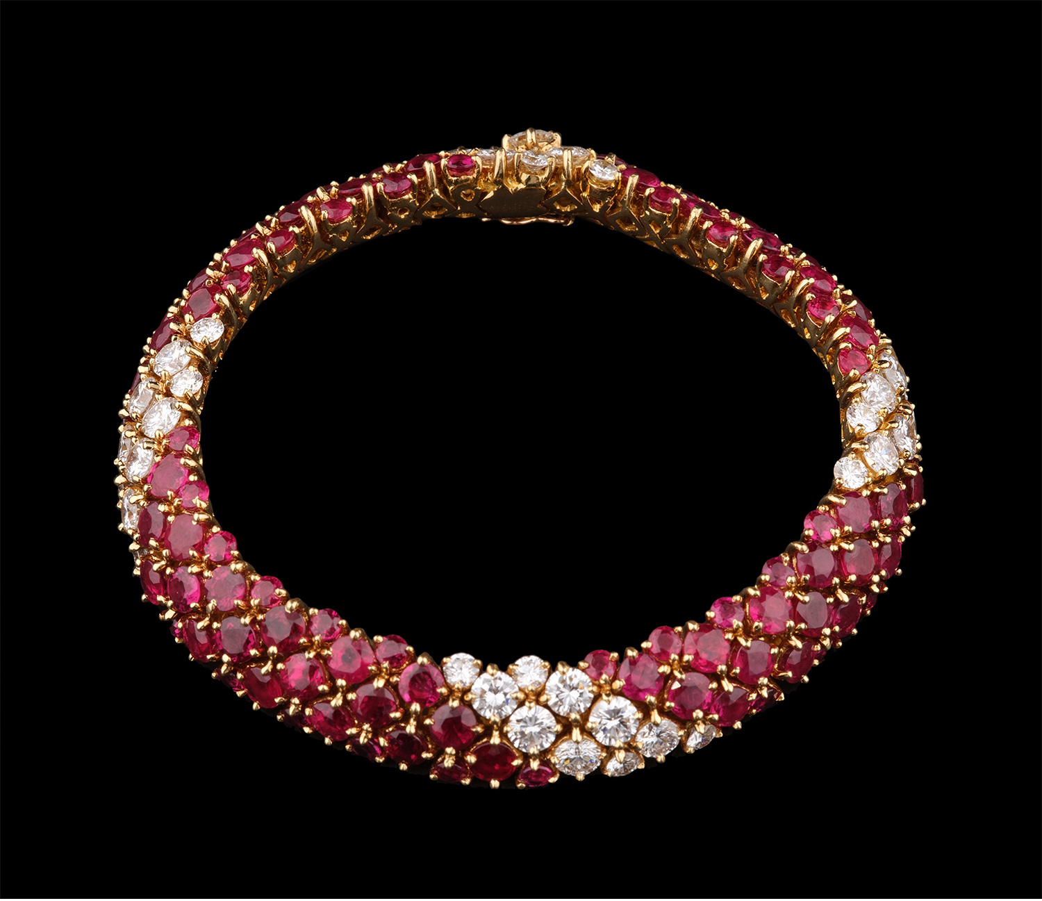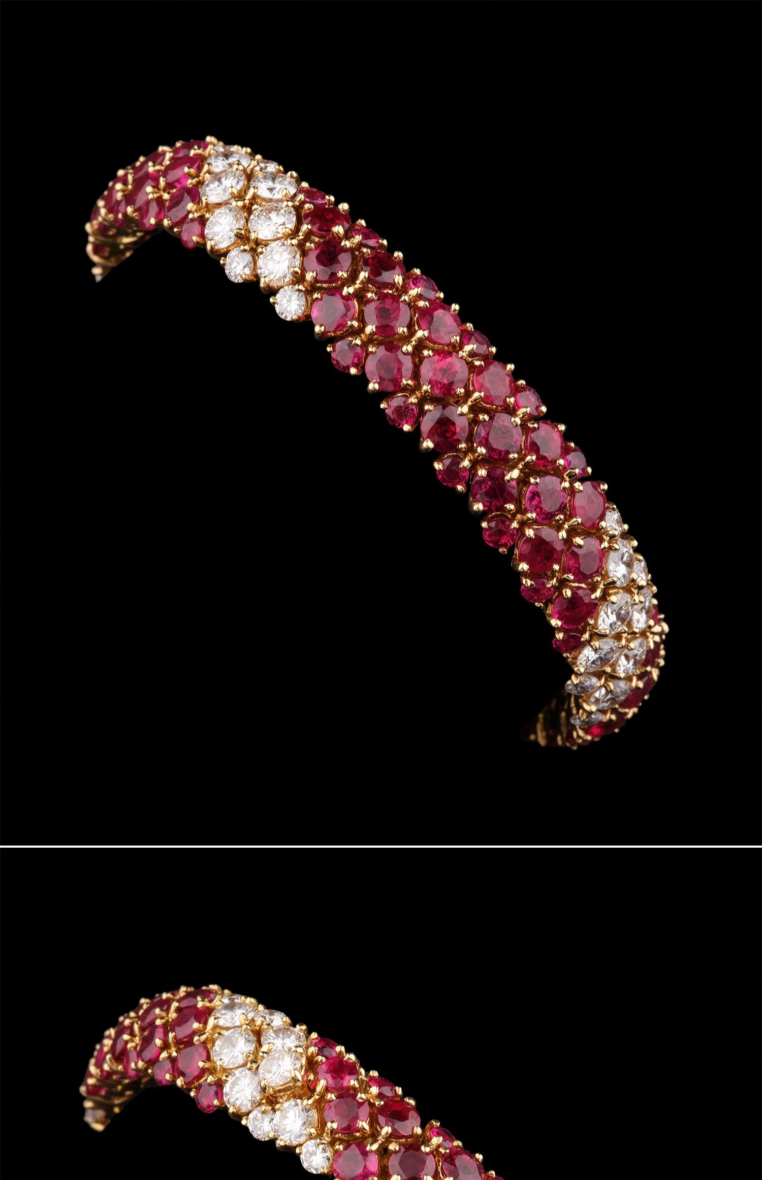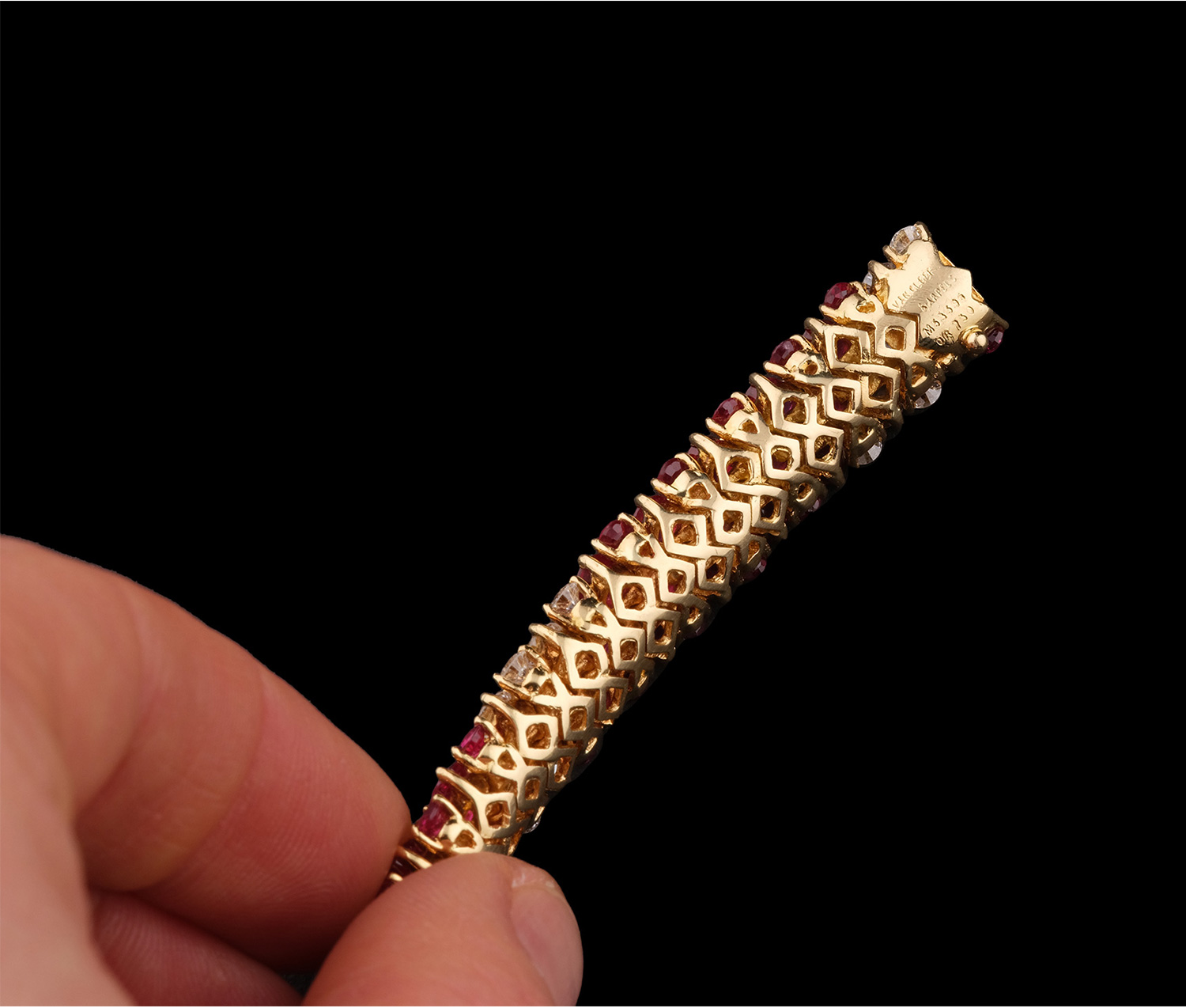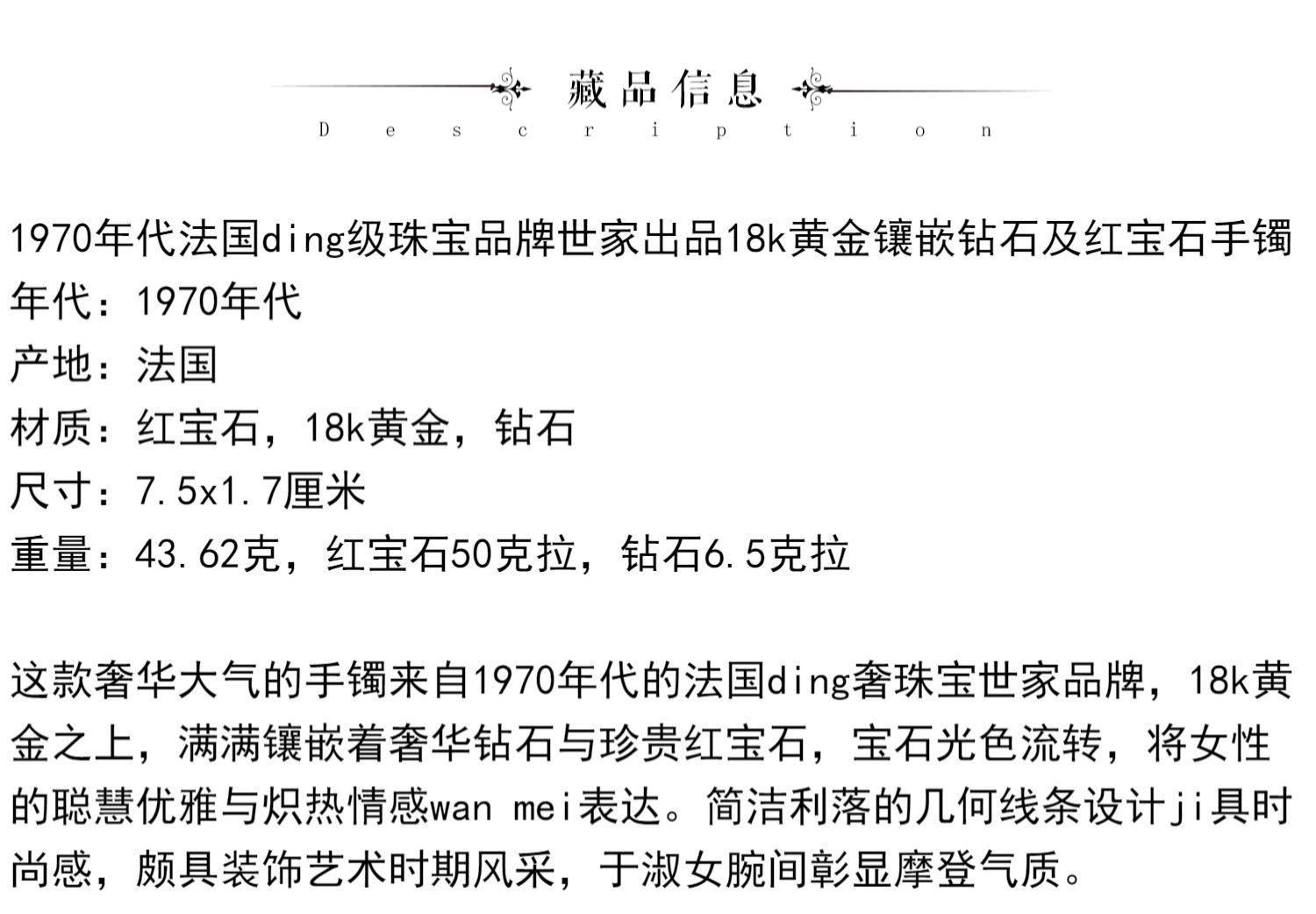 独角鹿西洋古董首饰法国珠宝世家18K黄金镶钻石红宝石手镯