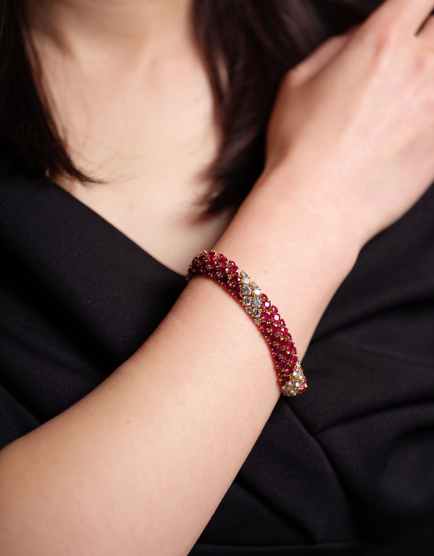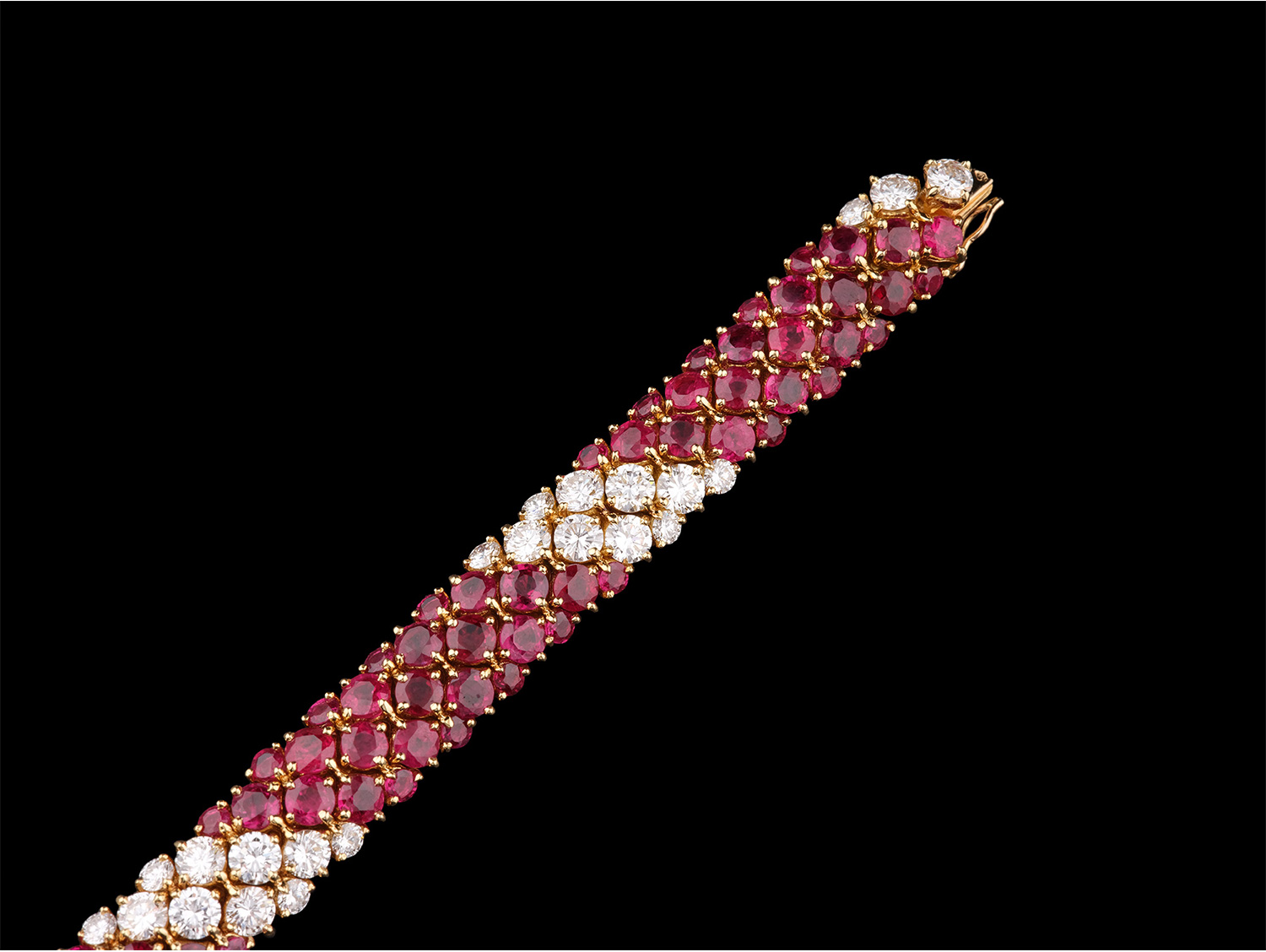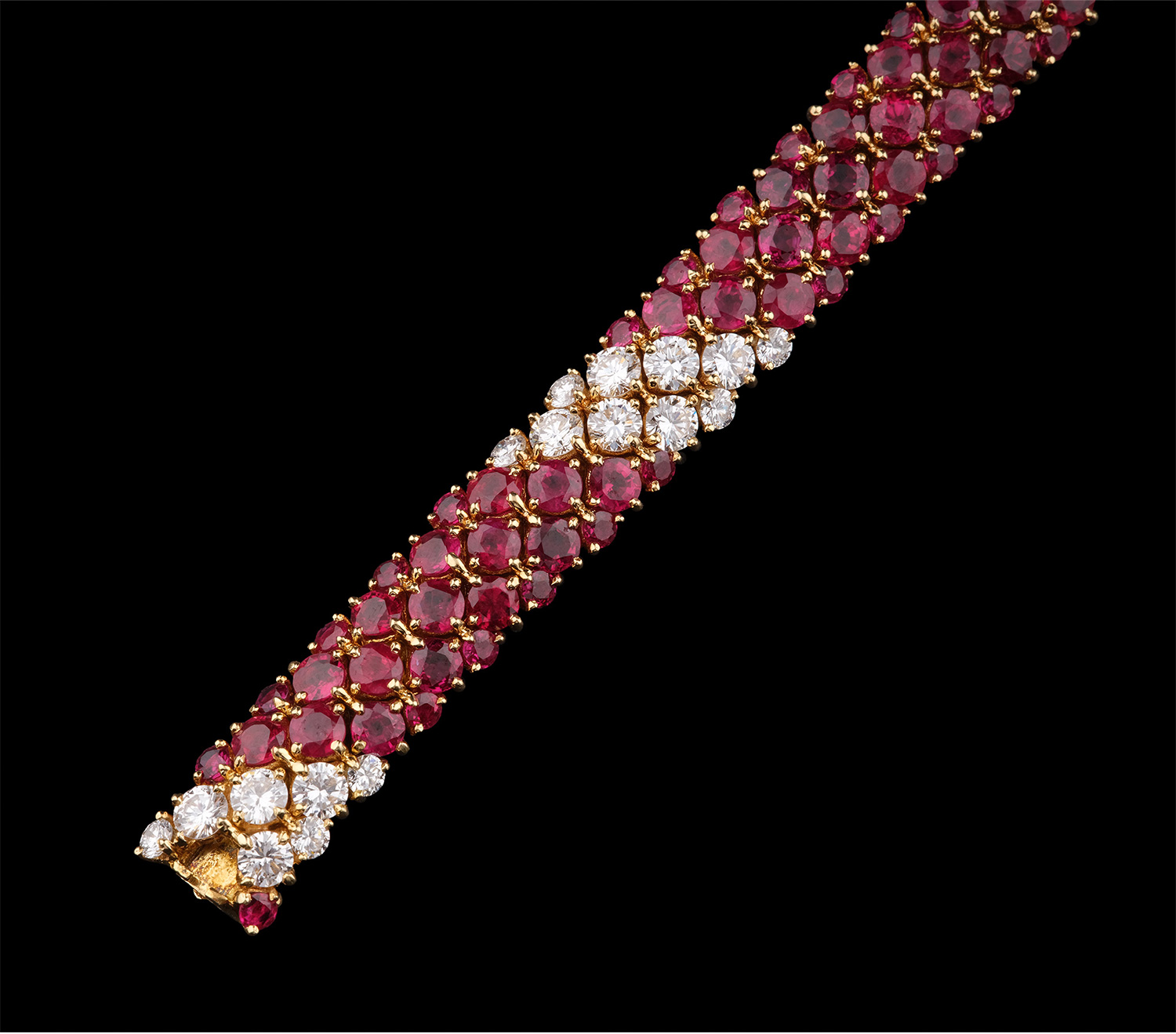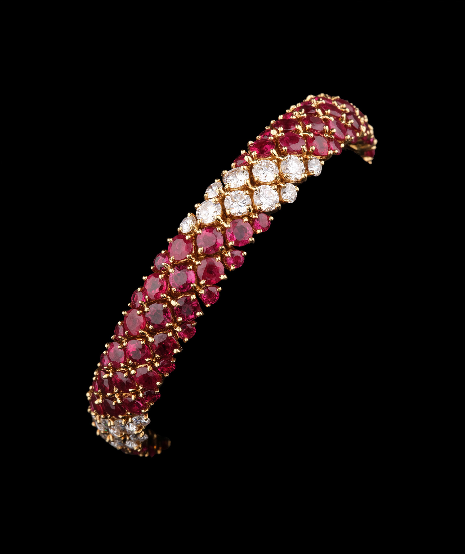 独角鹿西洋古董首饰法国珠宝世家18K黄金镶钻石红宝石手镯
