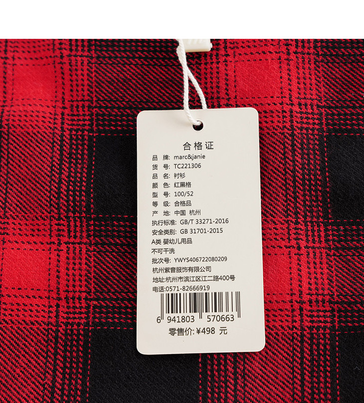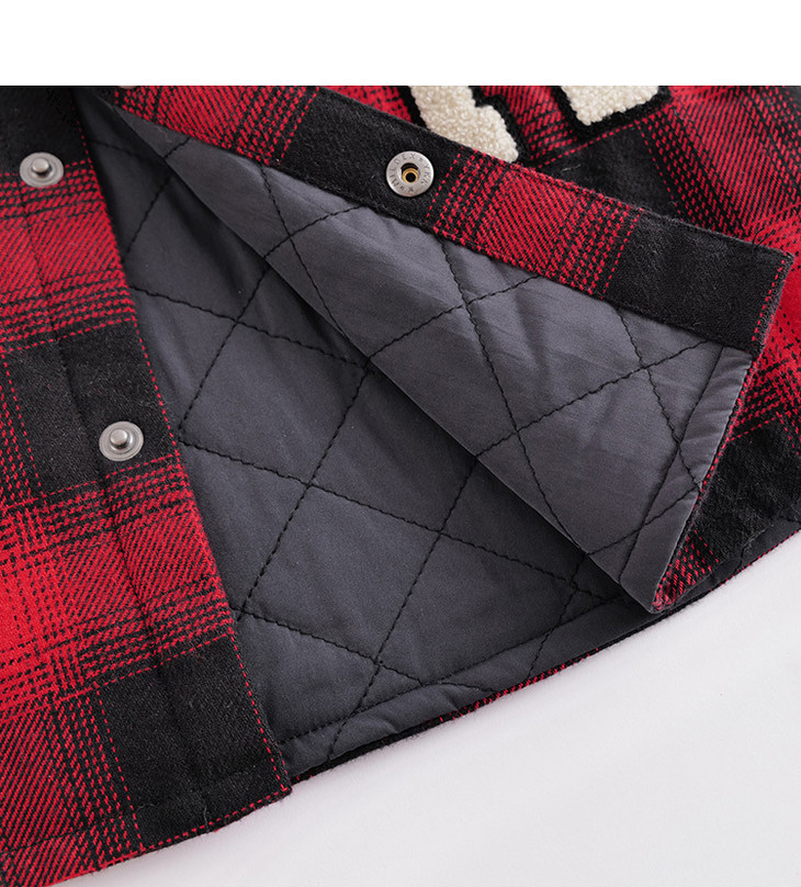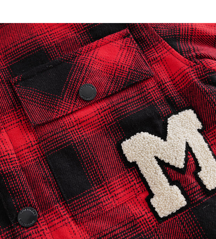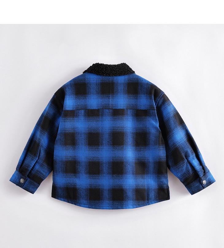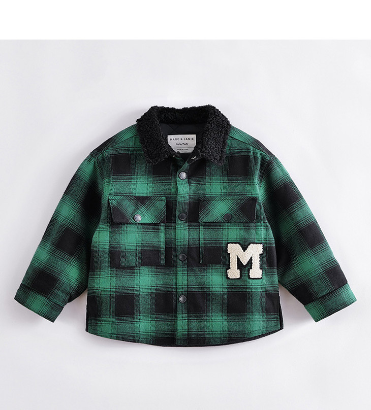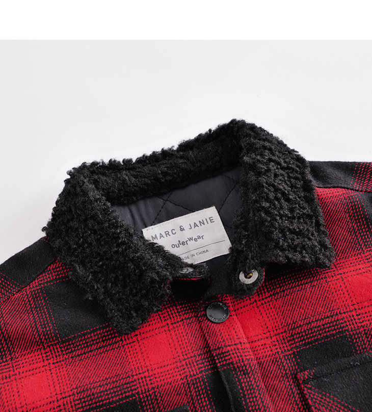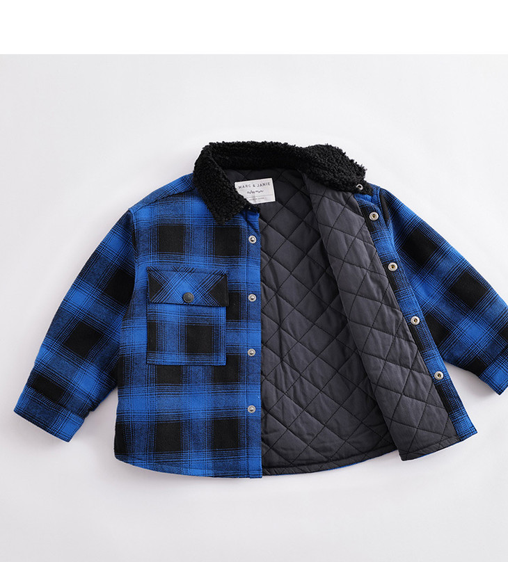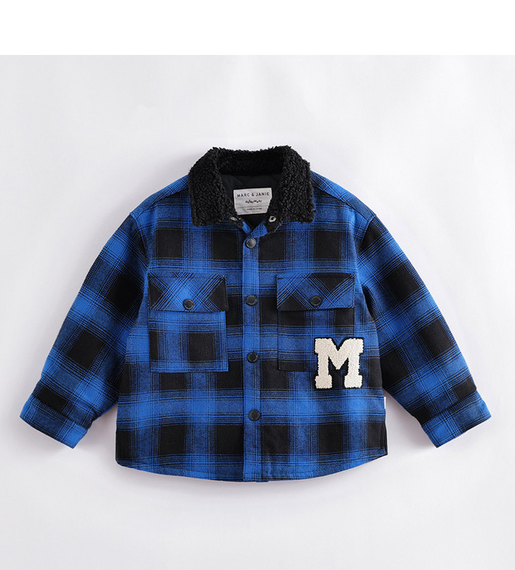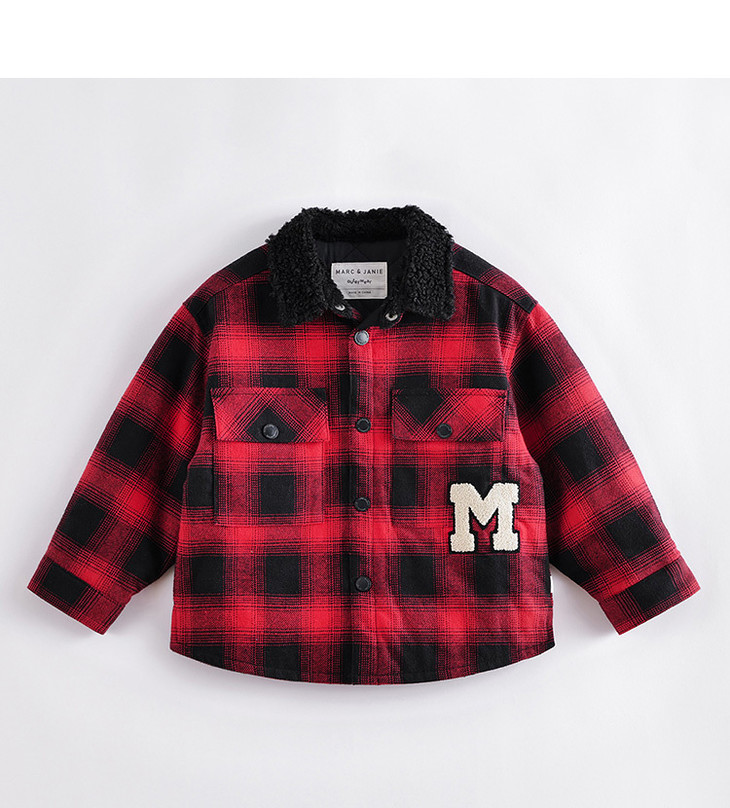 马克珍妮秋装新款 男童仿羊羔绒翻领格纹衬衫 儿童外套221306