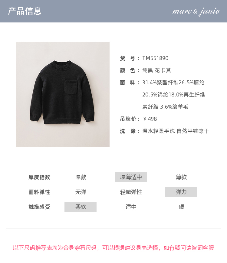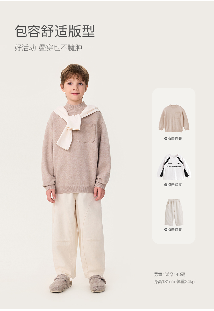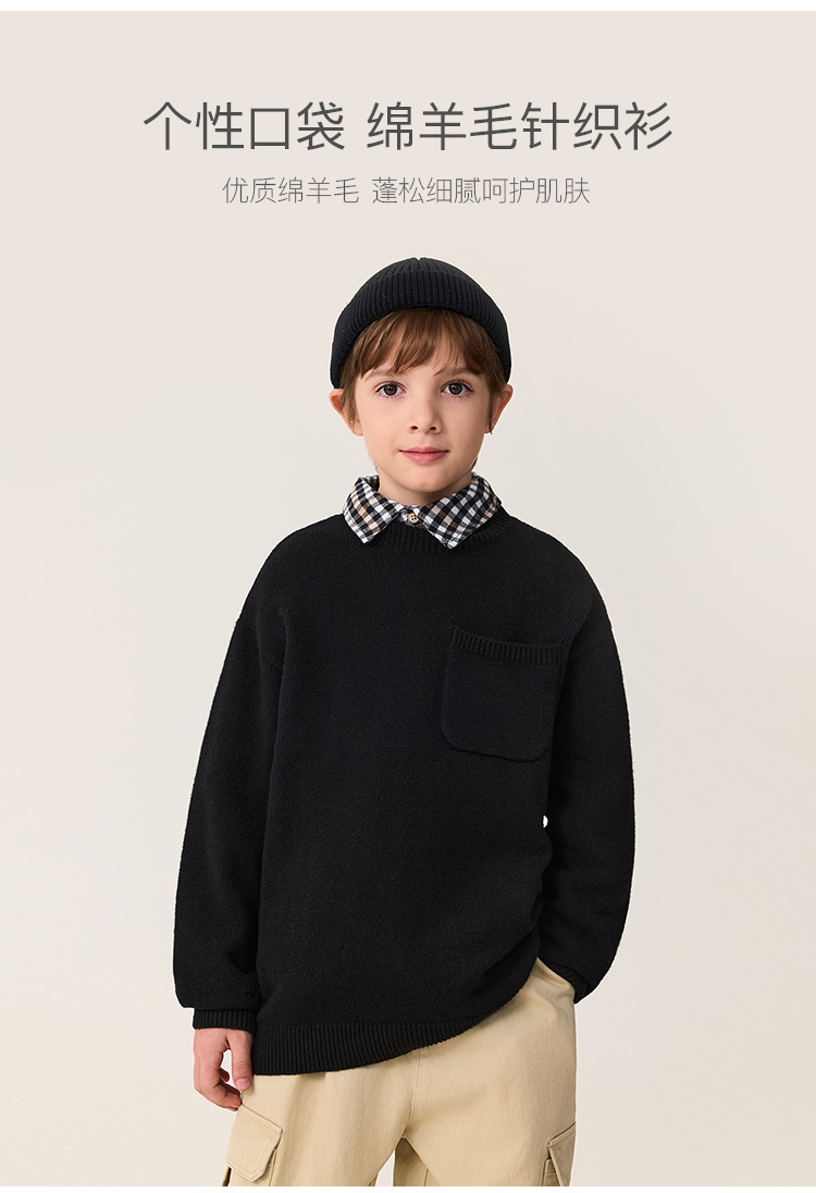 马克珍妮男童立体口袋绵羊毛针织衫2025年冬装新款551890