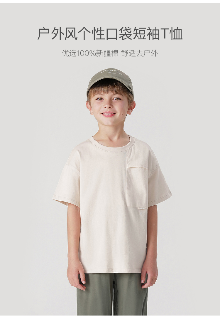 马克珍妮男童城市户外个性口袋短袖T恤儿童纯棉上衣夏装240502
