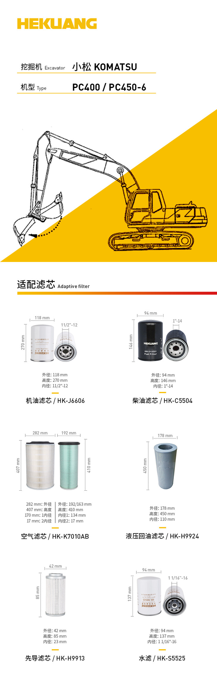 小松PC400/450-6挖掘机滤芯 机油柴油空气滤芯 液压油先导滤芯