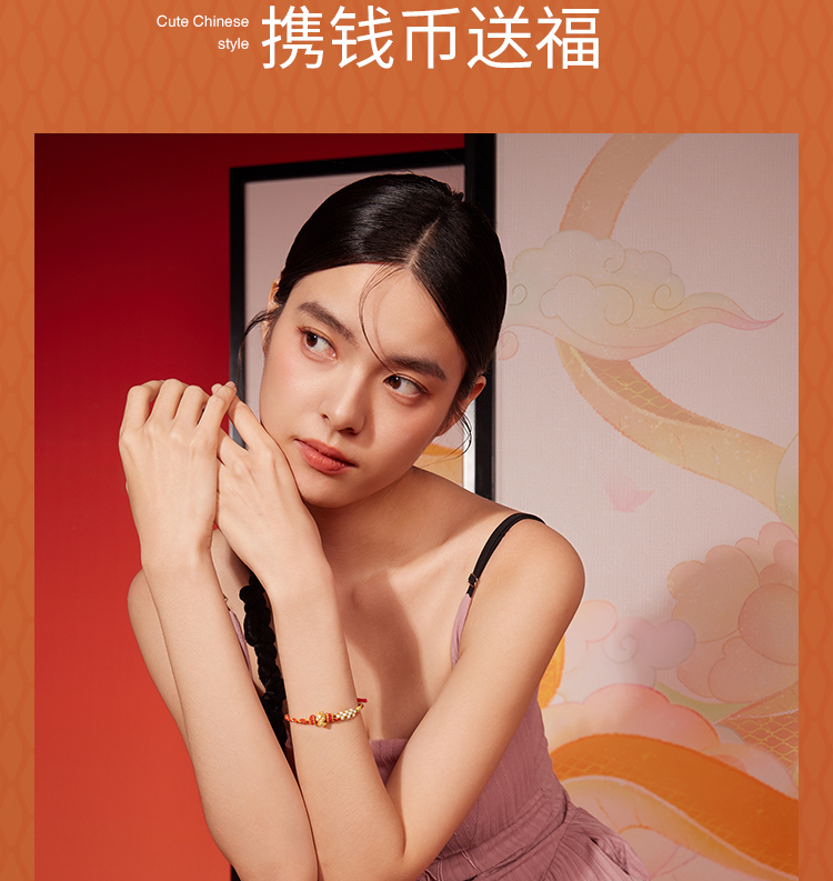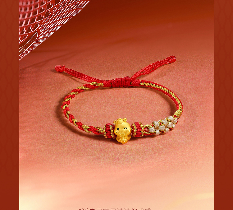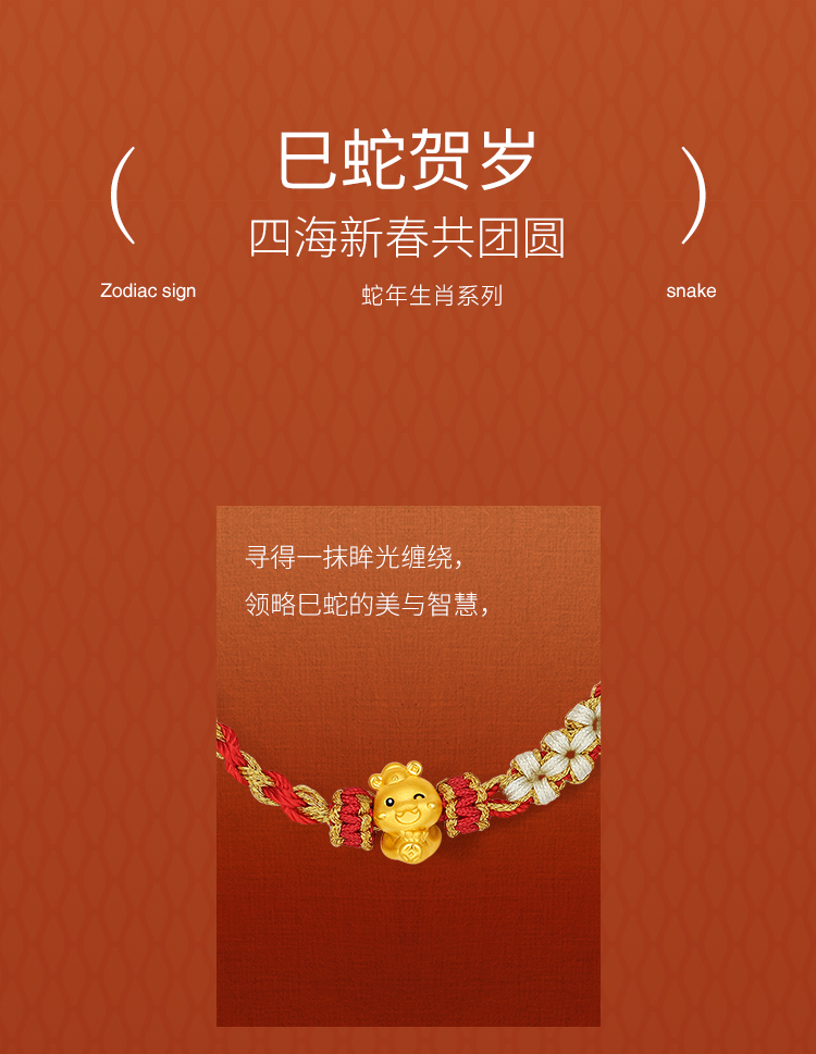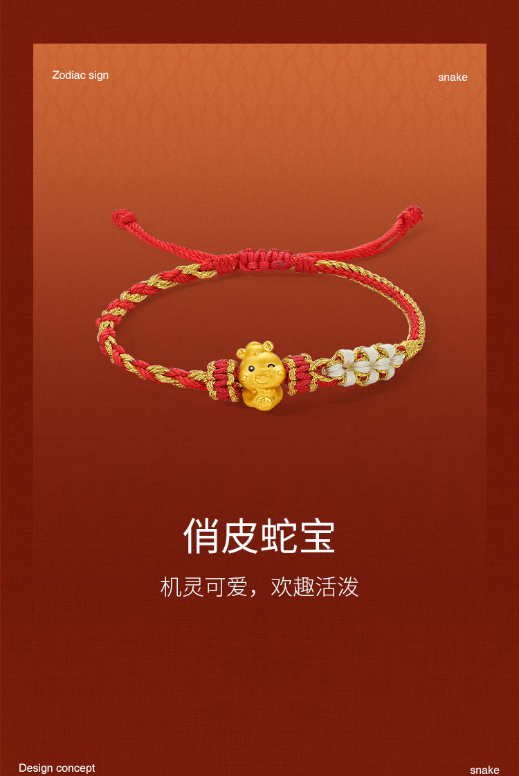周六福黄金蛇手绳女3d硬金俏皮蛇宝定价生肖蛇本命年招财财神手绳