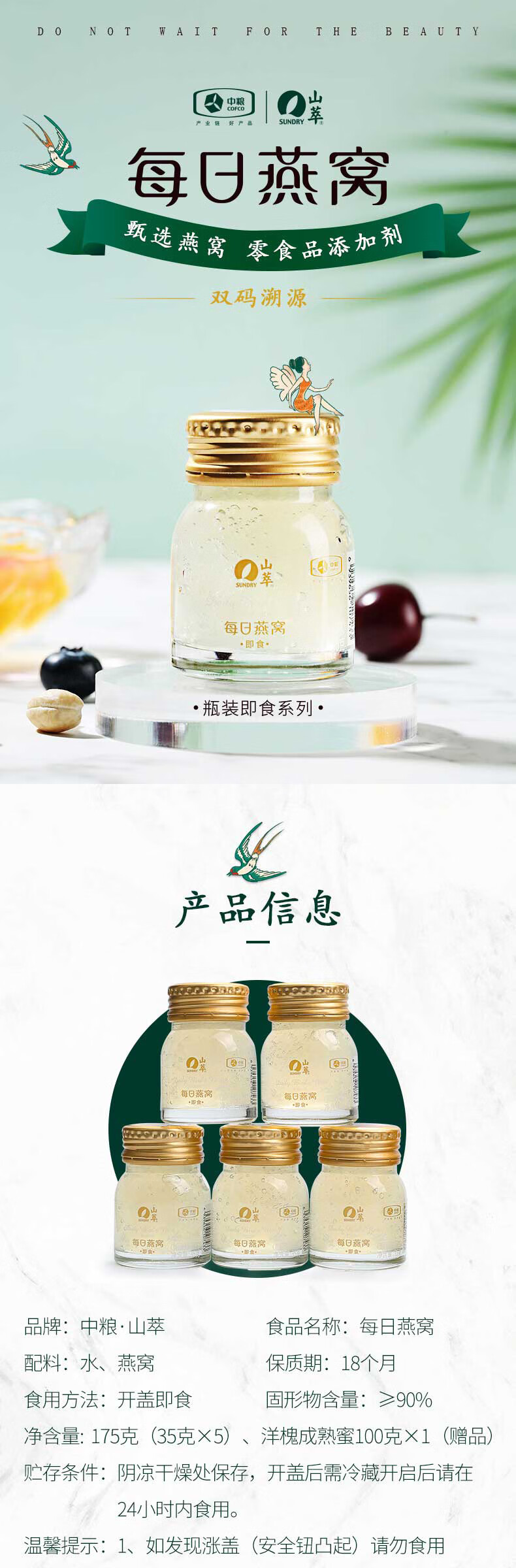 山萃中粮每日燕窝礼盒175g(35克*5瓶)金丝燕溯源燕窝 即食燕窝营养