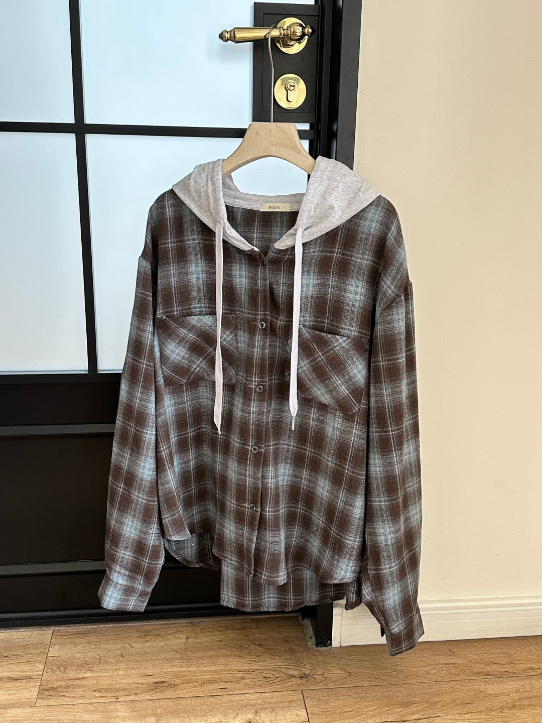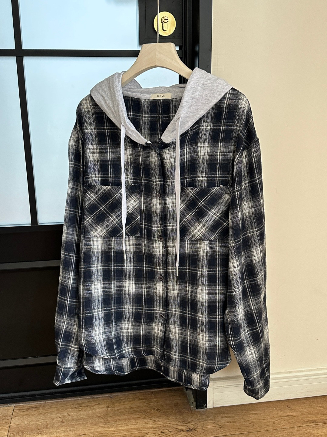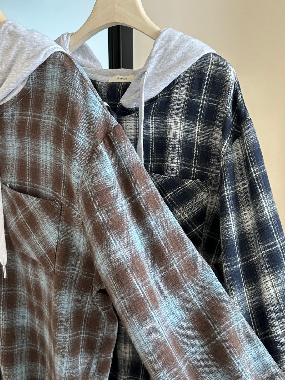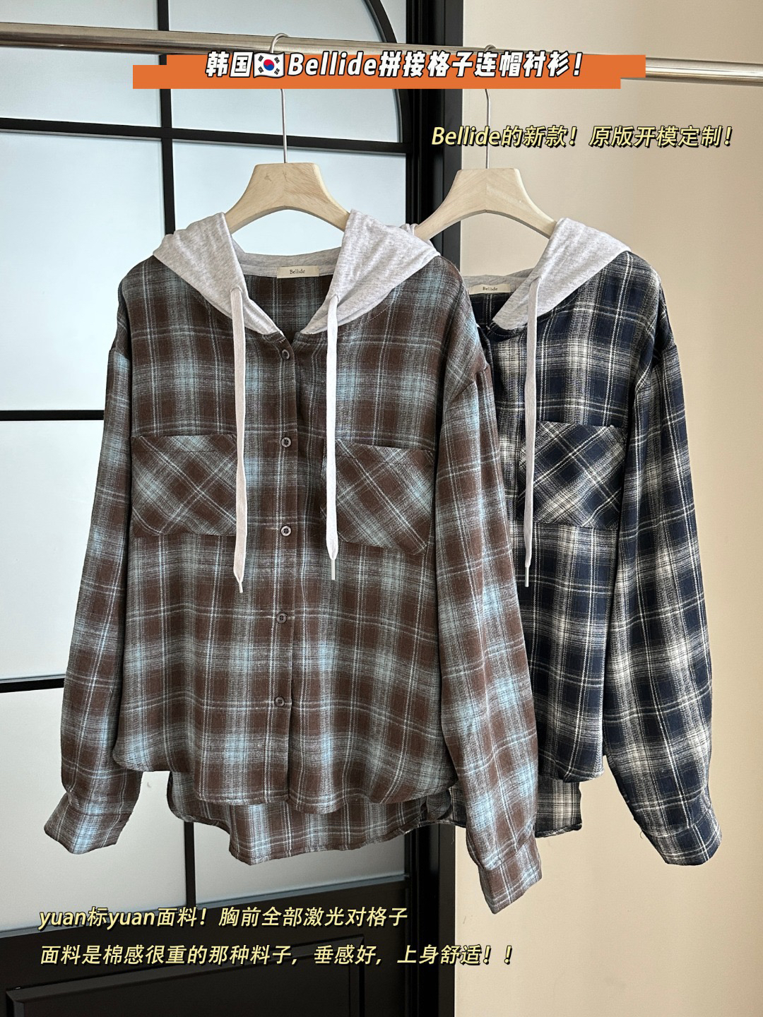 韩国🇰🇷Bellide拼接格子连帽衬衫!