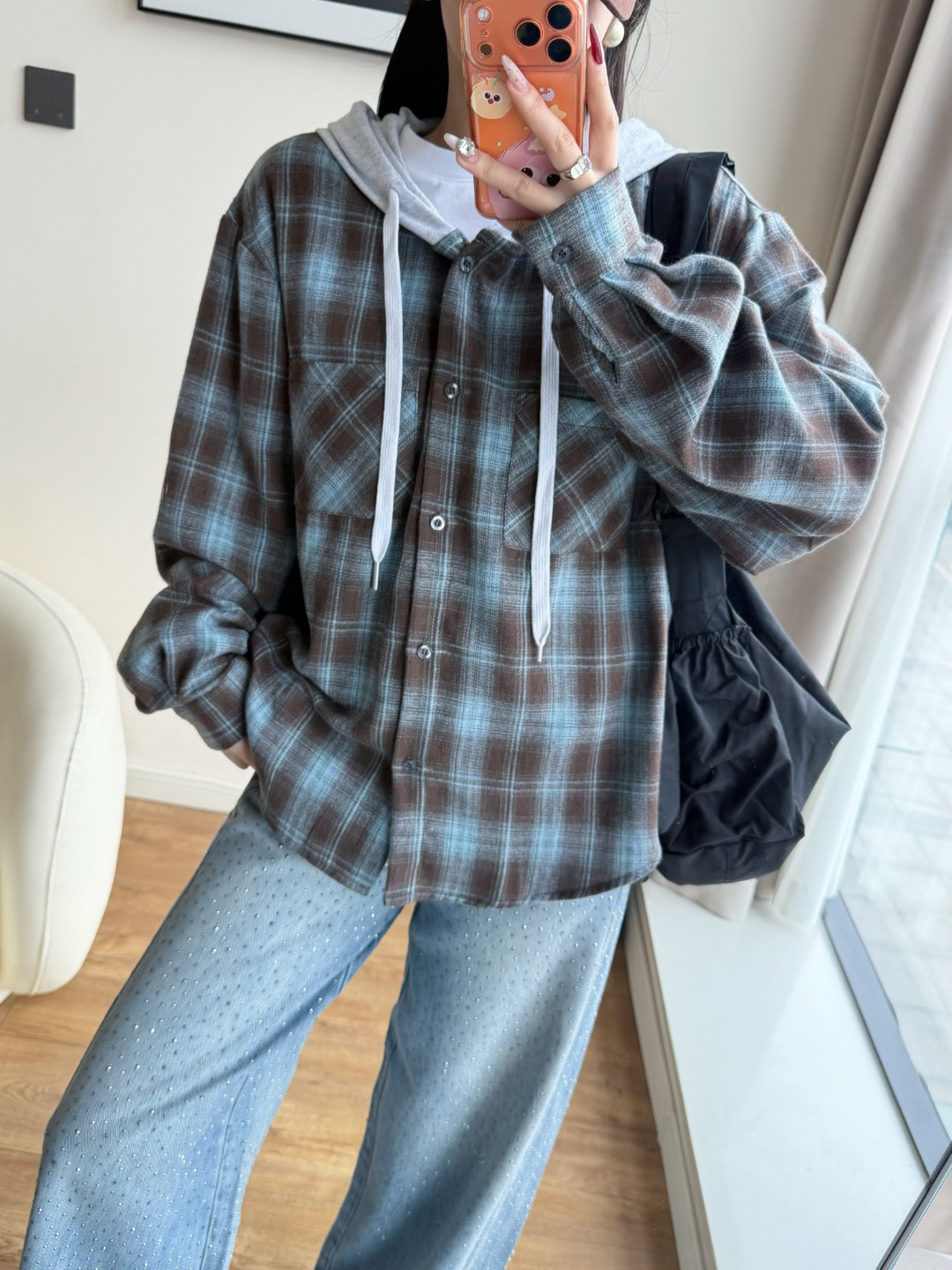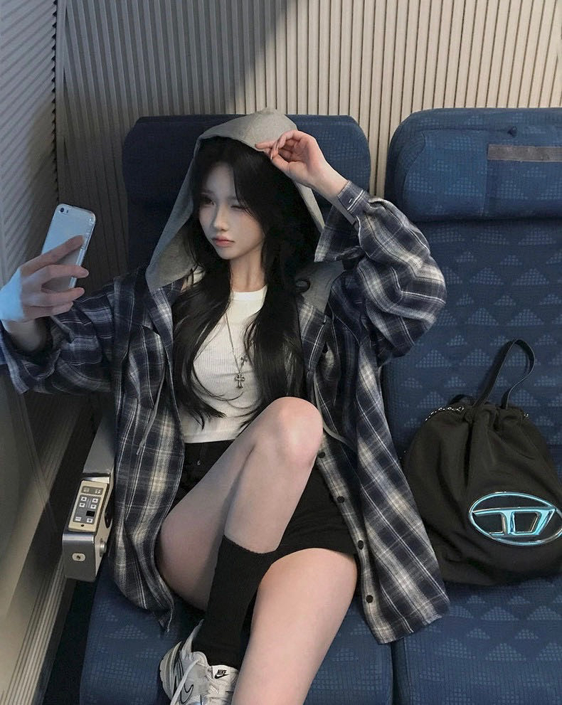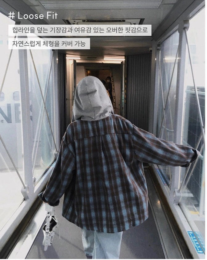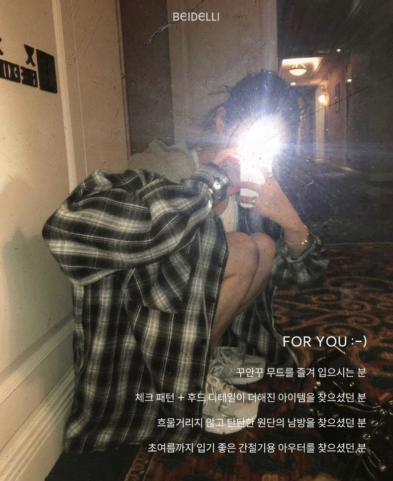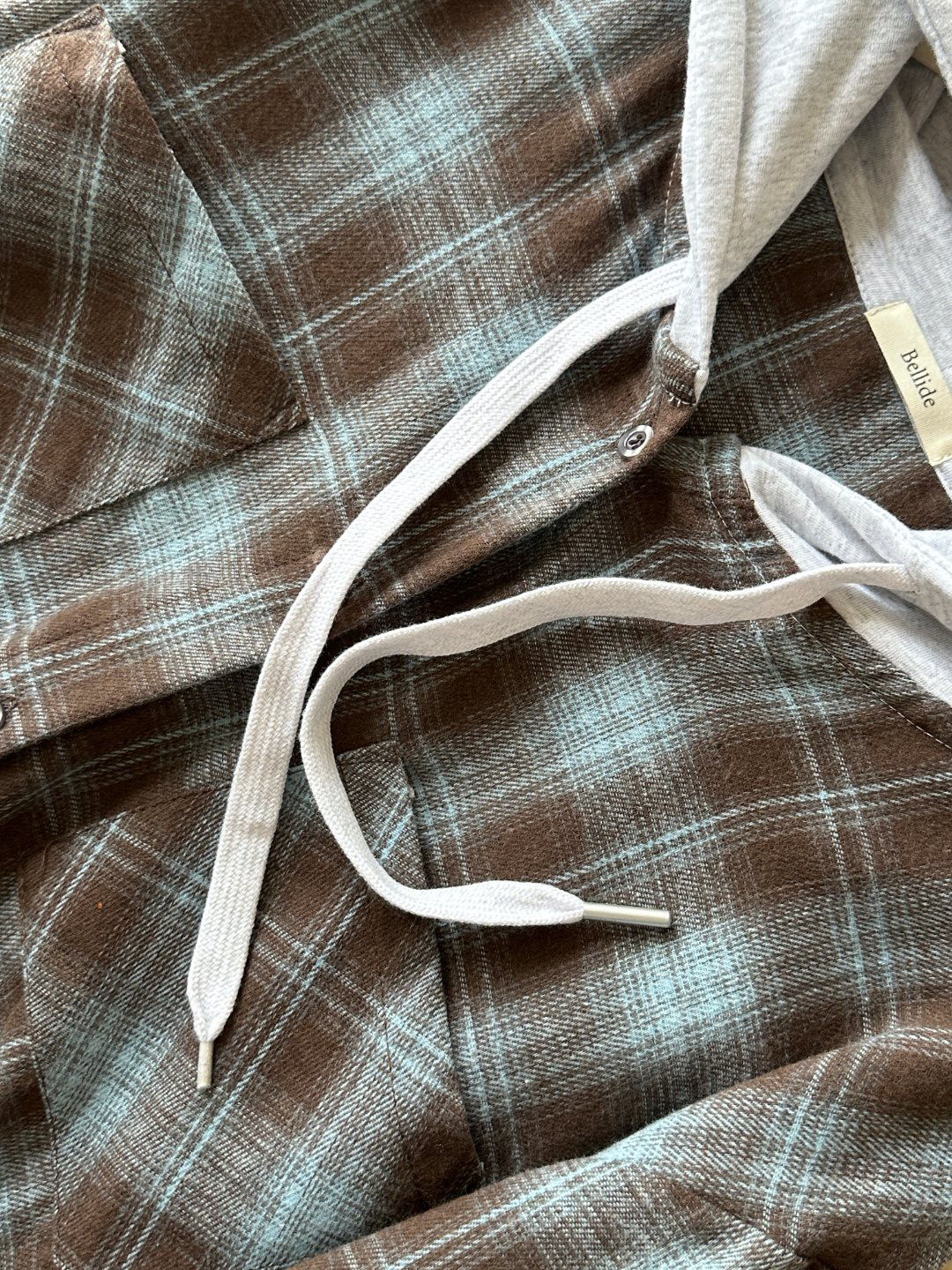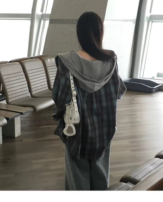 韩国🇰🇷Bellide拼接格子连帽衬衫!