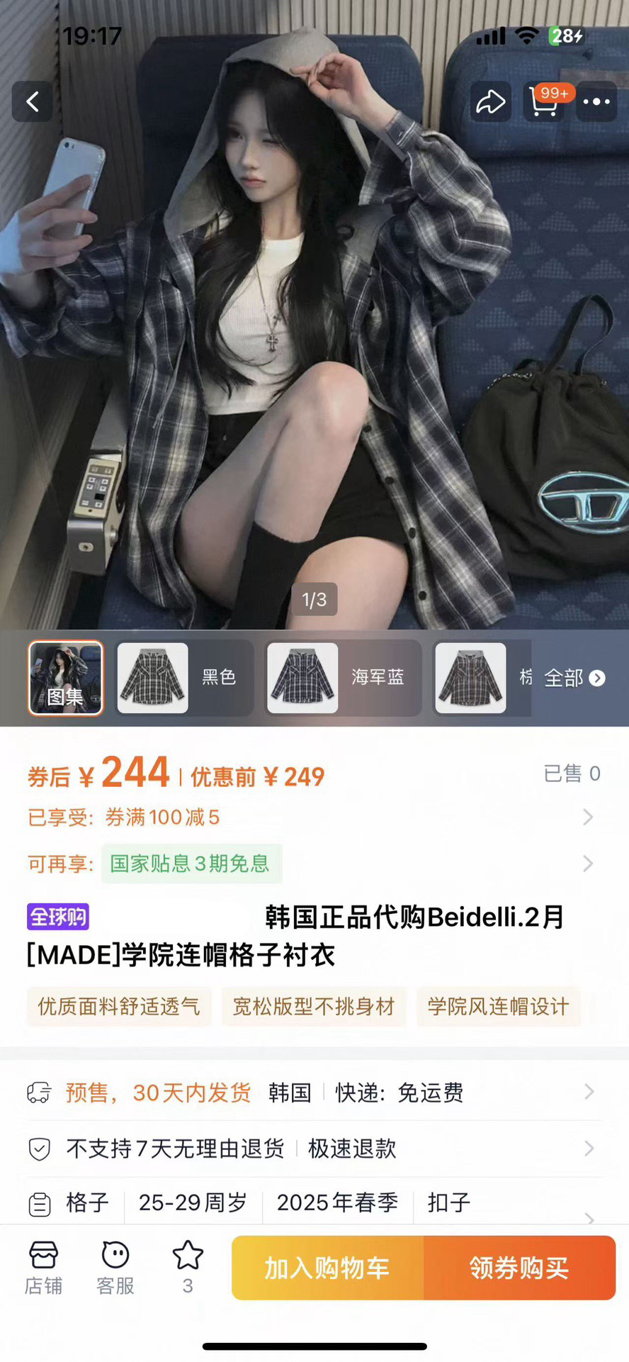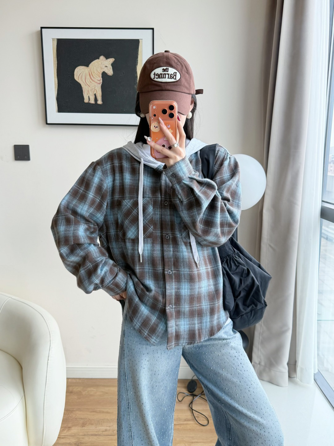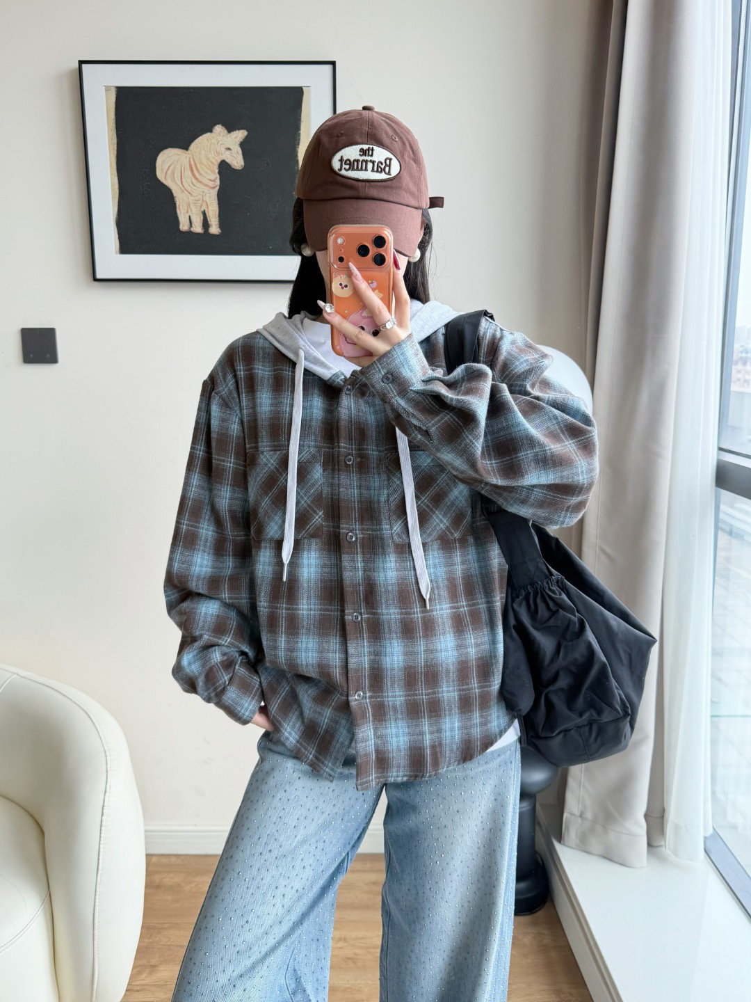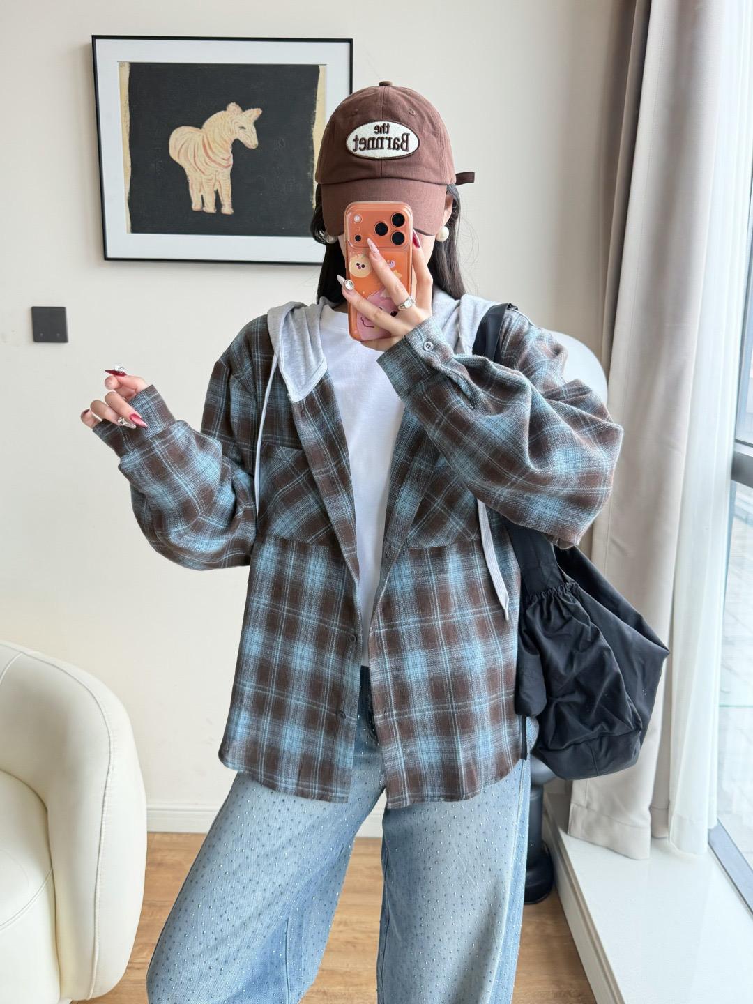 韩国🇰🇷Bellide拼接格子连帽衬衫!