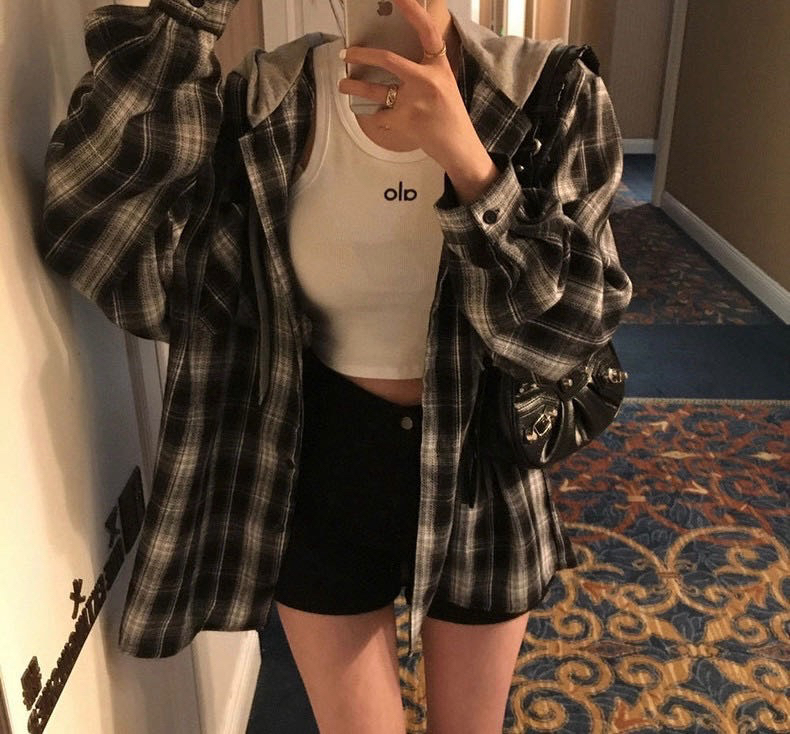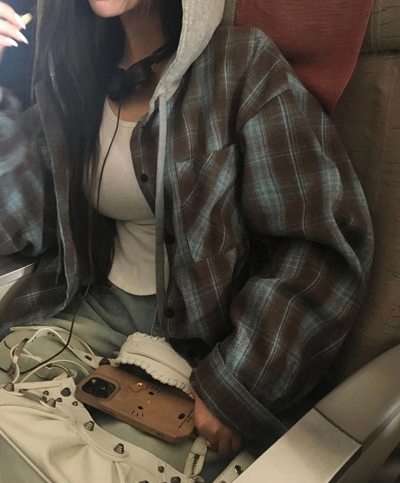 一衣多穿封神!磨毛格纹连帽衫,休闲复古两不误~早春叠穿天花板~