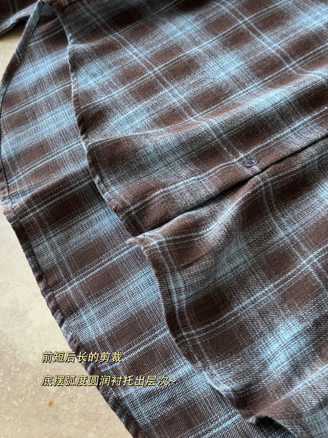 前短后长的剪裁,底摆弧度圆润衬托出层次~