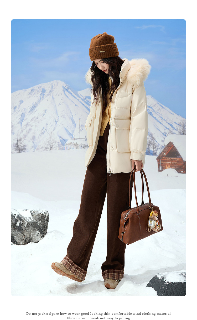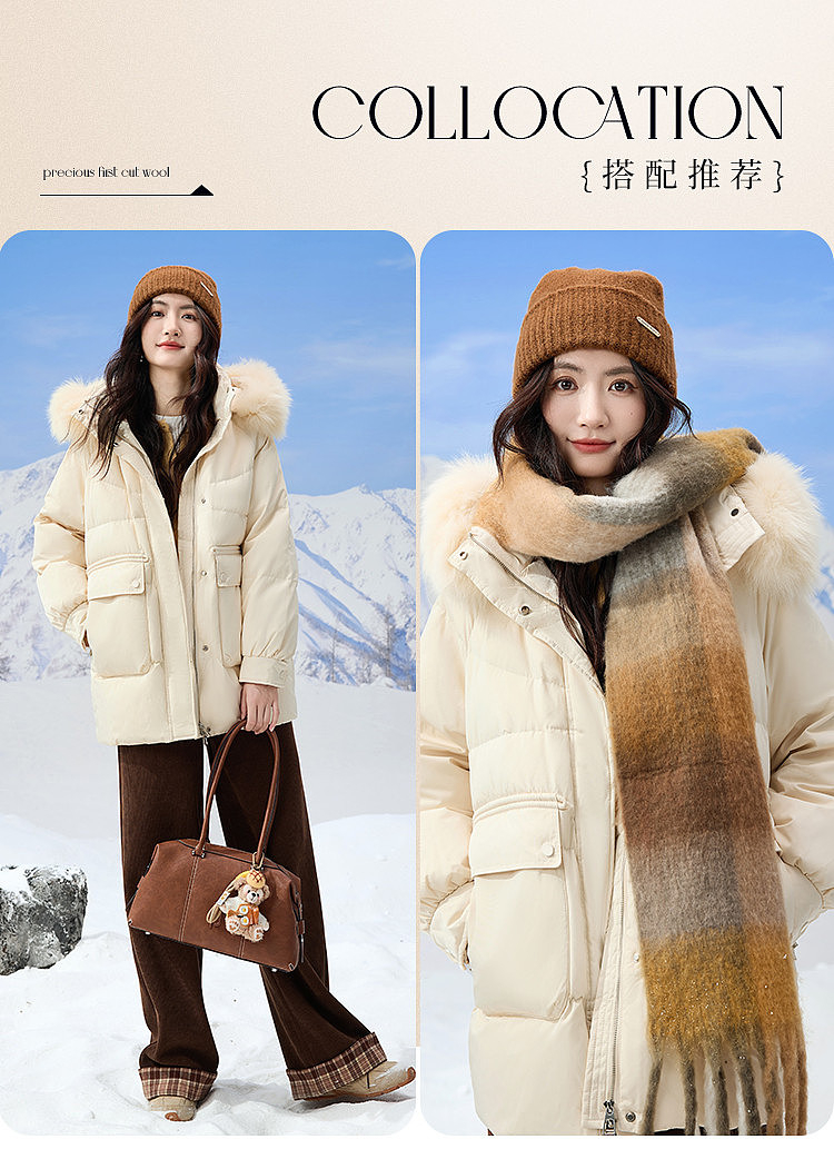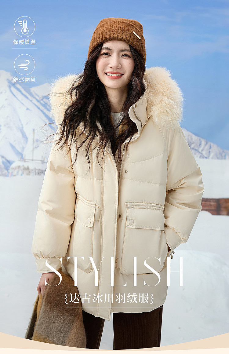 【12/10新品3.8折】熙世界真狐狸毛领连帽羽绒服2025冬装新款女时尚90白鸭绒保暖外套