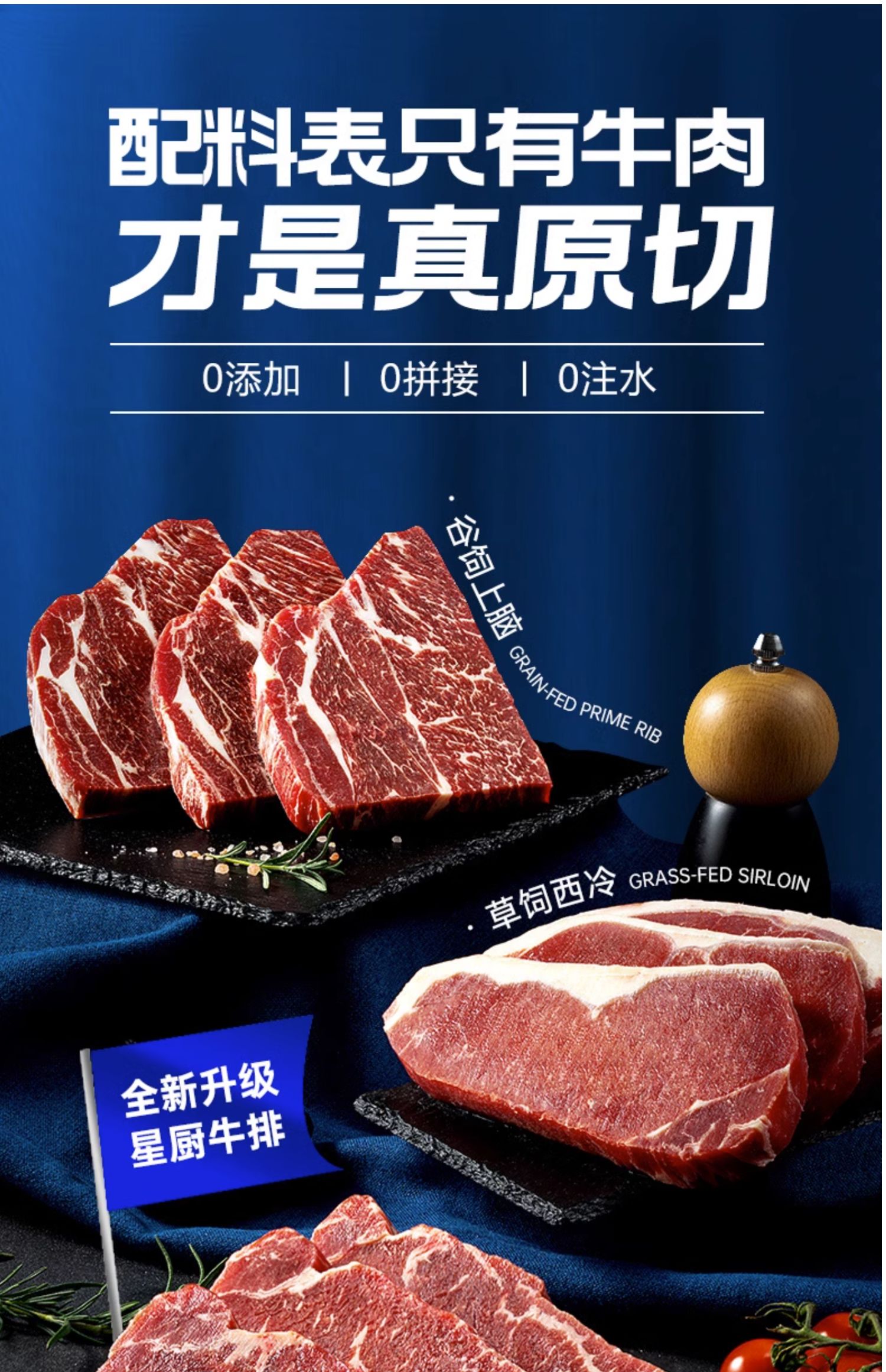 小牛凯西原切西冷/眼肉500g/袋 (3-5片)送黑椒酱20g*5