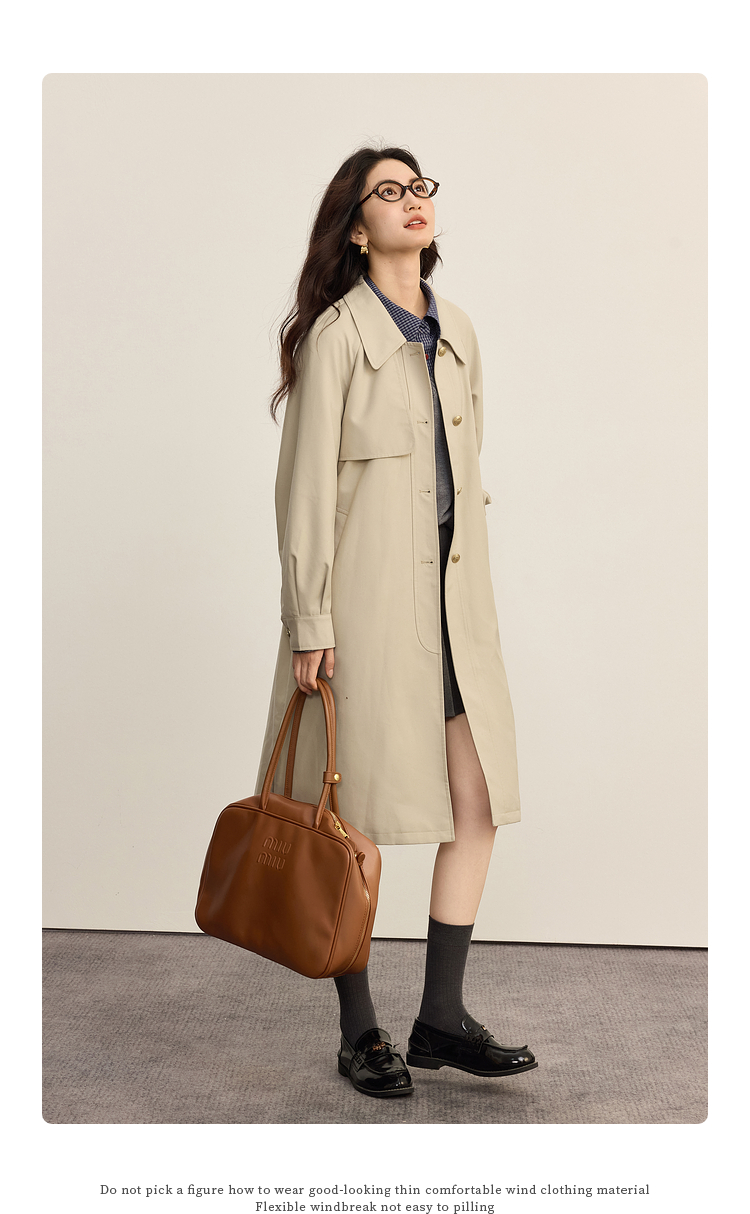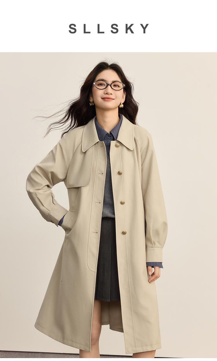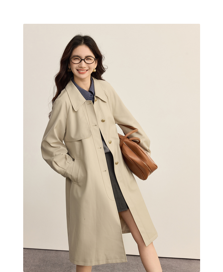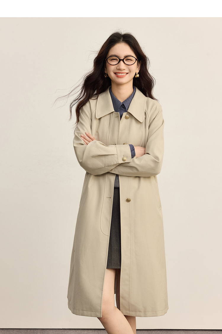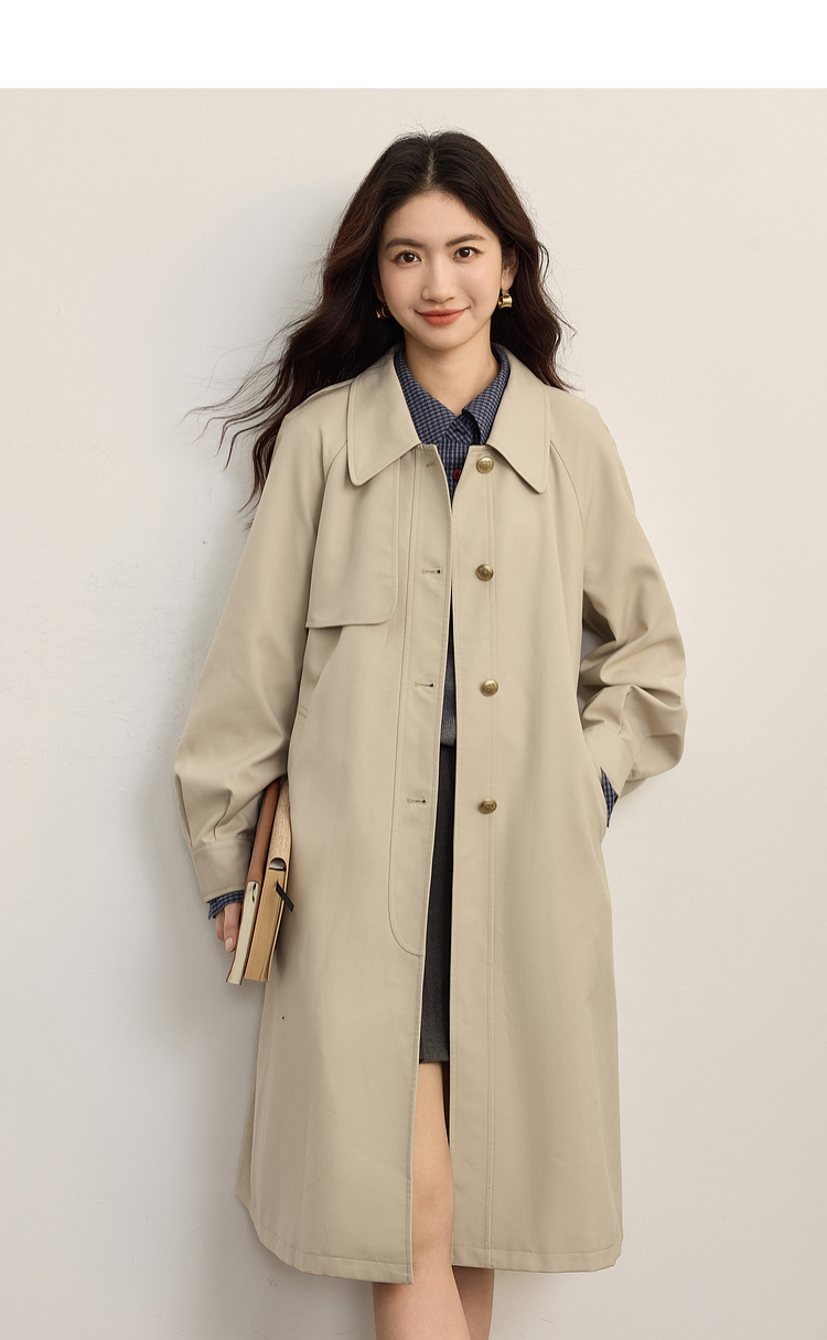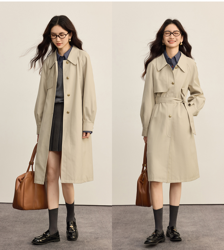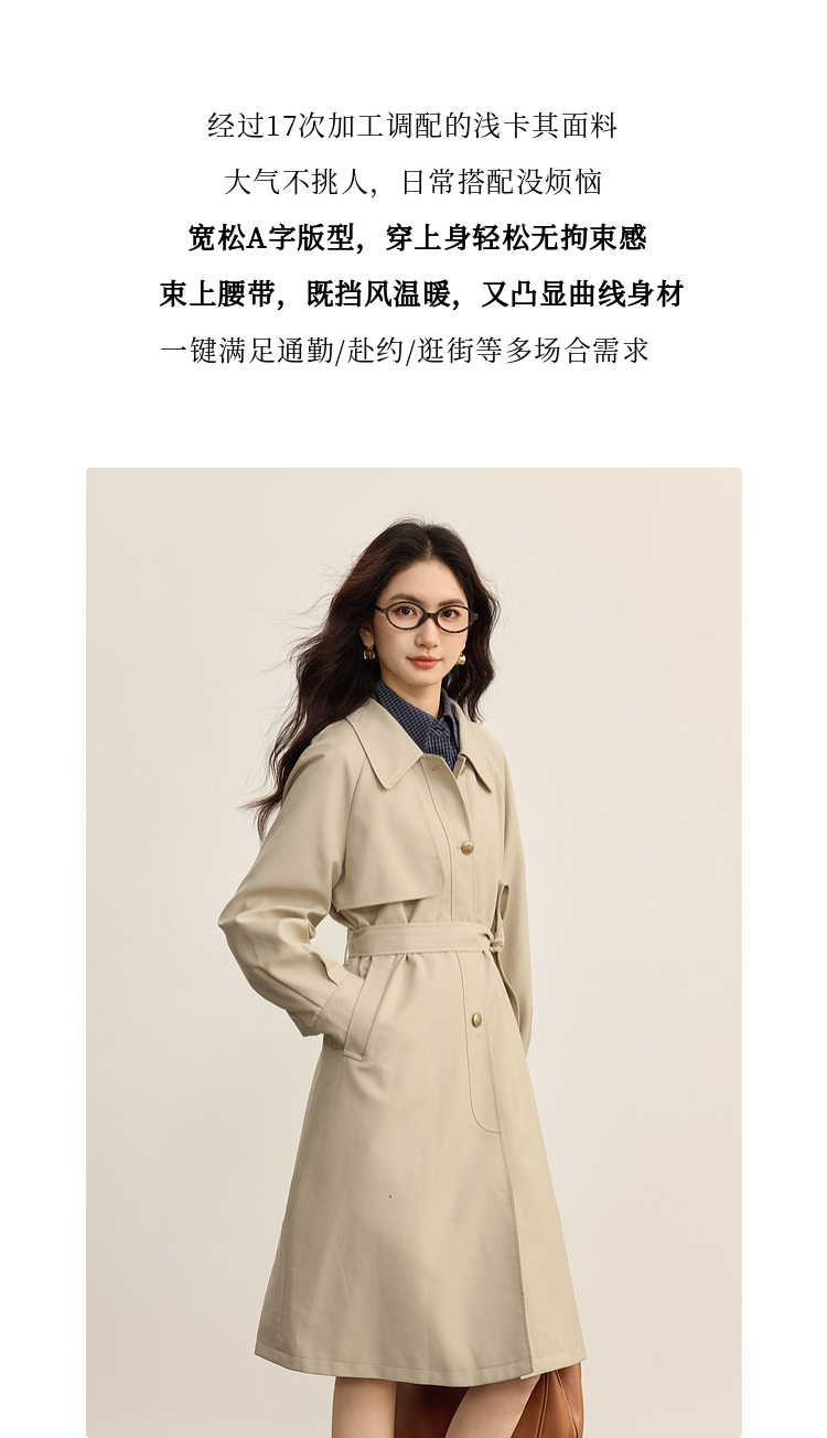【08/19新品】熙世界风衣外套女2025秋季新款高级感气质宽松休闲中长款收腰大衣