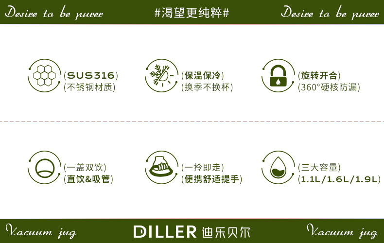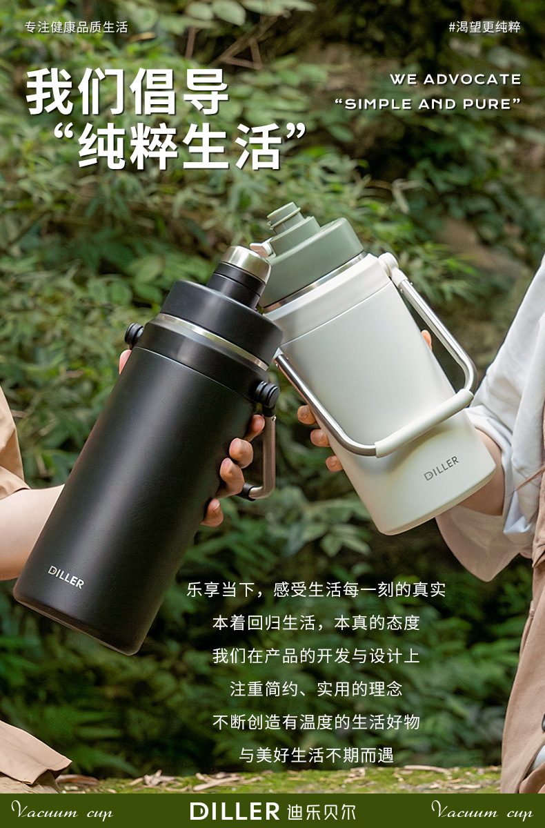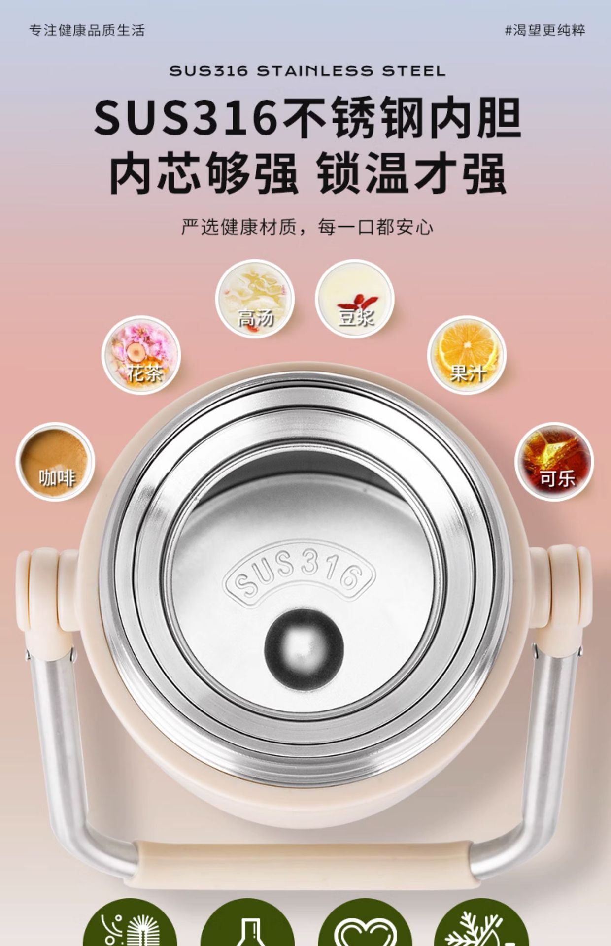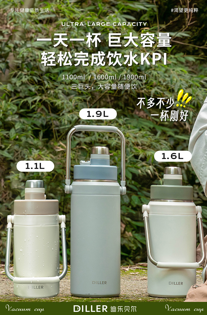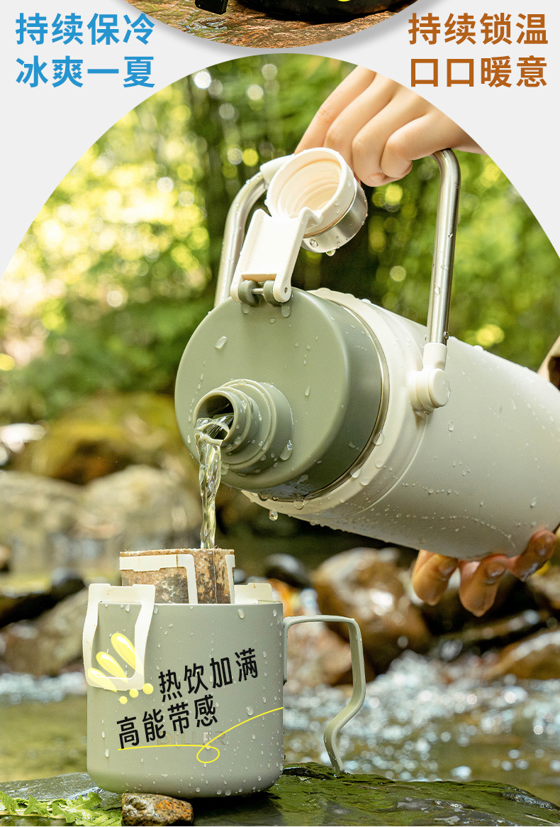 「1900ML大容量!三色可选」保温大容量颜值316不锈钢一杯三饮户外便携大容量运动餐饮用具