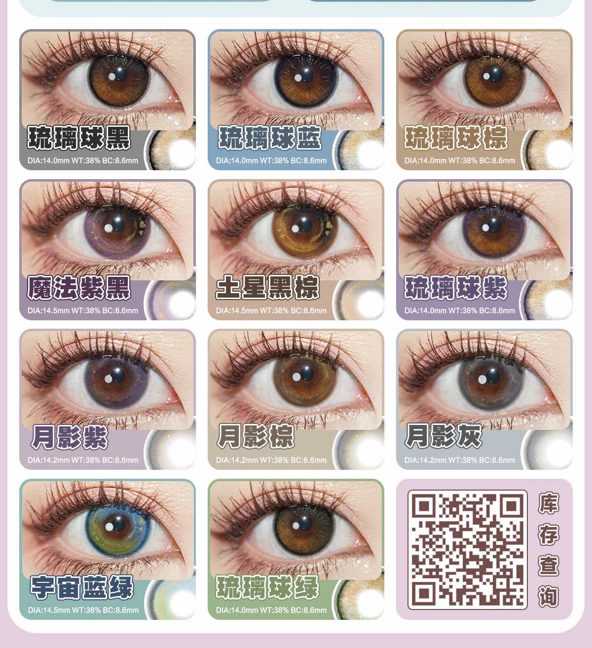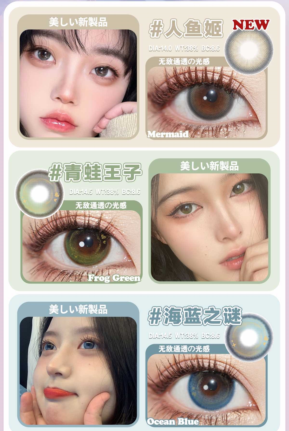 镜片材质: 含硅水凝胶年抛