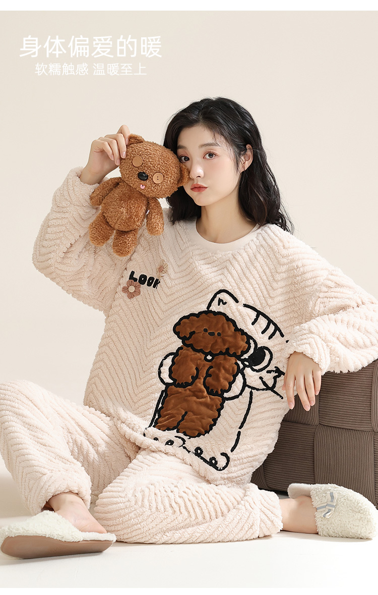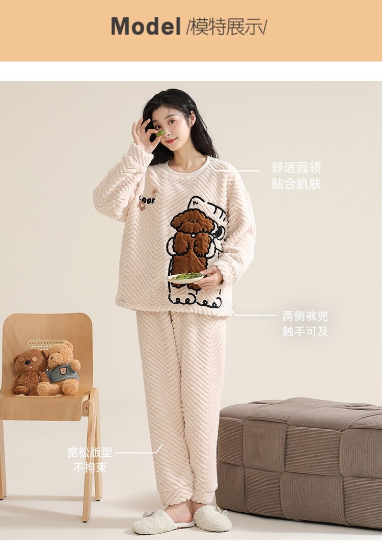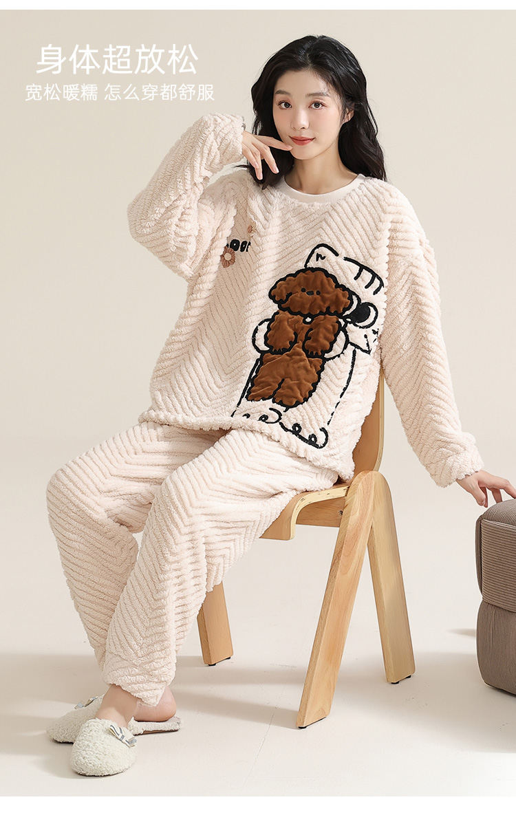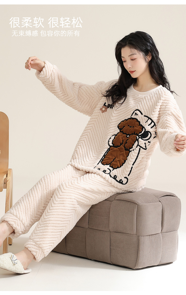 【冬季新品】洁丽雅正品珊瑚绒家居服可爱卡通保暖长袖长裤套装女