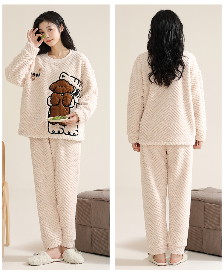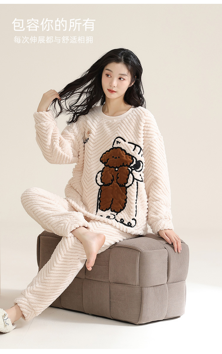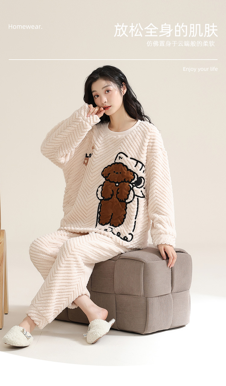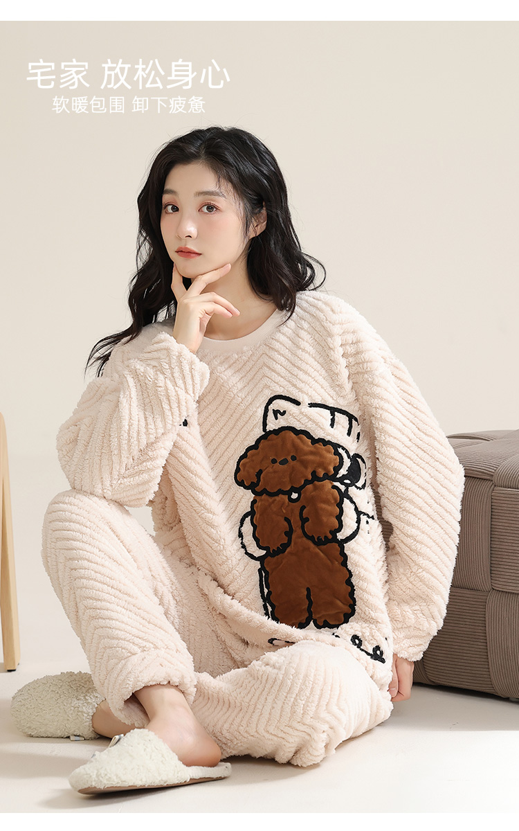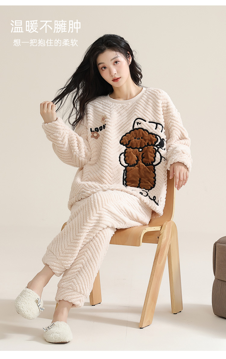 【冬季新品】洁丽雅正品珊瑚绒家居服可爱卡通保暖长袖长裤套装女