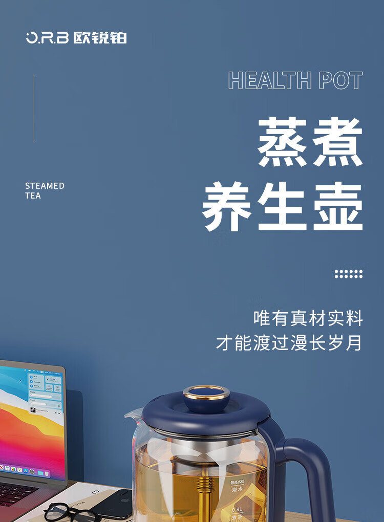 【分仓直发包邮】欧锐铂花漾蒸茶养生壶ORB-532