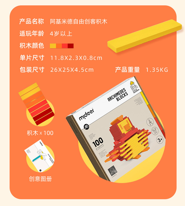 mideer弥鹿拼装积木 阿基米德建筑男女孩3岁幼儿益智儿童玩具礼物