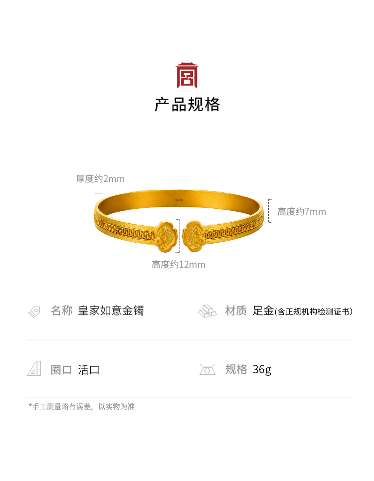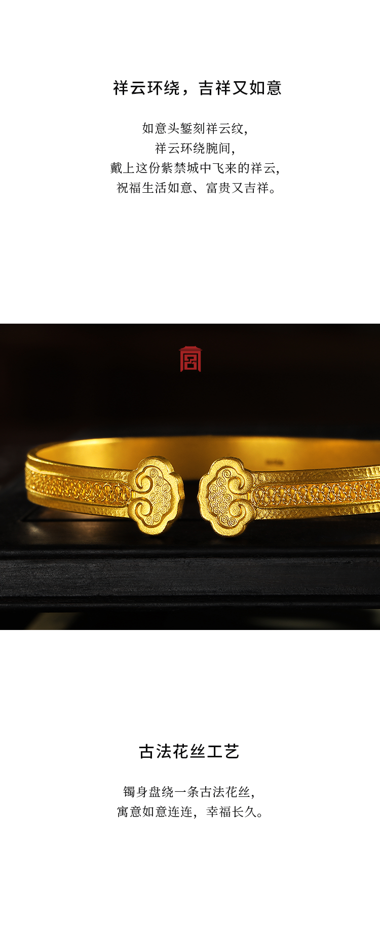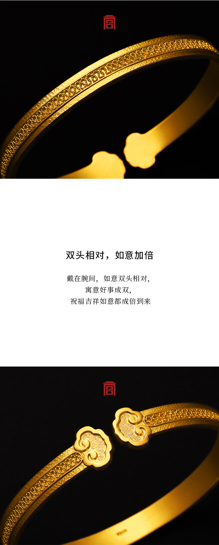 宫匠造办 皇家如意金镯黄金手镯