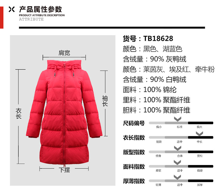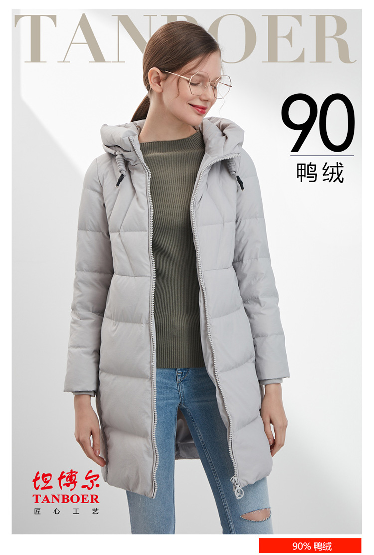 TB18628 坦博尔羽绒服女中长款时尚连帽2018秋冬新品保暖羽绒外套