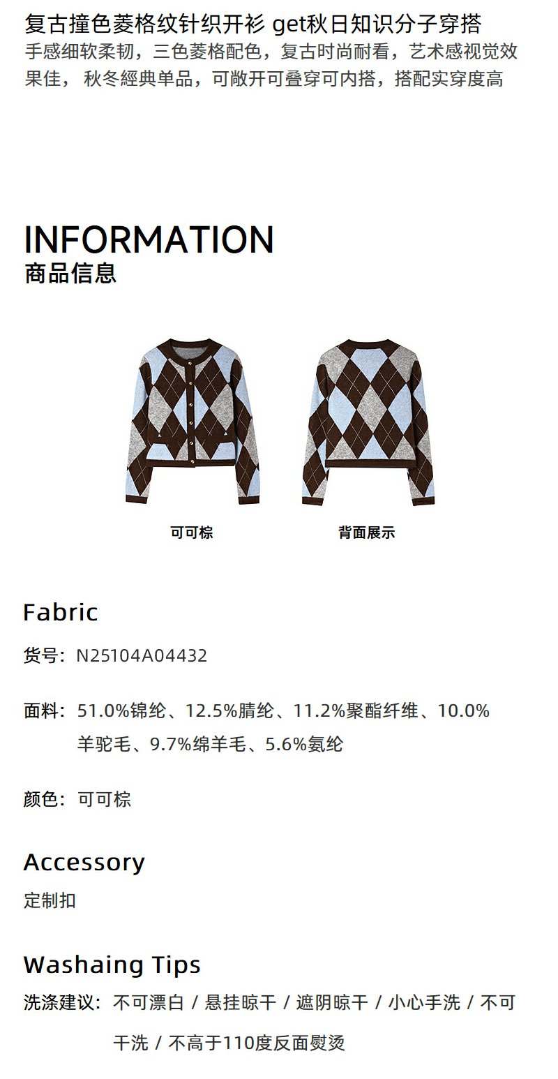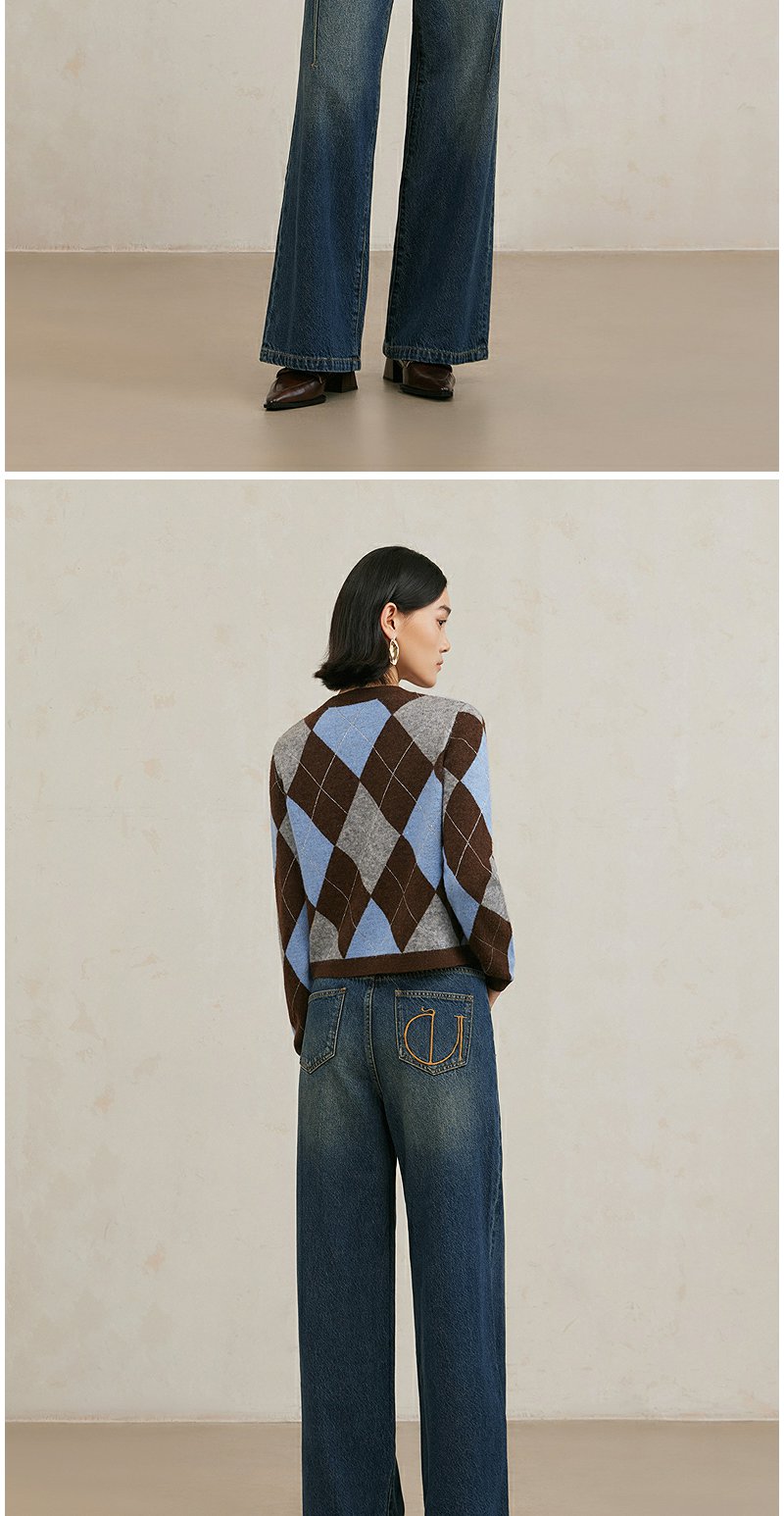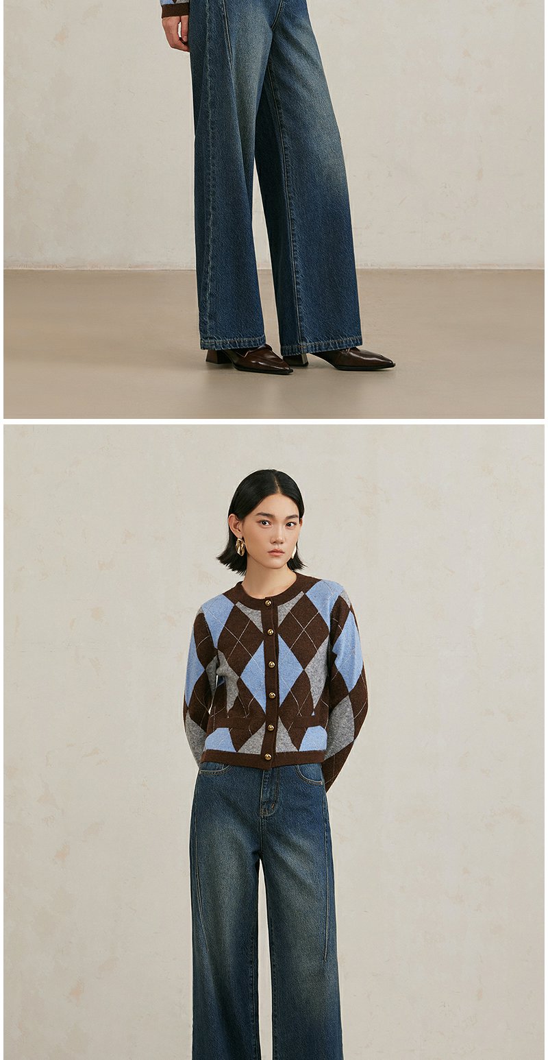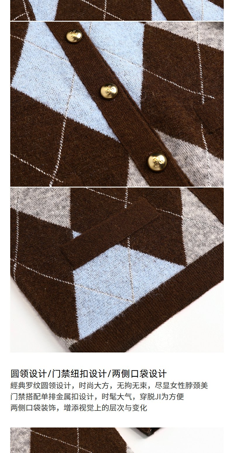 NEELLY纳俪商场同款冬季新款复古菱格圆领针织开衫女羊毛混纺毛衣N25104A04432