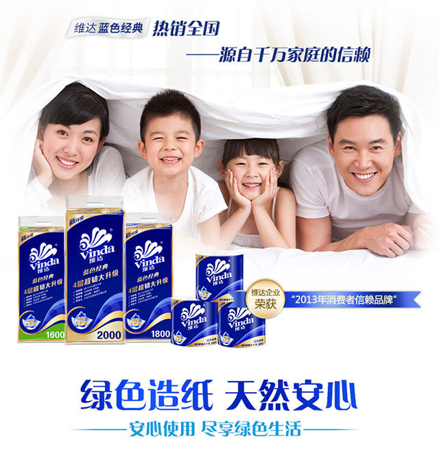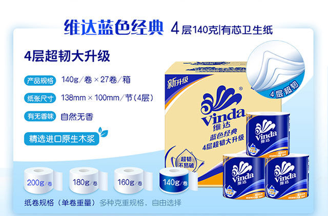 维达卷纸蓝色经典27卷140g卫生纸巾卷筒纸厕所纸家用整箱