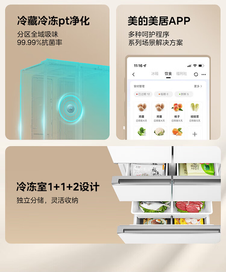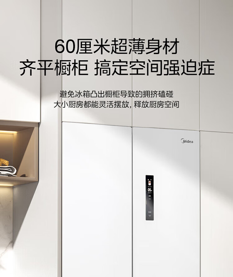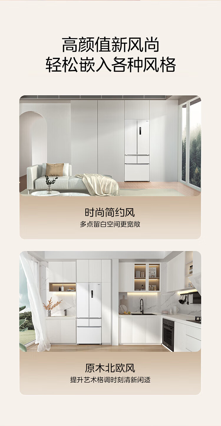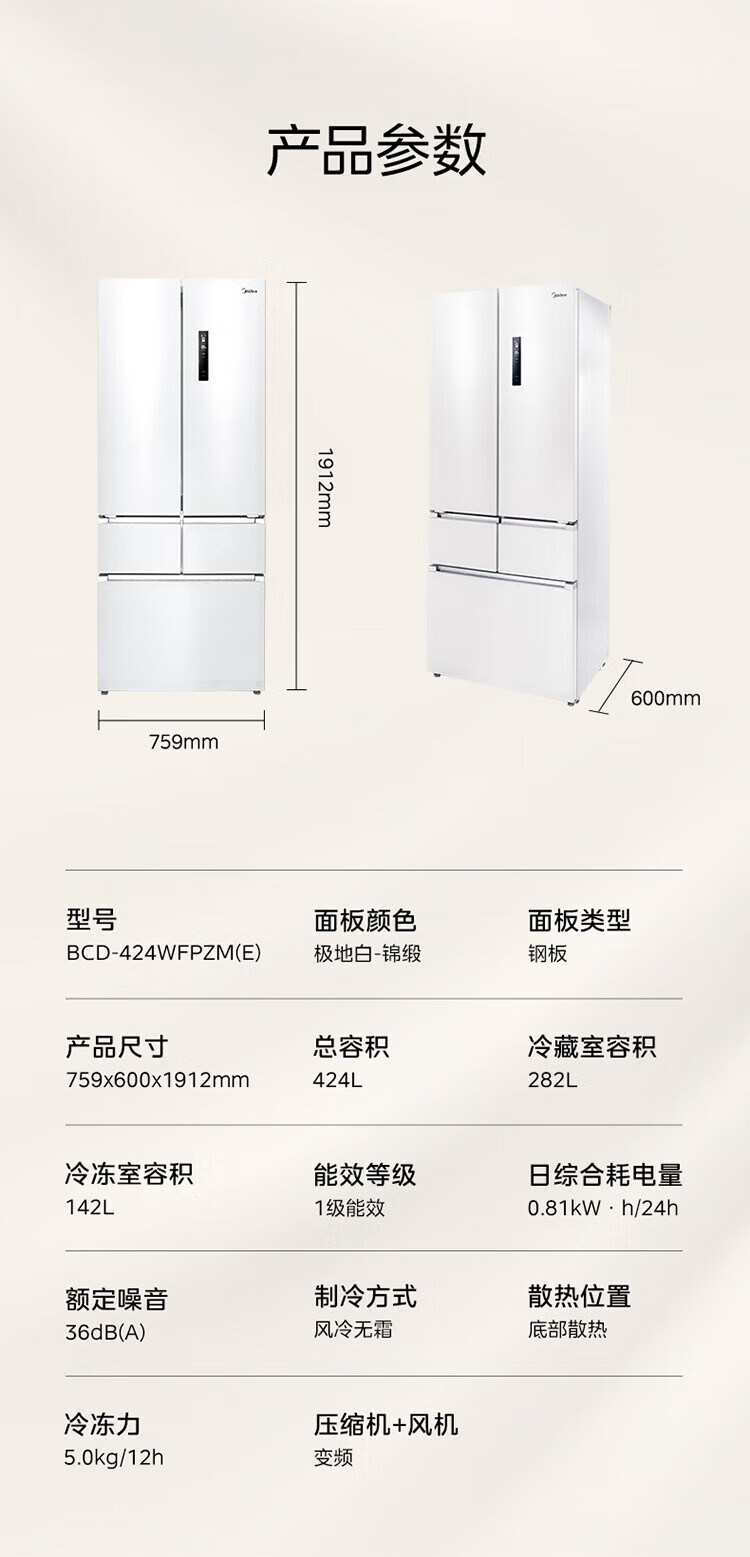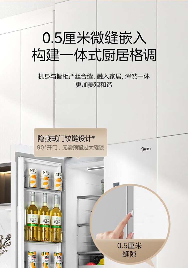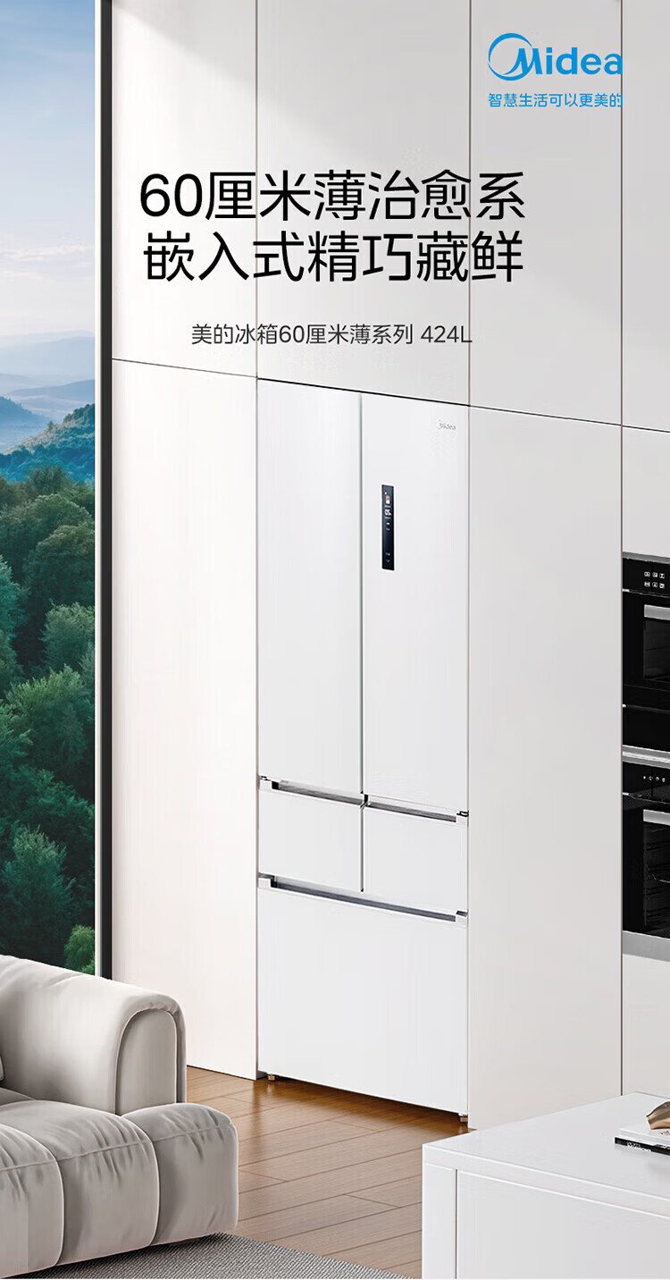 美的 BCD-424WFPZM(E) 60cm厘米薄系列424升法式五门多门嵌入大容量家用智能电冰箱无霜一级变频冰箱
