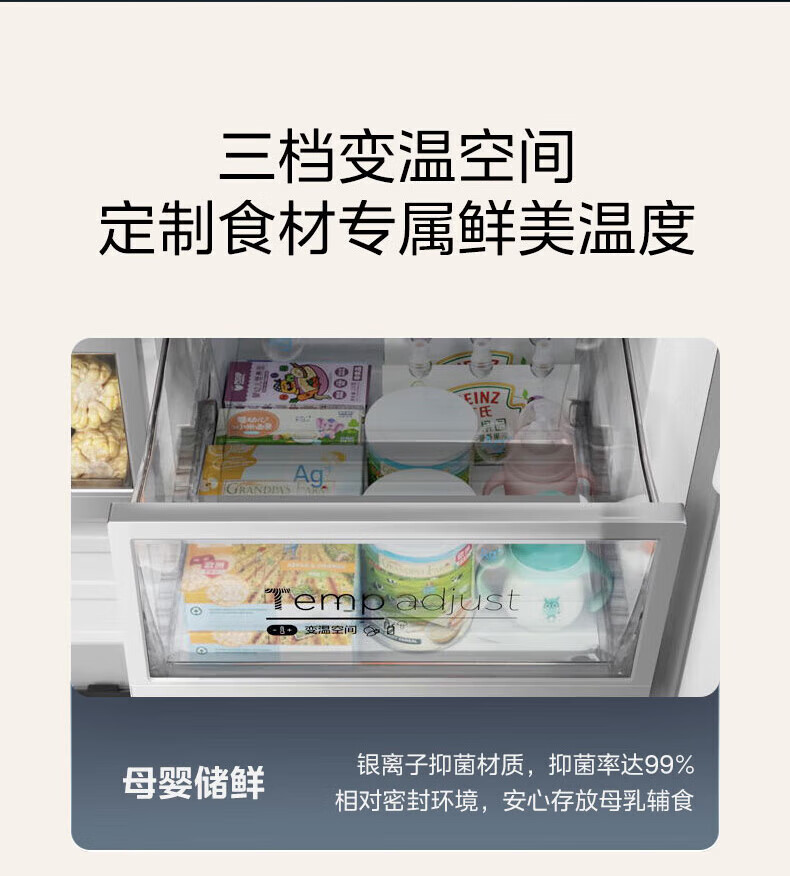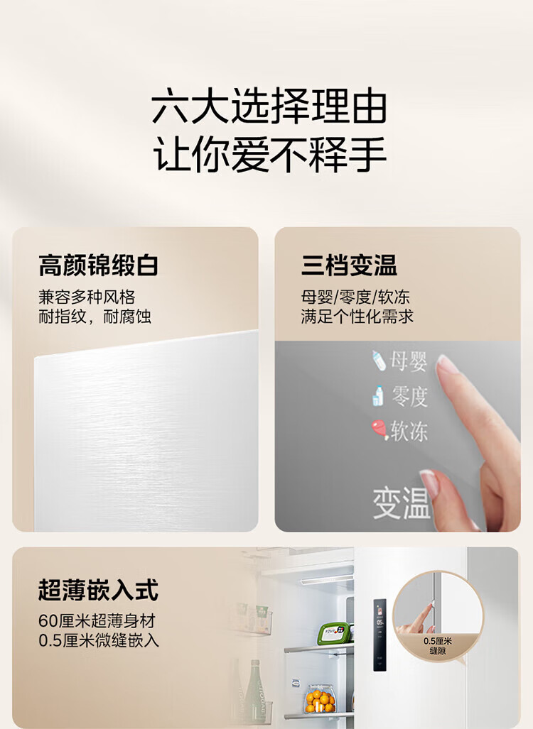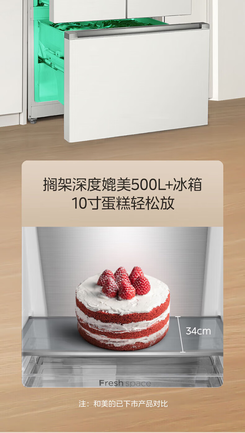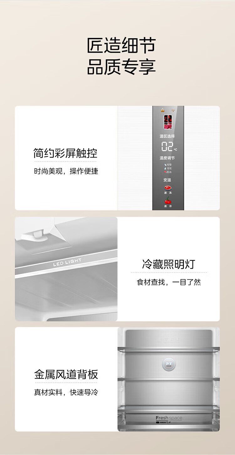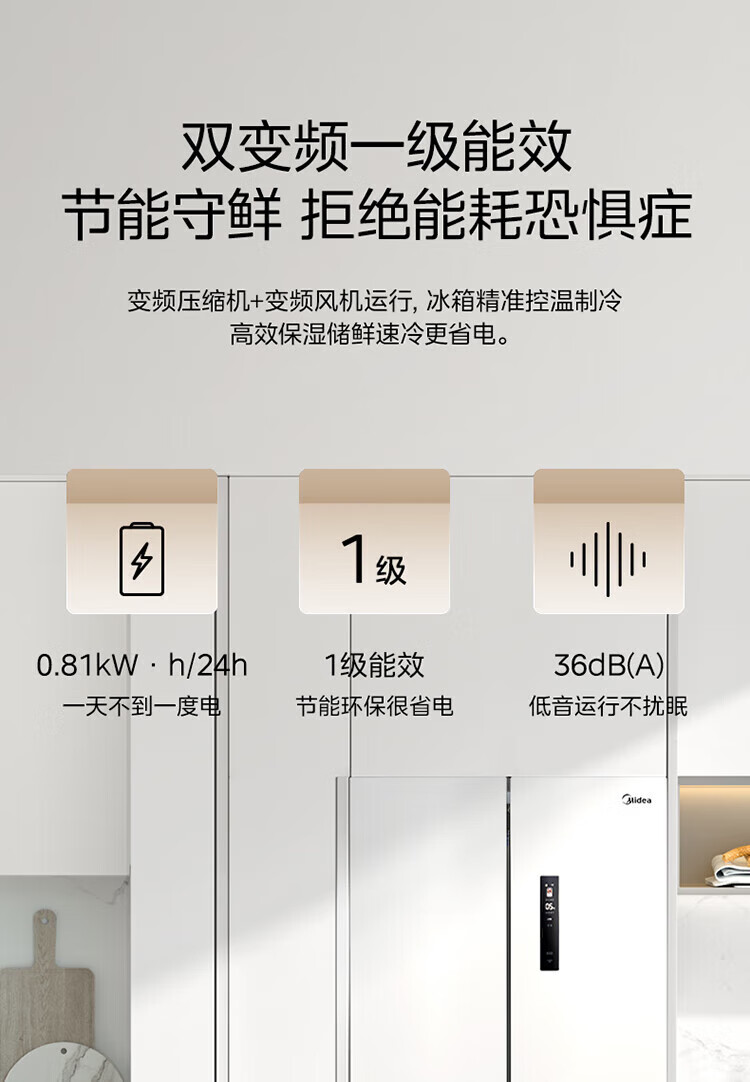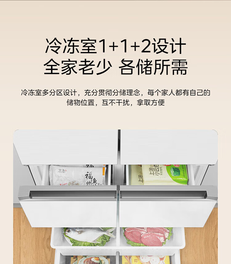美的 BCD-424WFPZM(E) 60cm厘米薄系列424升法式五门多门嵌入大容量家用智能电冰箱无霜一级变频冰箱