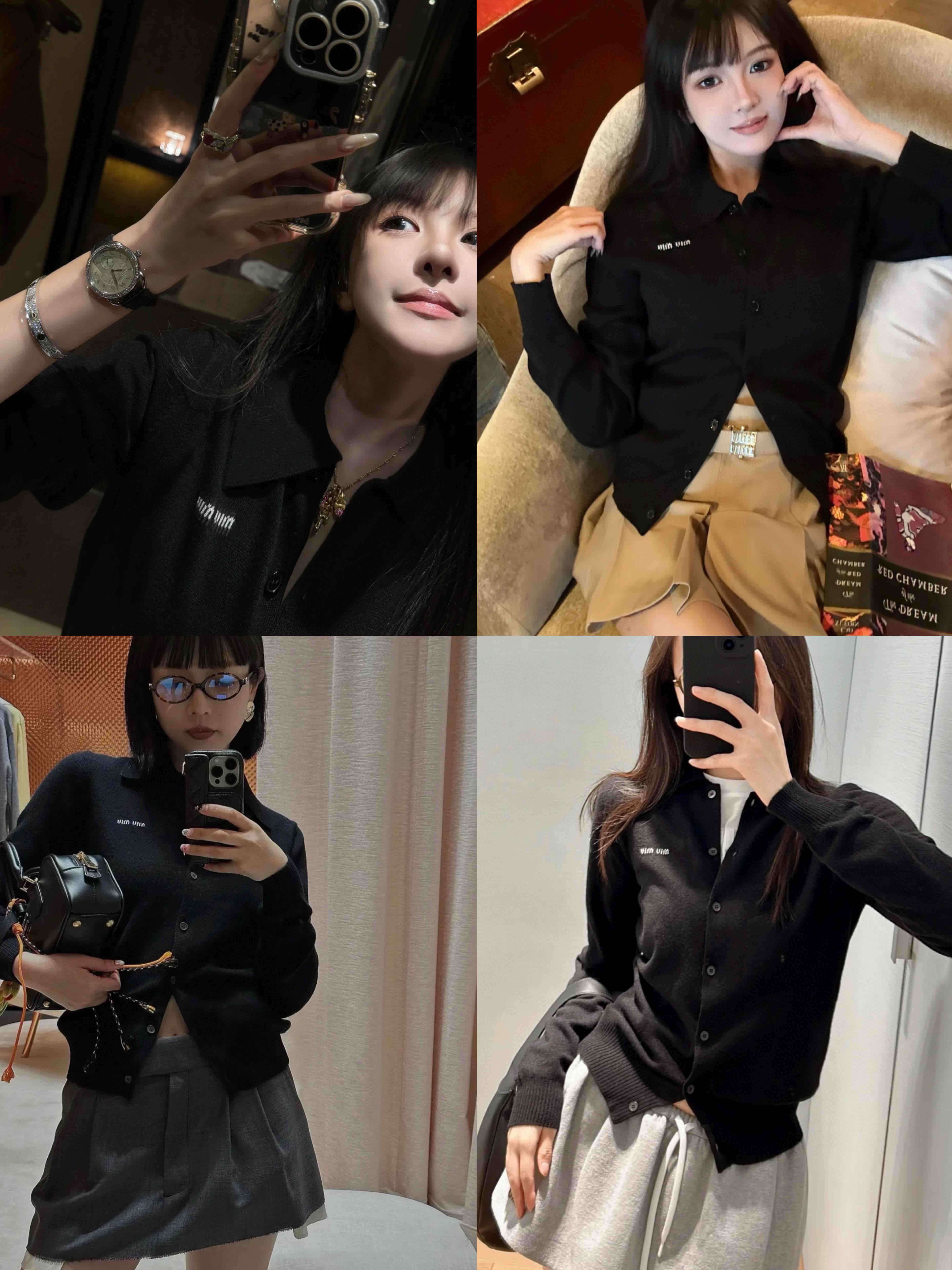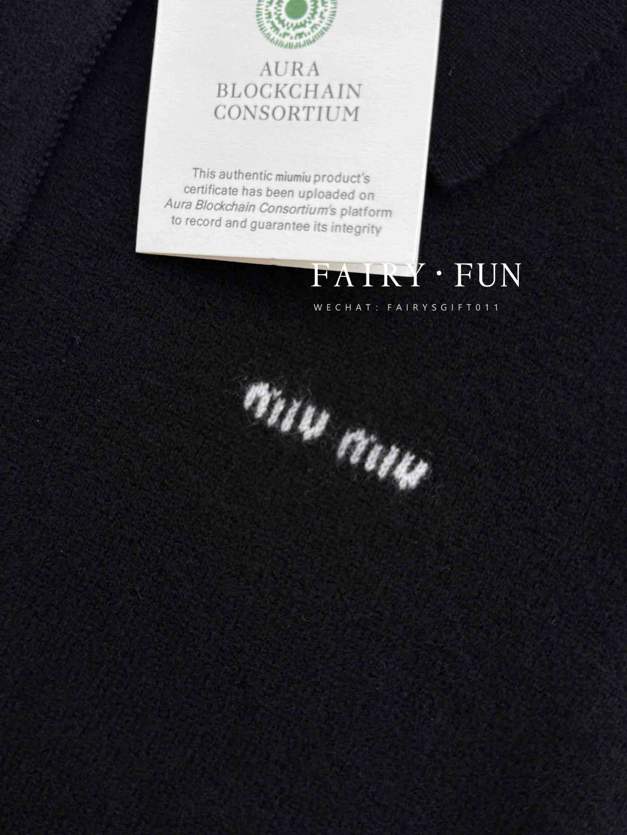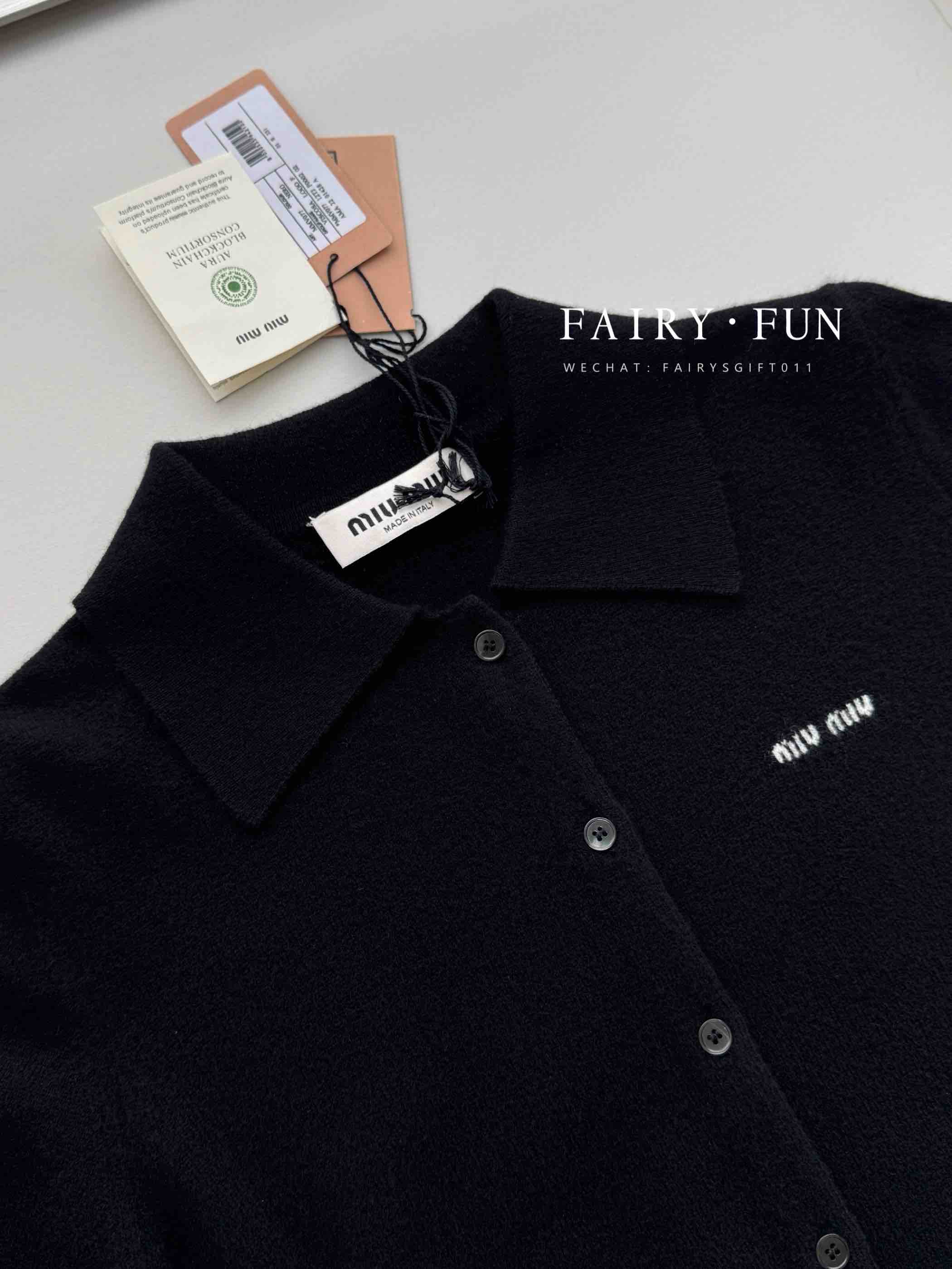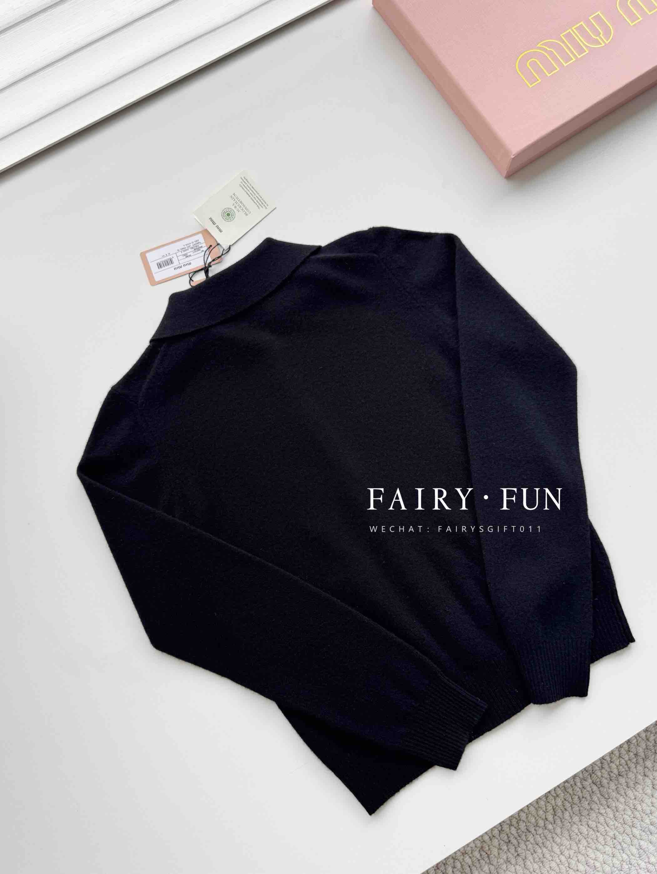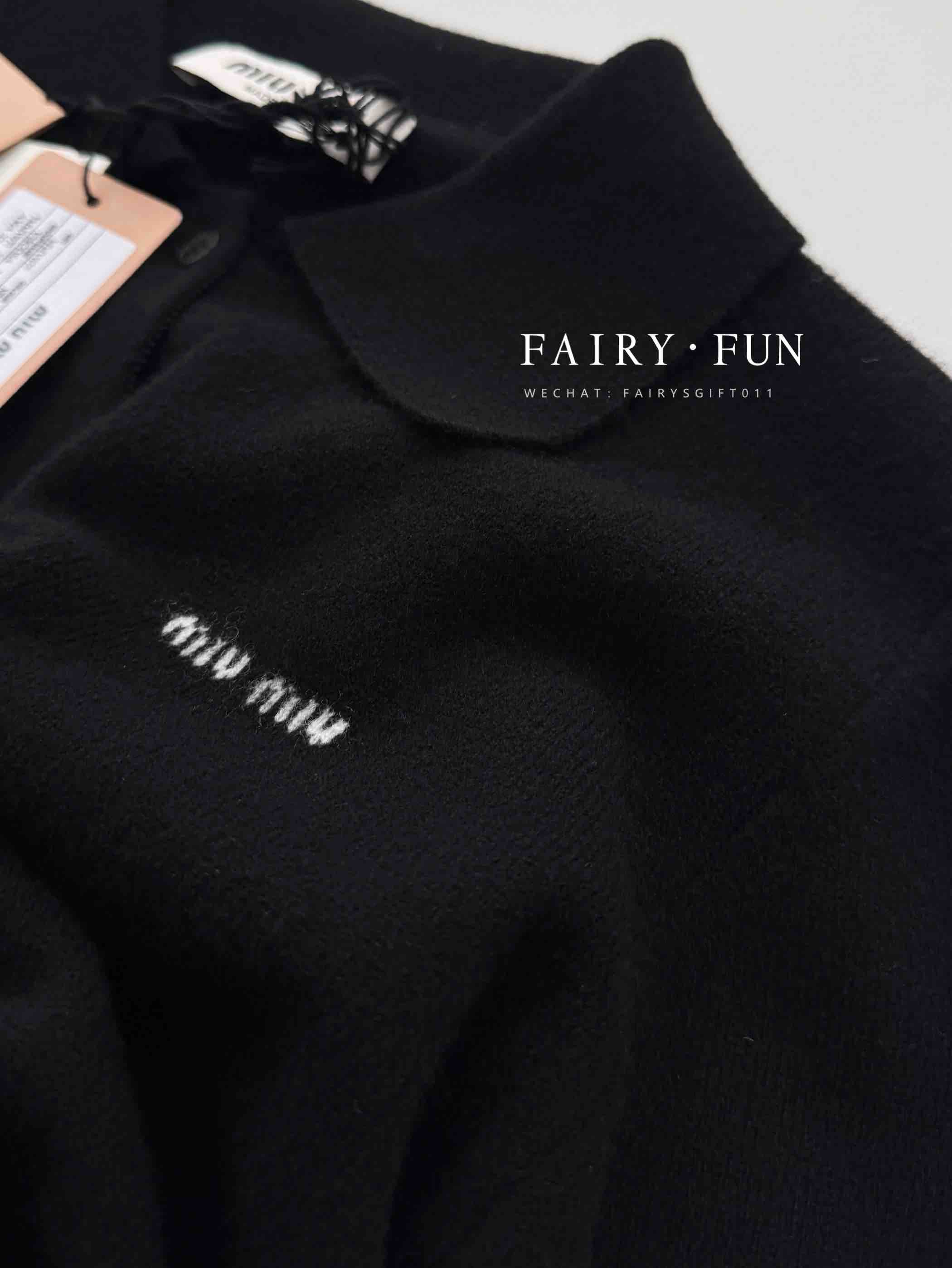 MIU-S 小logo翻领羊绒开衫.