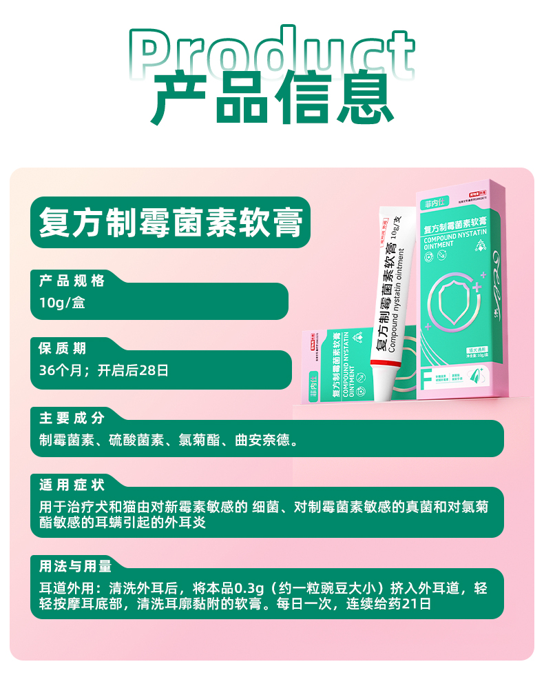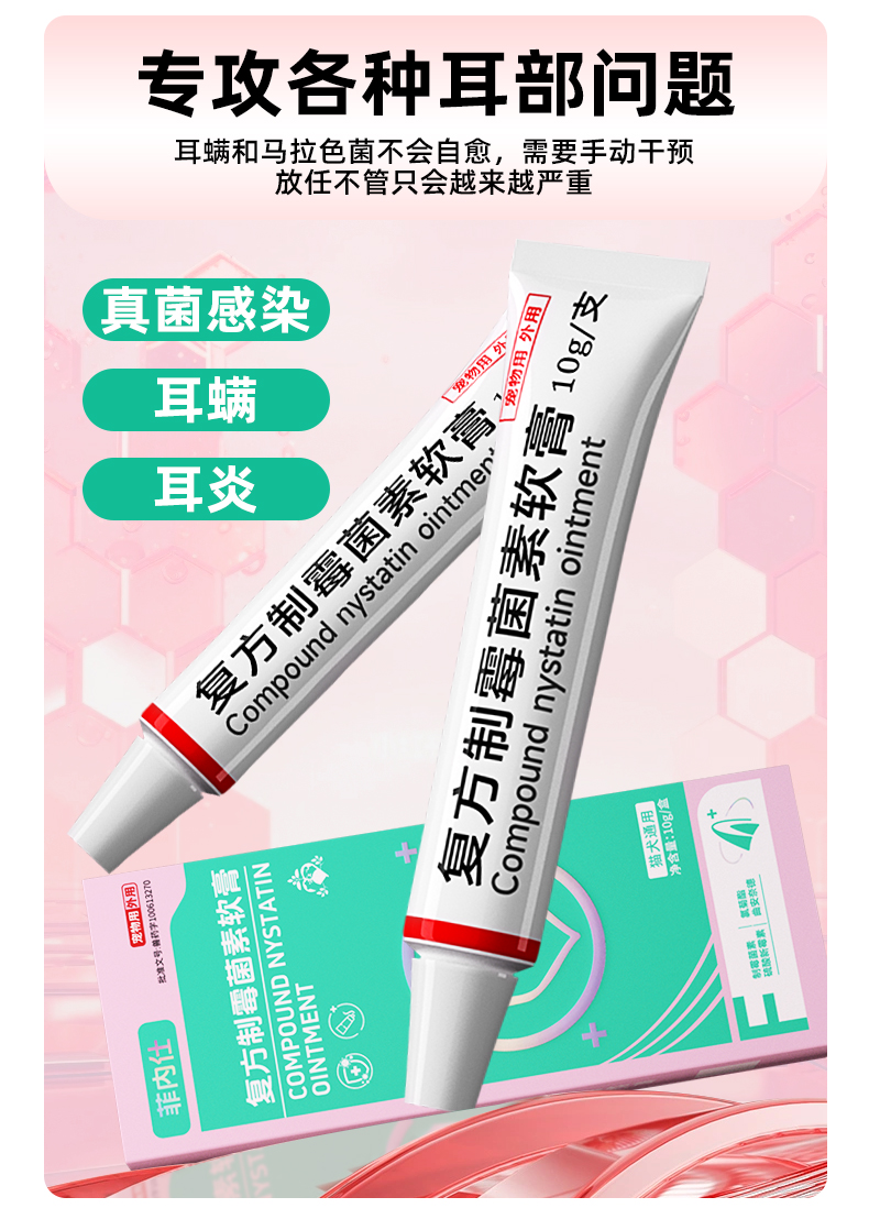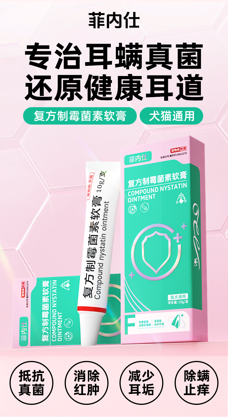 【10送2】买1送1 送洁耳液 搭配使用效果更佳】菲内仕制霉菌素软膏10g 真菌耳螨 犬猫通用 线下专供