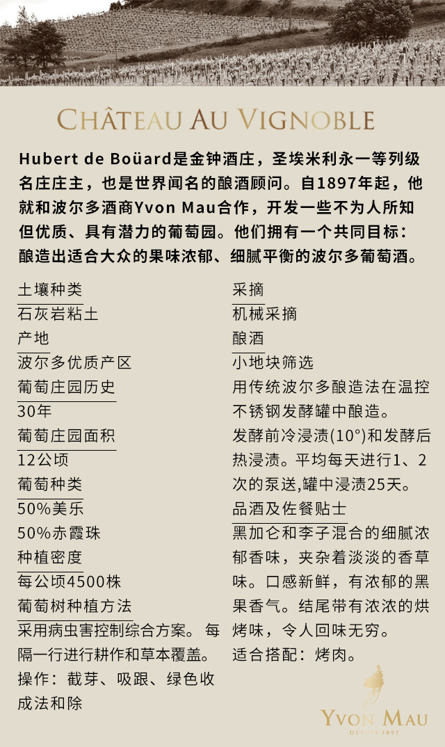 维尼柏城堡红葡萄酒 Château Au Vignoble Hubert de Bouard 750ml
