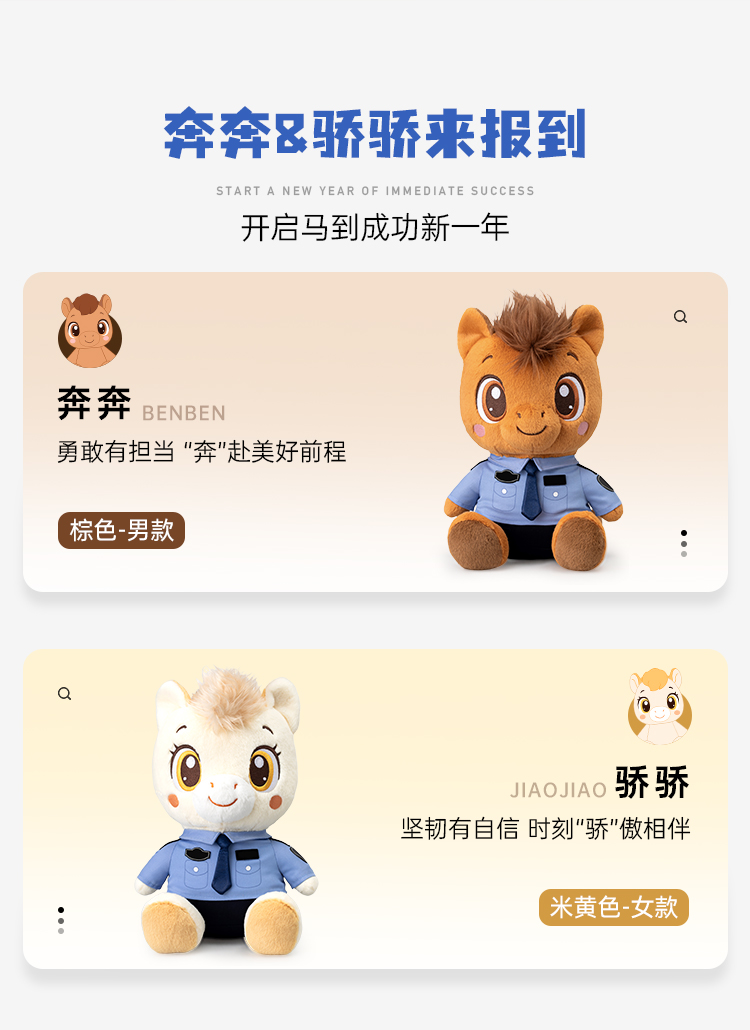 【马J官奔奔&骄骄】创意马年吉祥物可定制生肖马公仔玩具儿童毛绒玩偶布娃娃送礼礼品礼物
