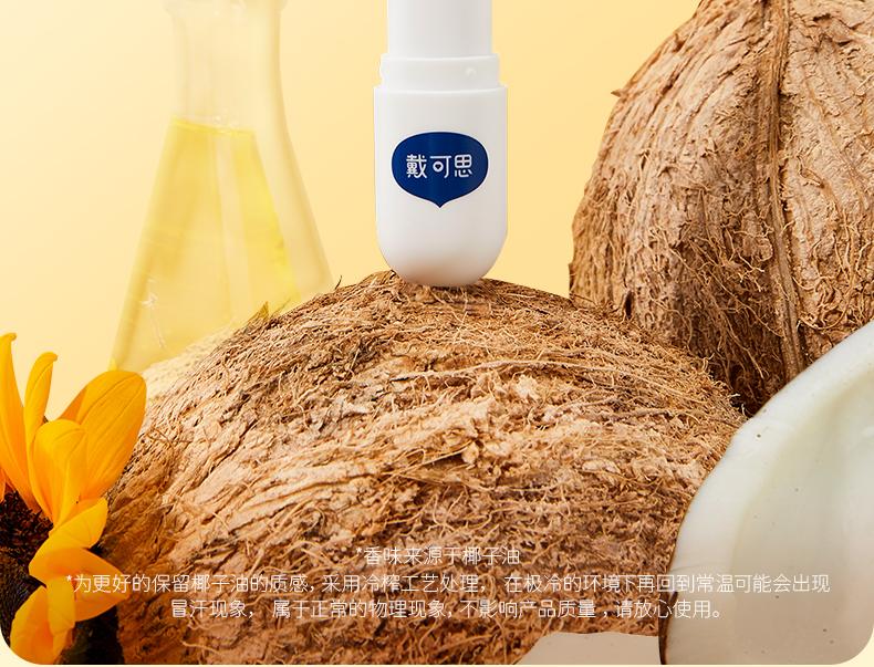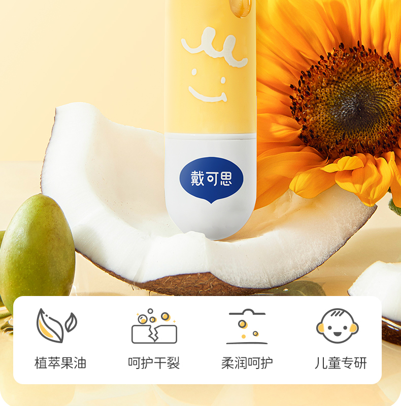 【椰香唇膏推荐】戴可思润护小干唇 全绿配方不怕舔 3岁+适用