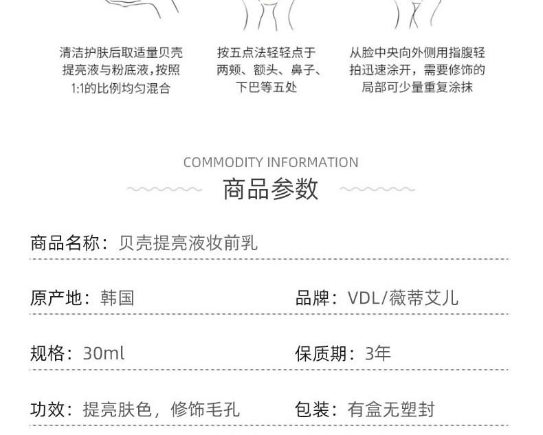 【YZ】VDL/薇蒂艾儿VDL贝壳提亮液妆乳隐形毛孔妆前打底隔离