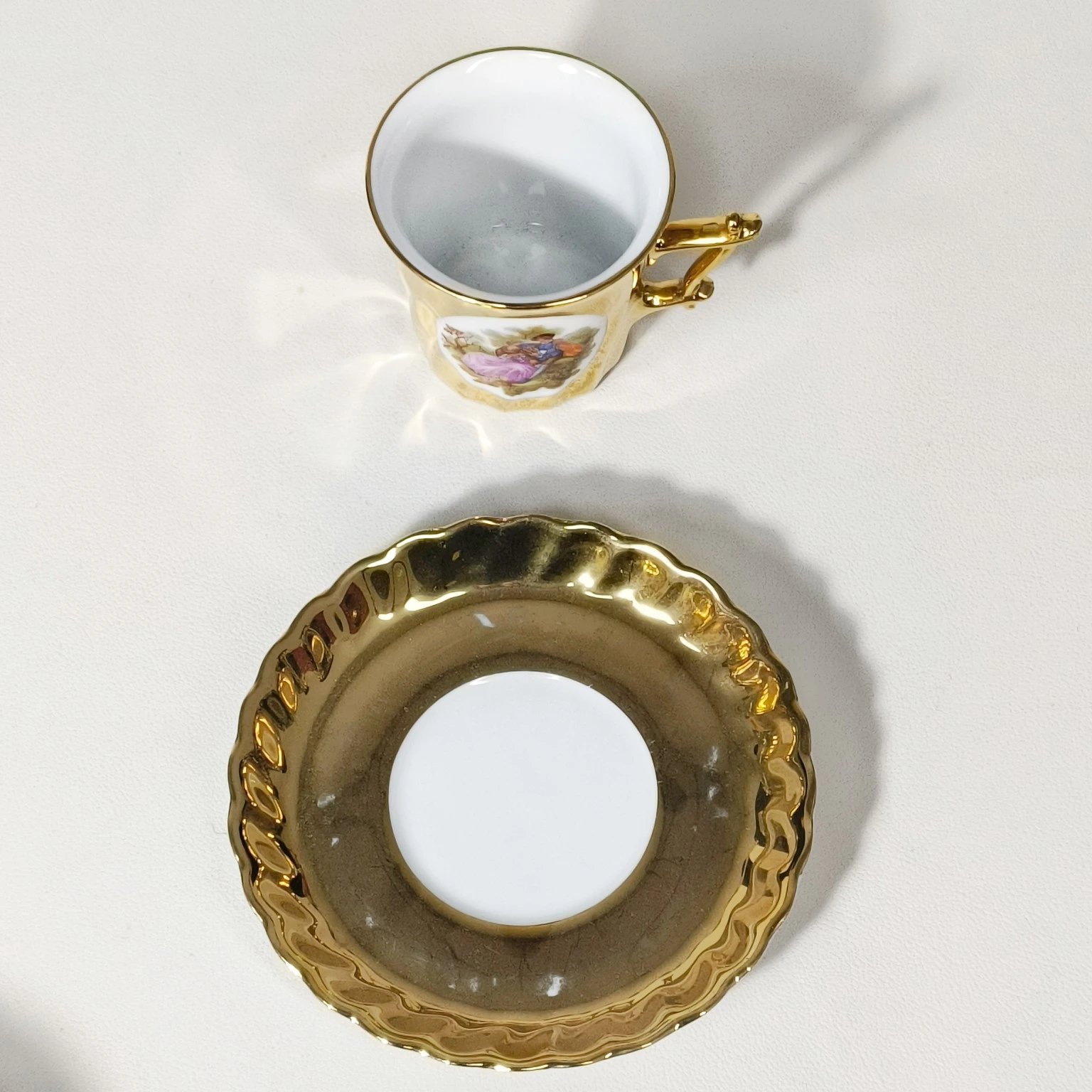 敞口摩卡口径6cm,高5cm,碟子直径11cm,有 对坐款 与 情歌款 各一套,单套128出。