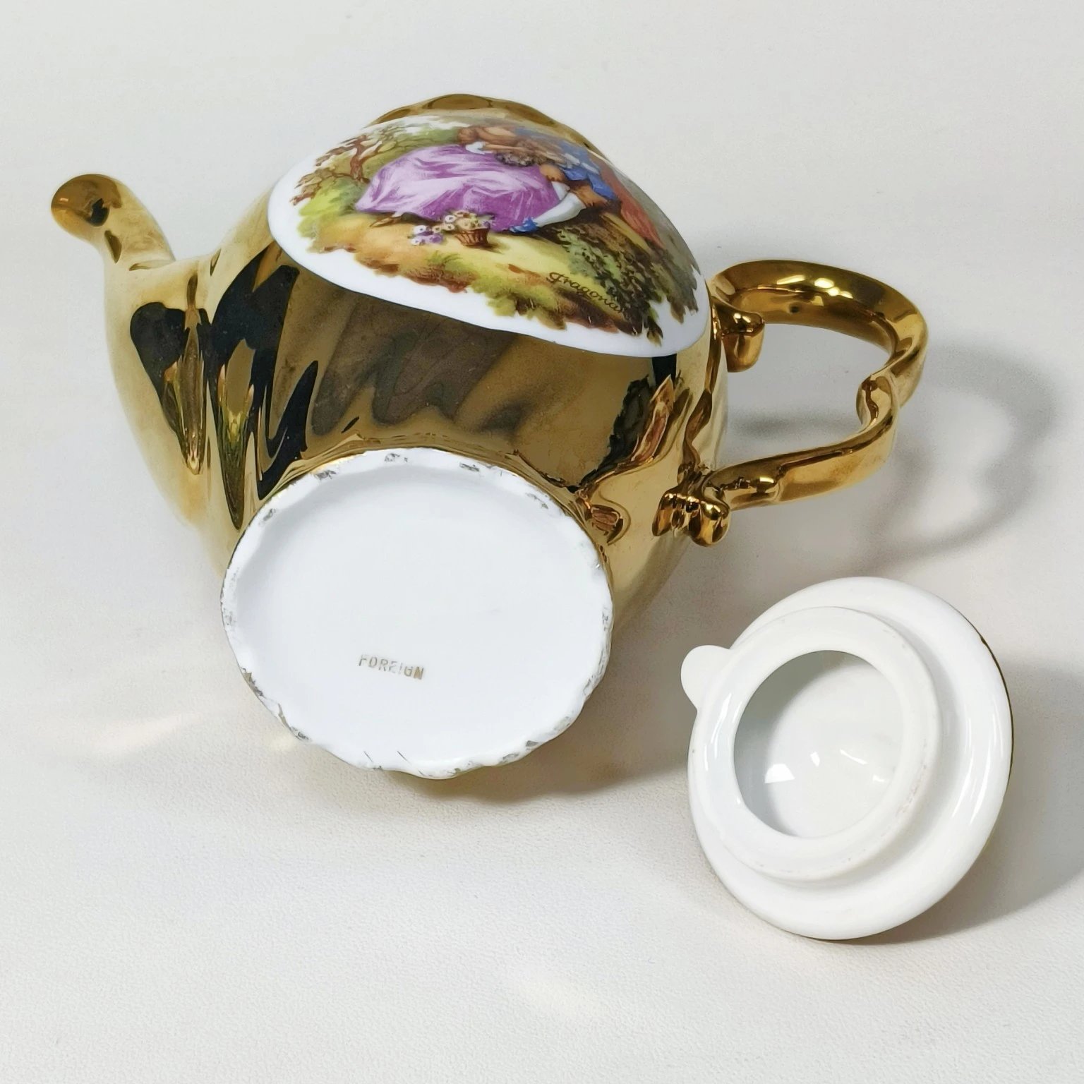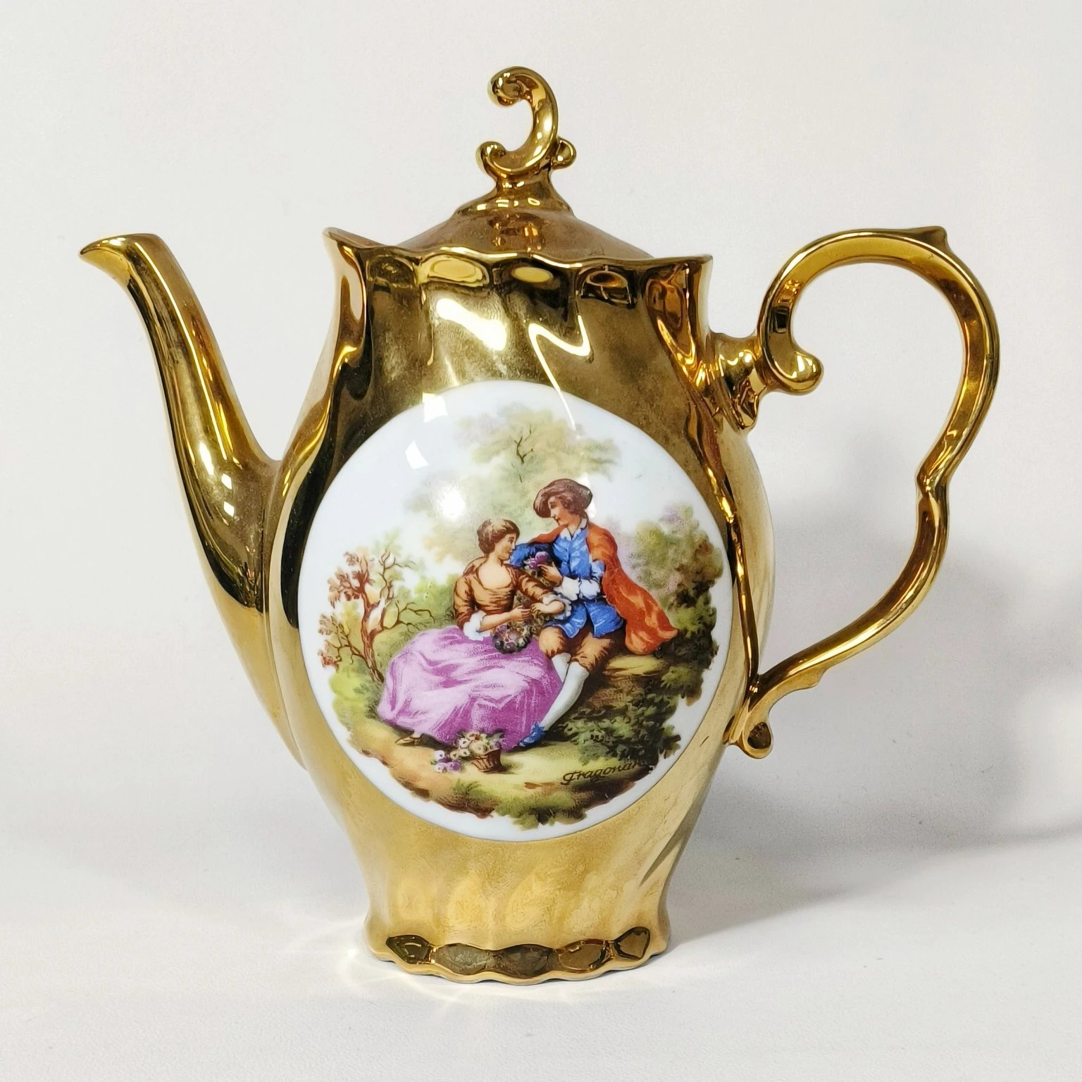 法国利摩日经典爱情故事金壶下午茶套组,宛如誓言恒久不变的黄金搭配才子佳人法式浪漫,充满诗意与华丽的复古式浮雕设计像是一本镀金的小说封面,为我们揭开甜蜜的爱情篇章。