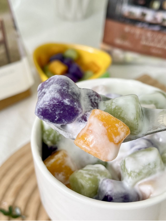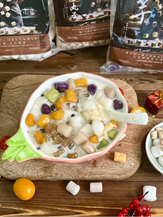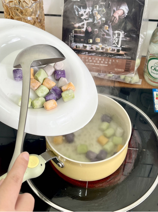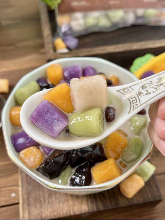 有了它🫶还可以动手体验DIY甜品的快乐👋 芋圆热水下锅,煮5-8分钟后捞出过凉水即可 汤底可搭牛奶、椰奶、酸奶、豆花、酒酿等等 还可以配上水果、蜜豆、椰冻、花生碎… 芋圆烧仙草、芋圆水果捞、酒酿芋圆这还不是手到擒来? 哪还用去奶茶店甜品店🧋只有你想不到,没有它做不到!
