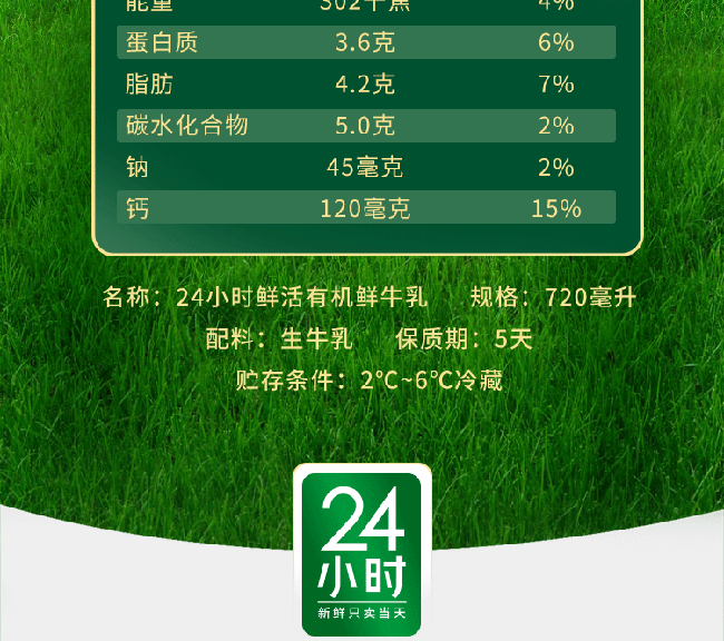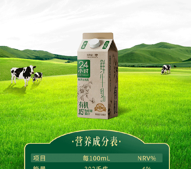 新希望24小时有机屋顶盒鲜牛乳鲜牛奶720ml/盒