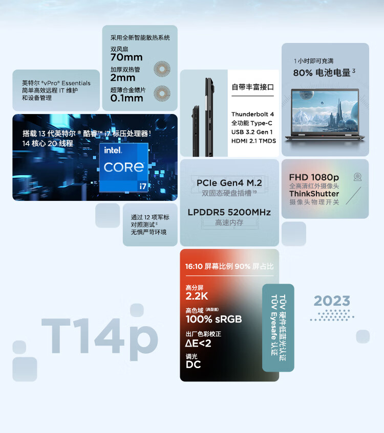 (国行)Thinkpad T14P 2023款 13代 14英寸高端商务本