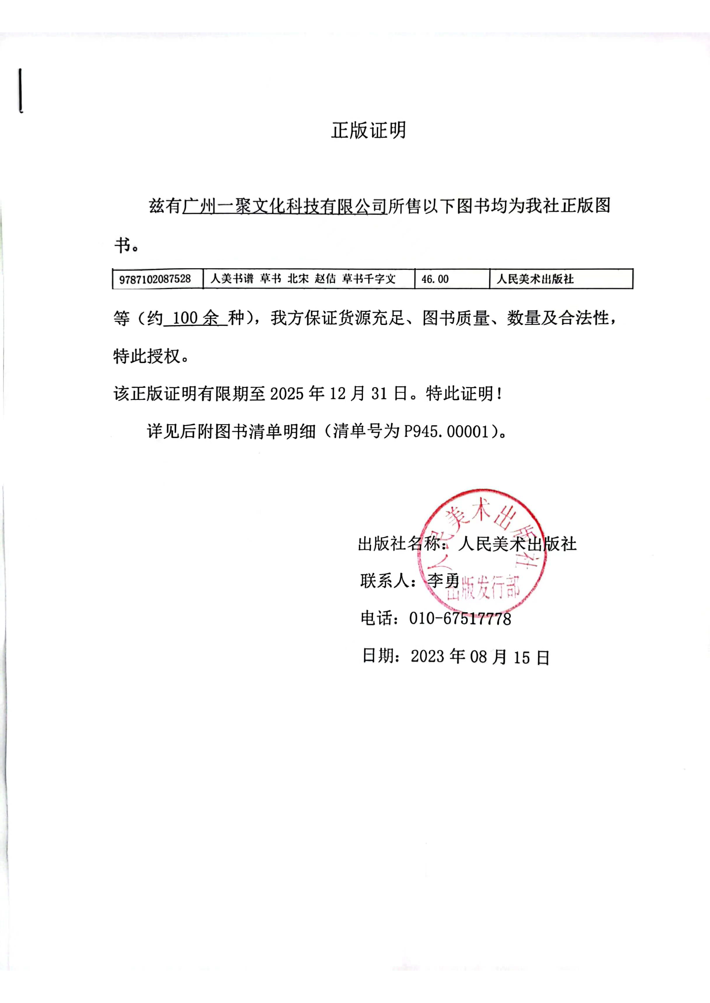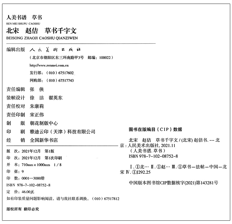 人美书谱 草书 北宋 赵佶 草书千字文【现货包邮】RM0050