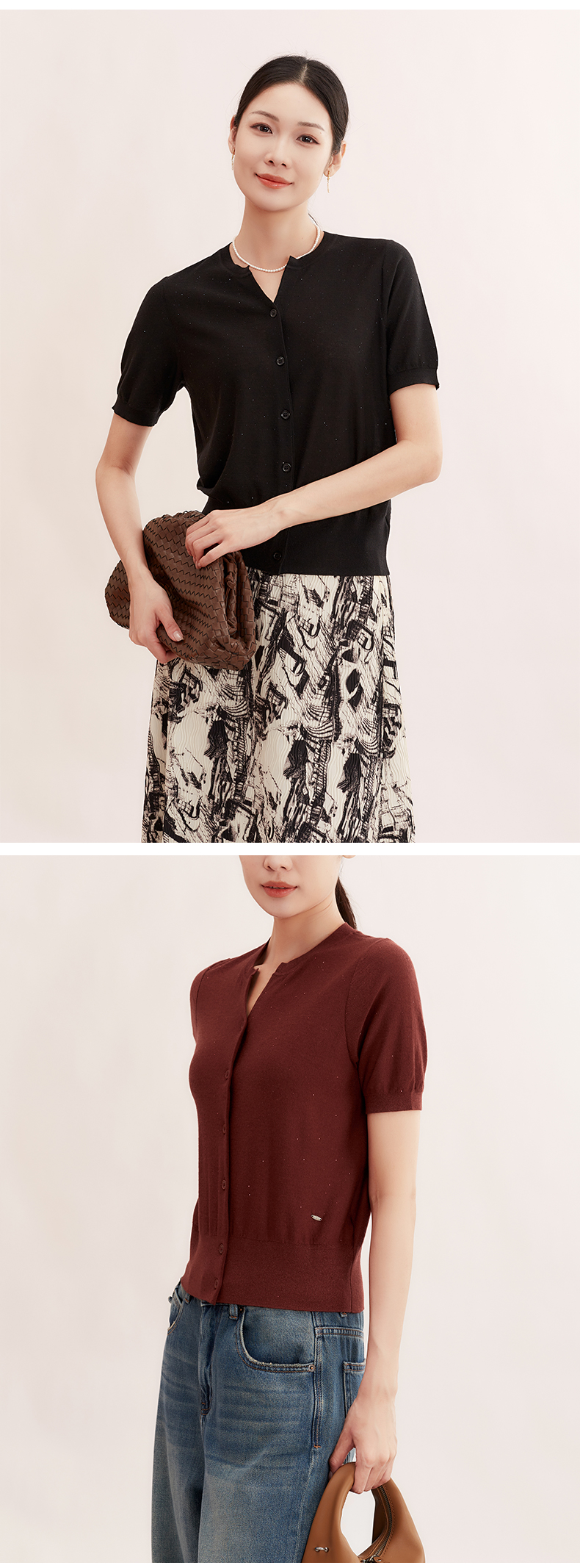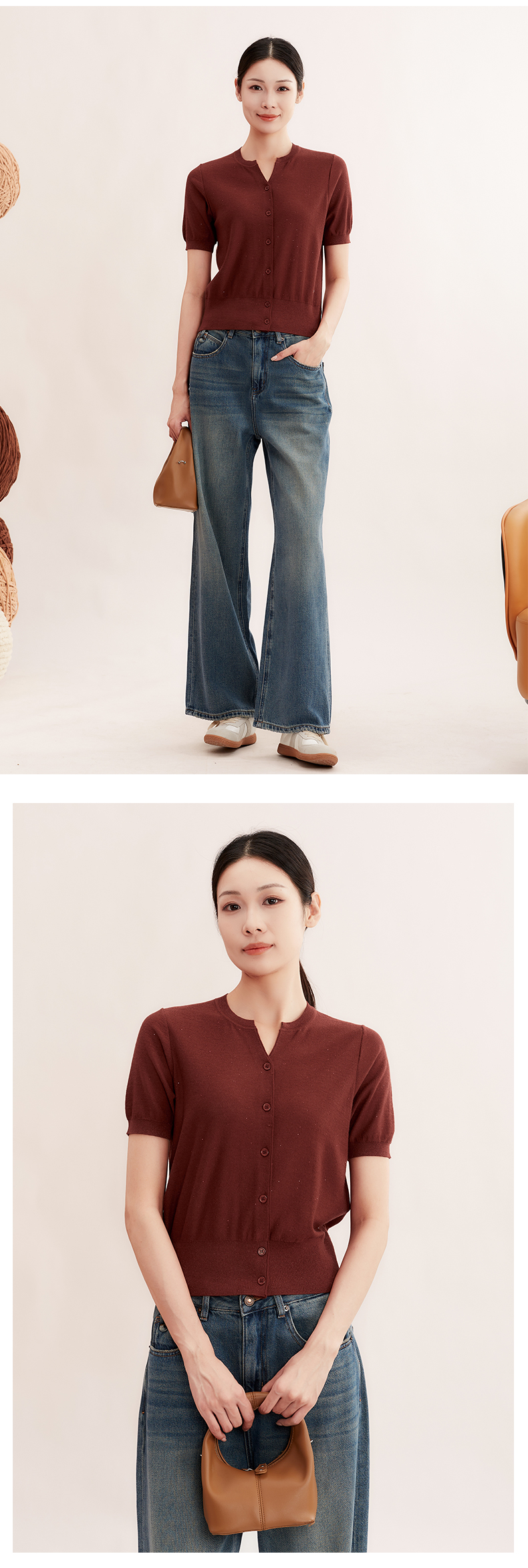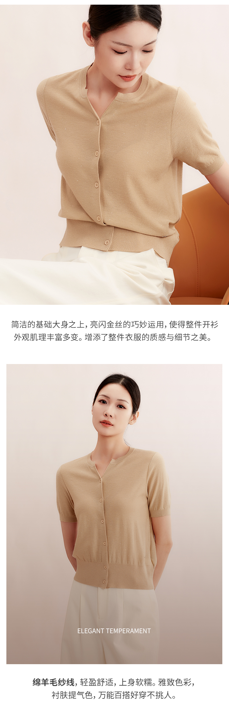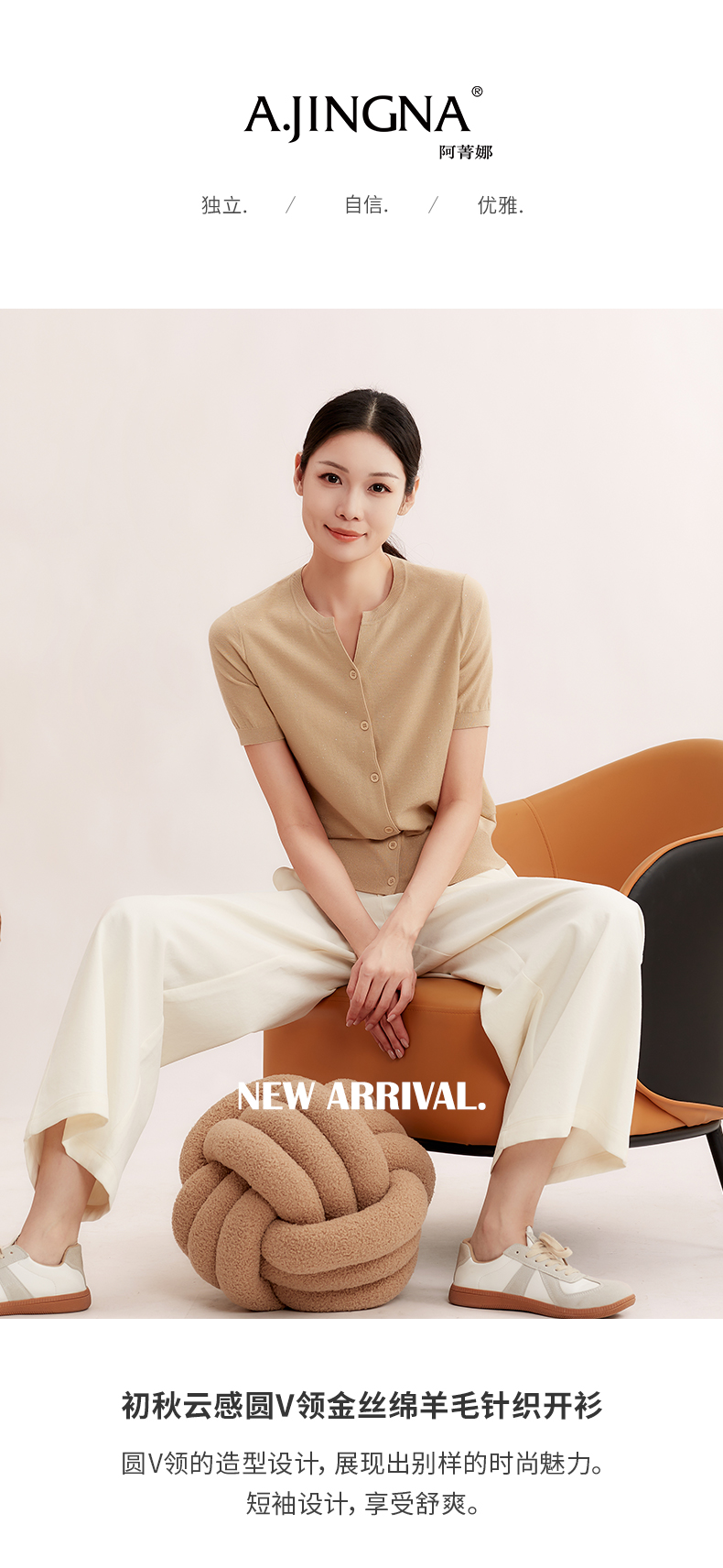【特价不退换】阿菁娜圆V领金丝绵羊毛针织开衫A29Q318032